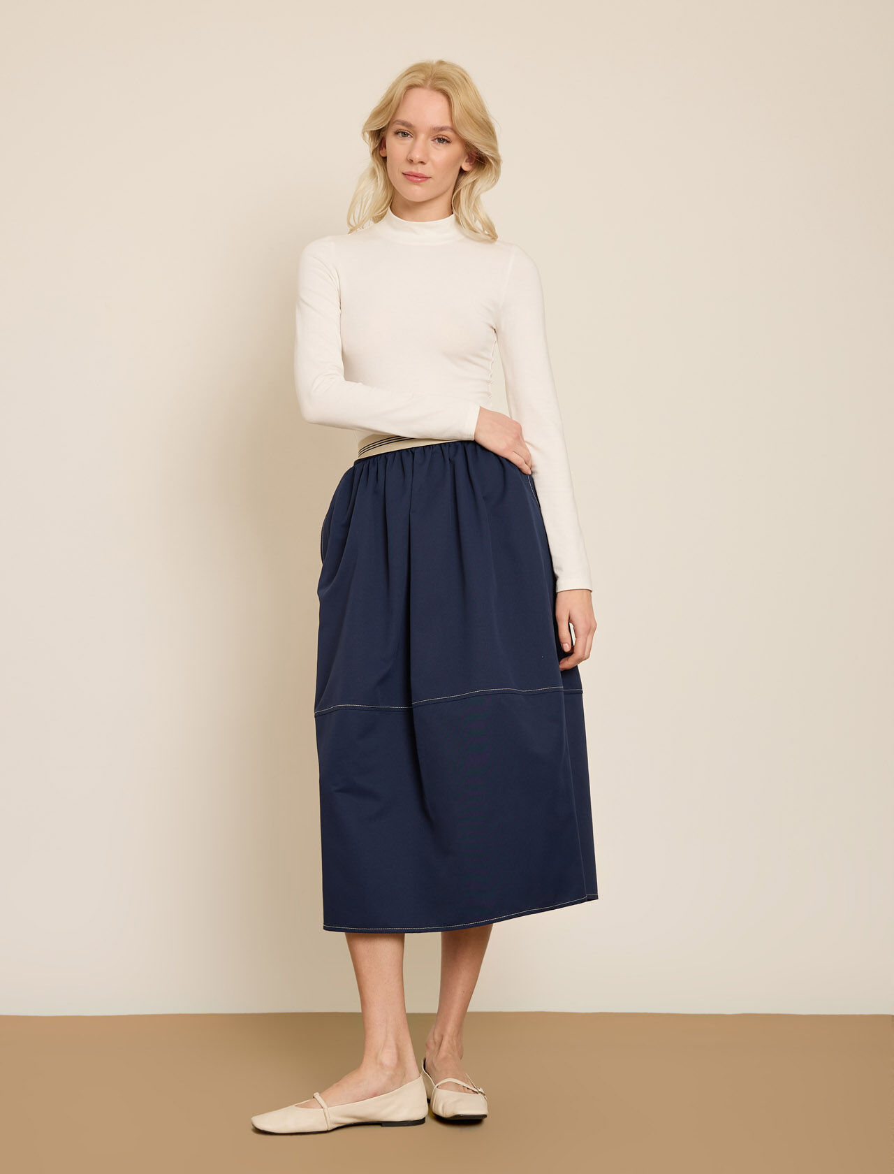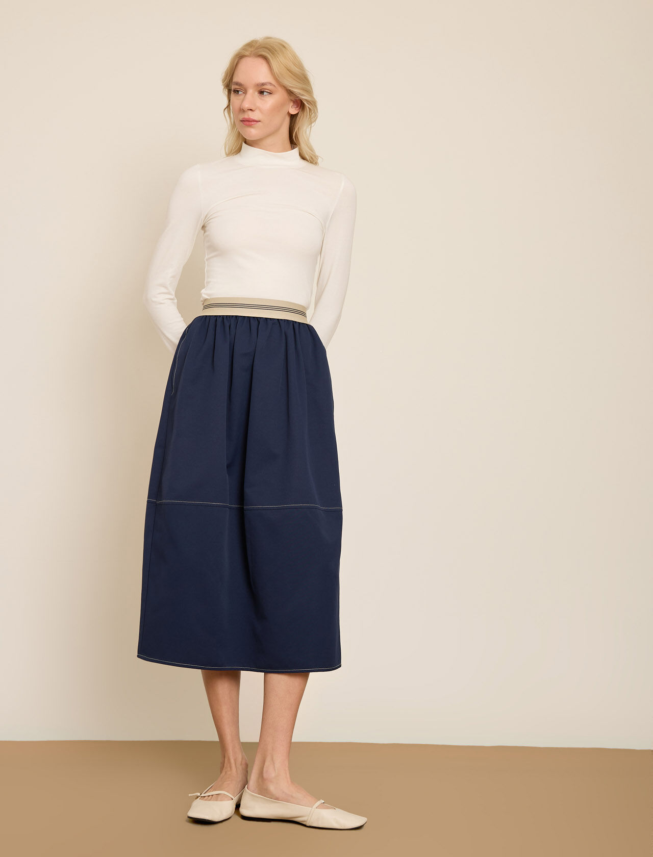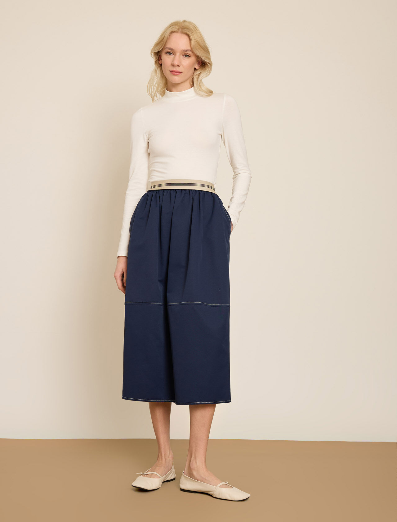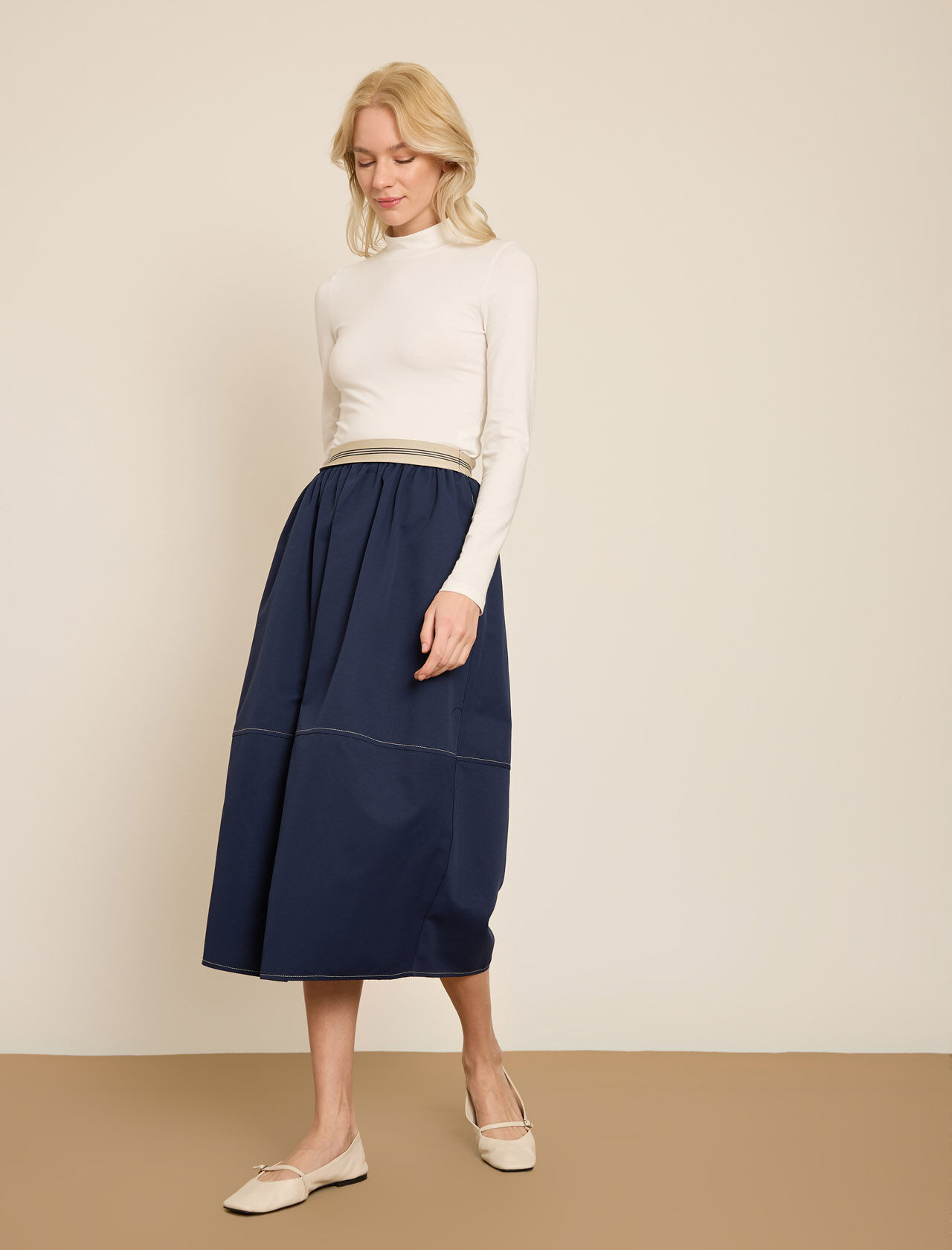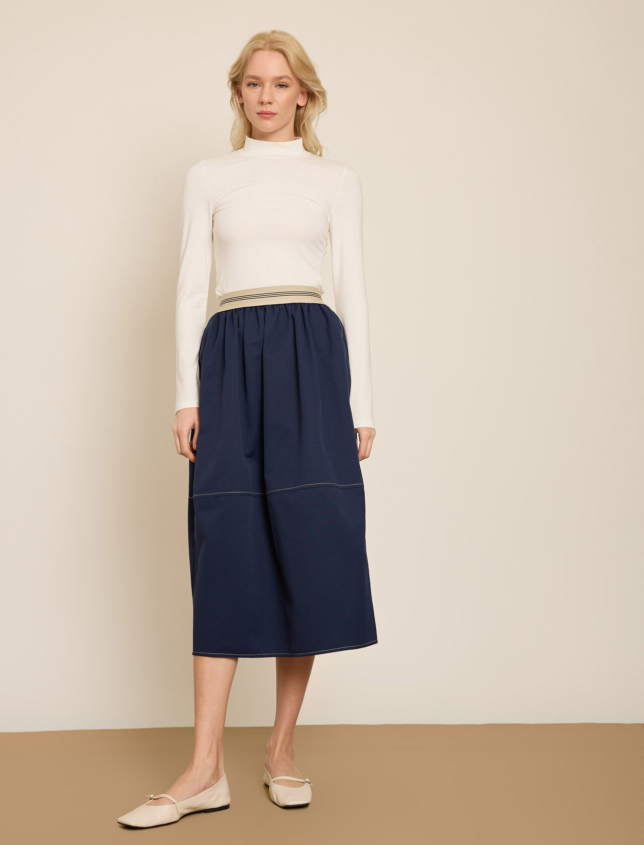 KONTRAST CIZGILI BELI LASTIKLI GABARDIN ETEK