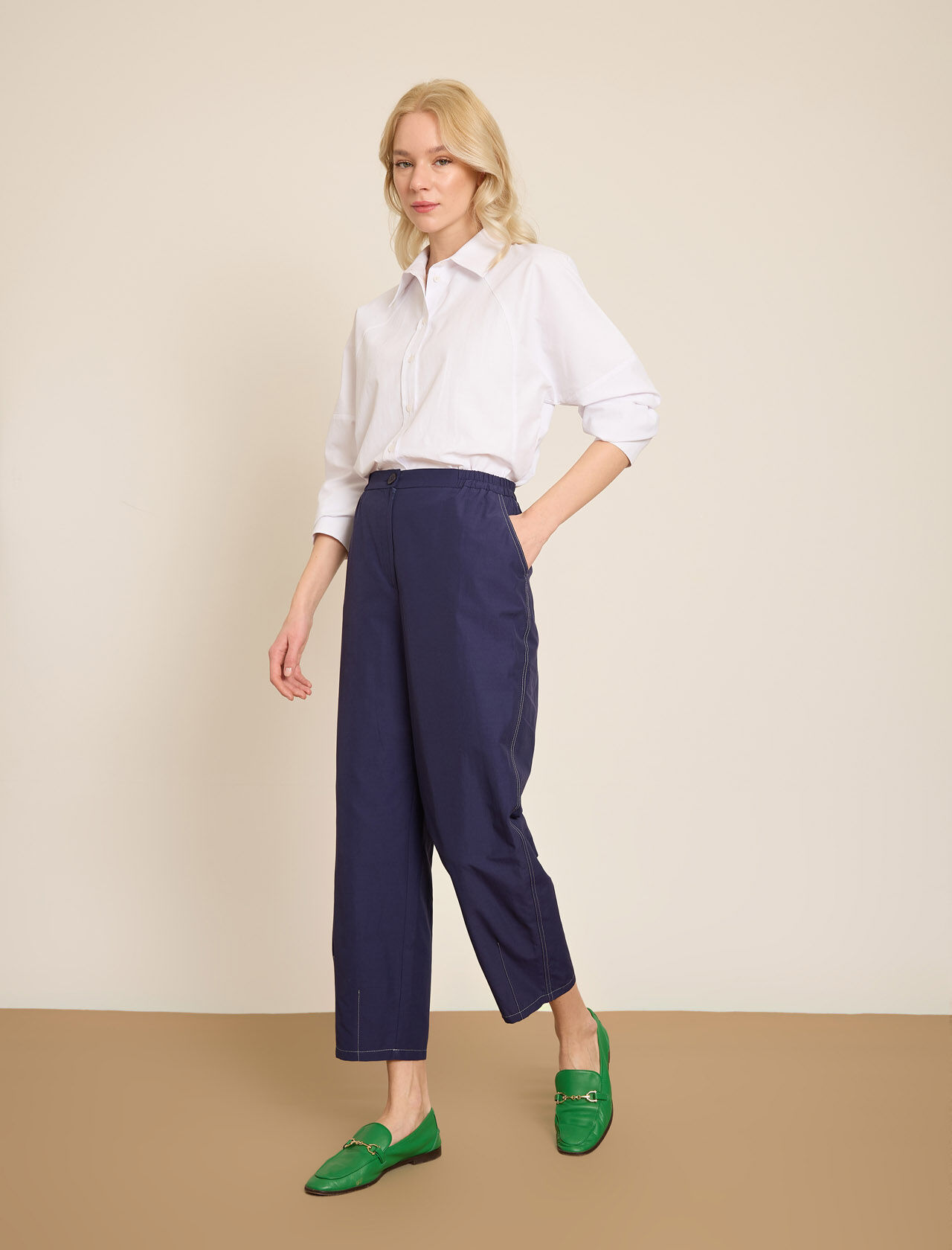BELI LASTIKLI GENIS PACA PAMUK KARISIM PANTOLON