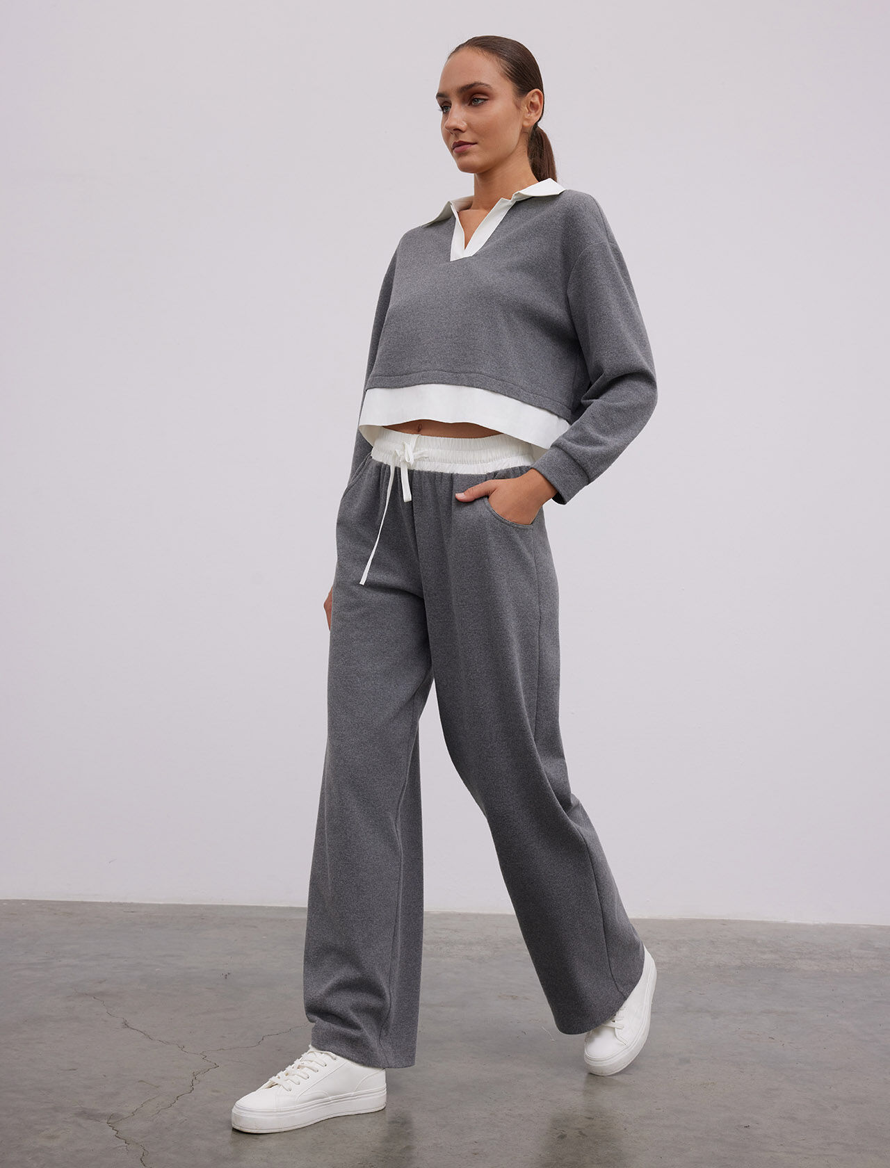 Kemer Detaylı Geniş Paça Pamuk Pantolon