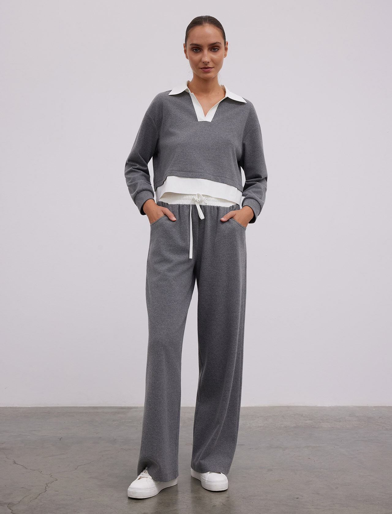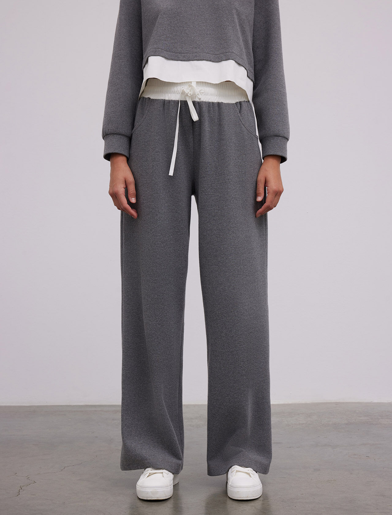 KOTON GARNILI BELI LASTIKLI DUZ PACA ORME PANTOLON