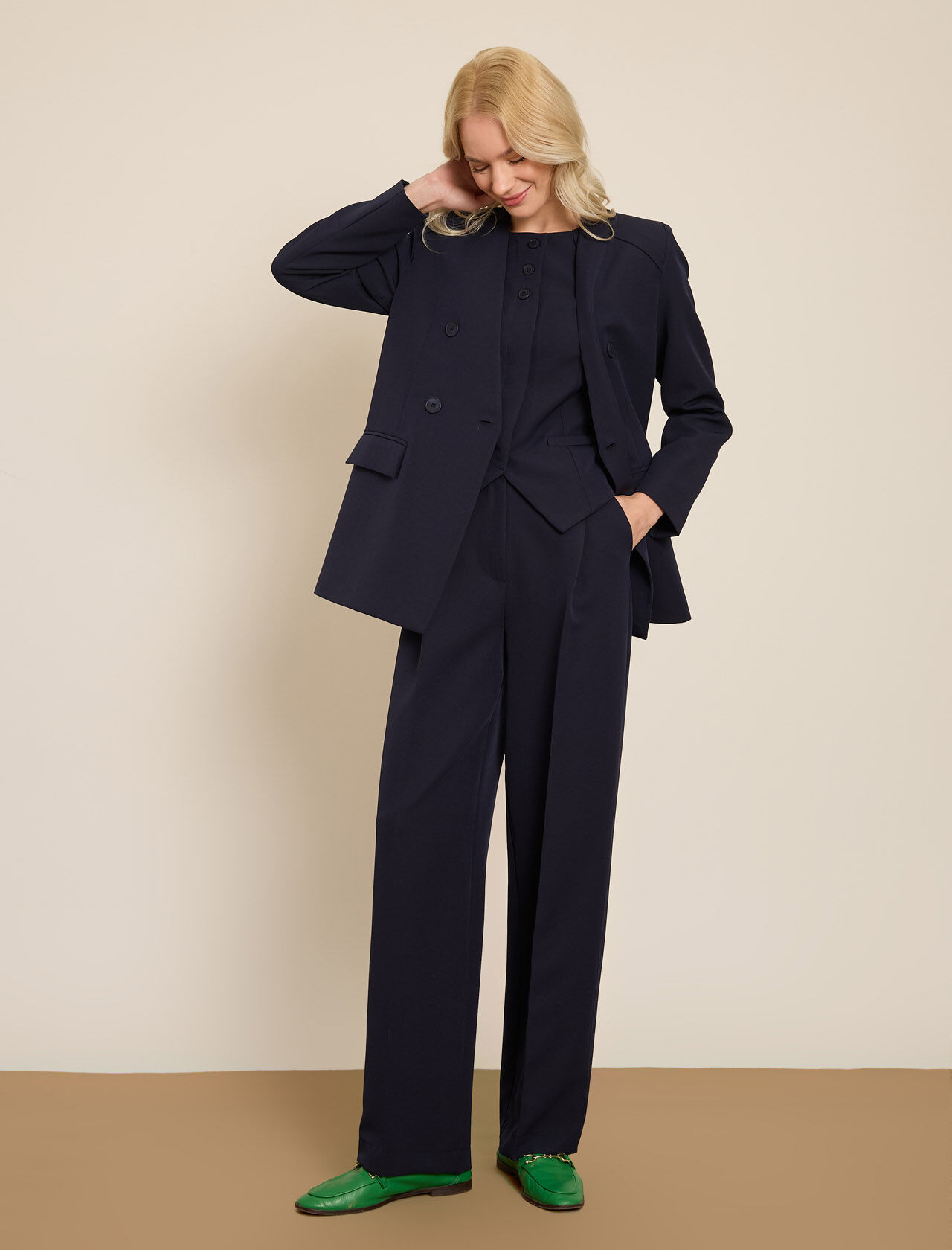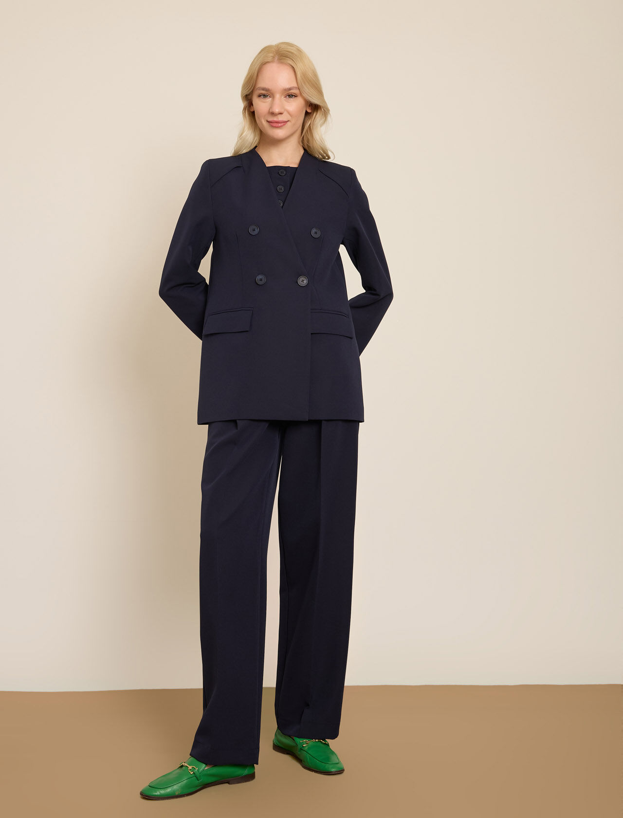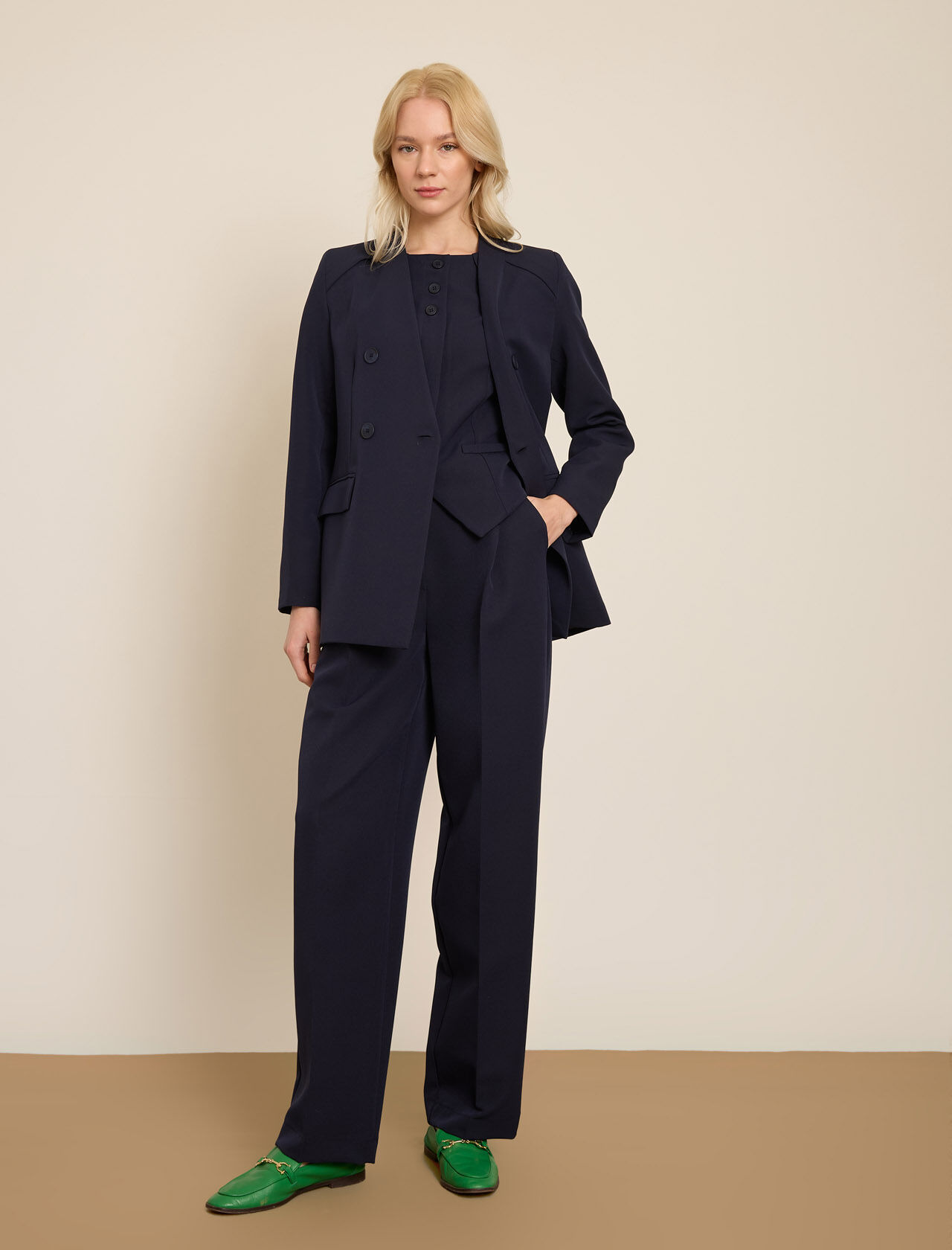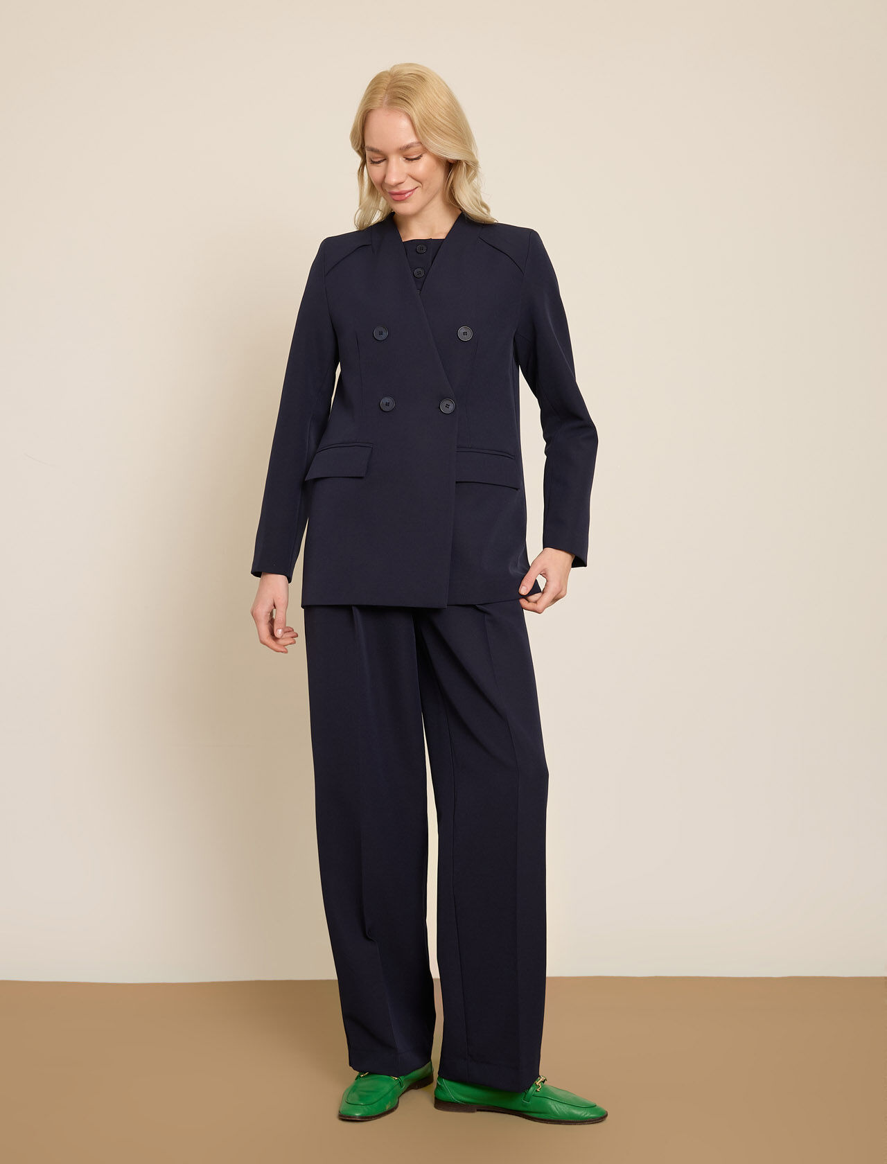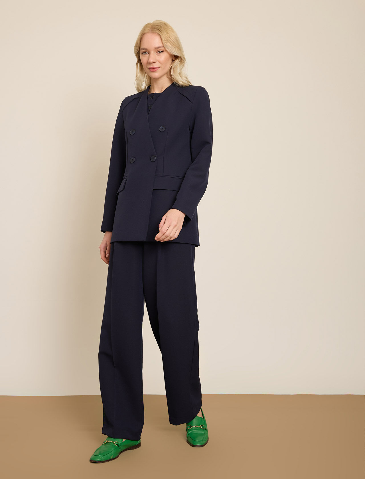 KRUVAZE YAKASIZ UZUN CEKET