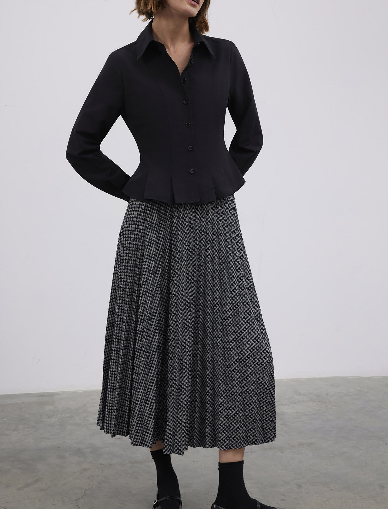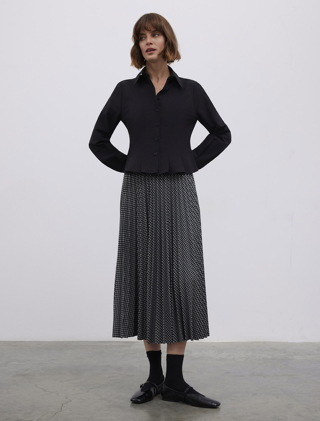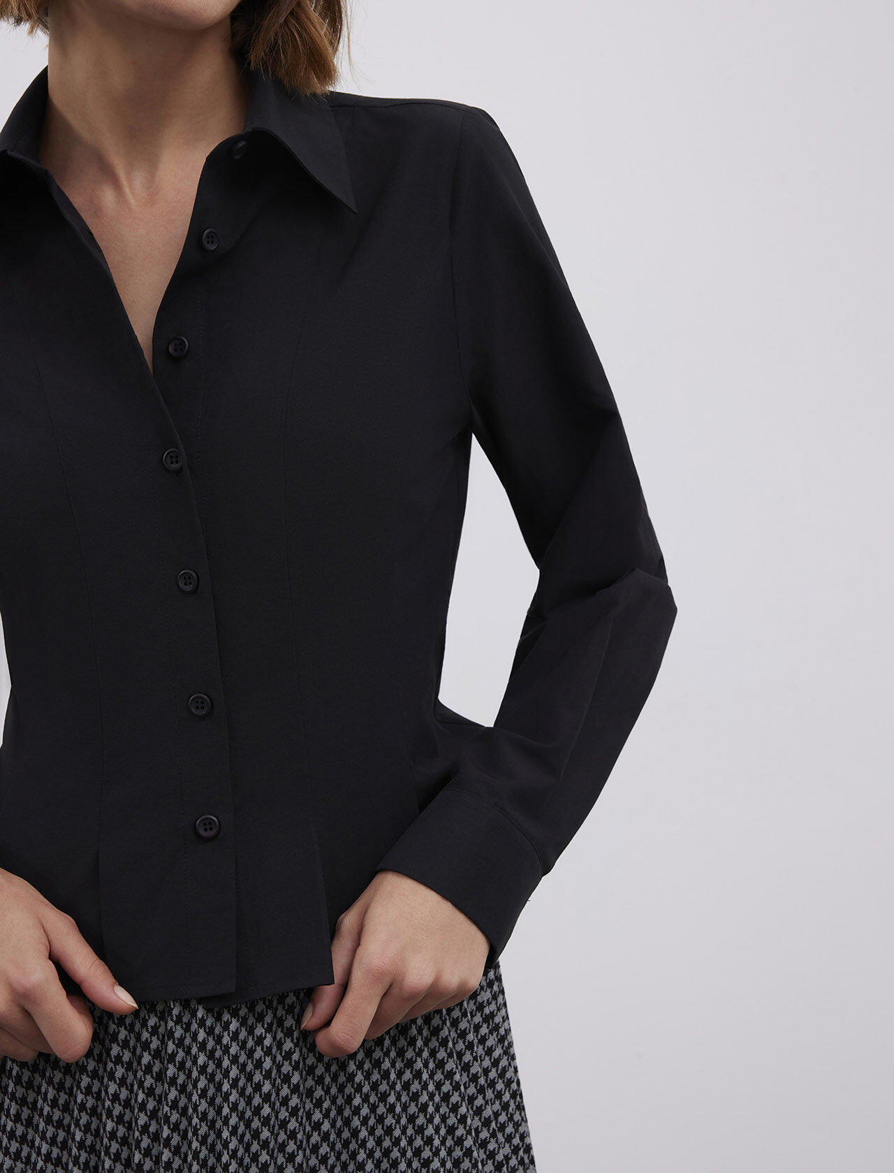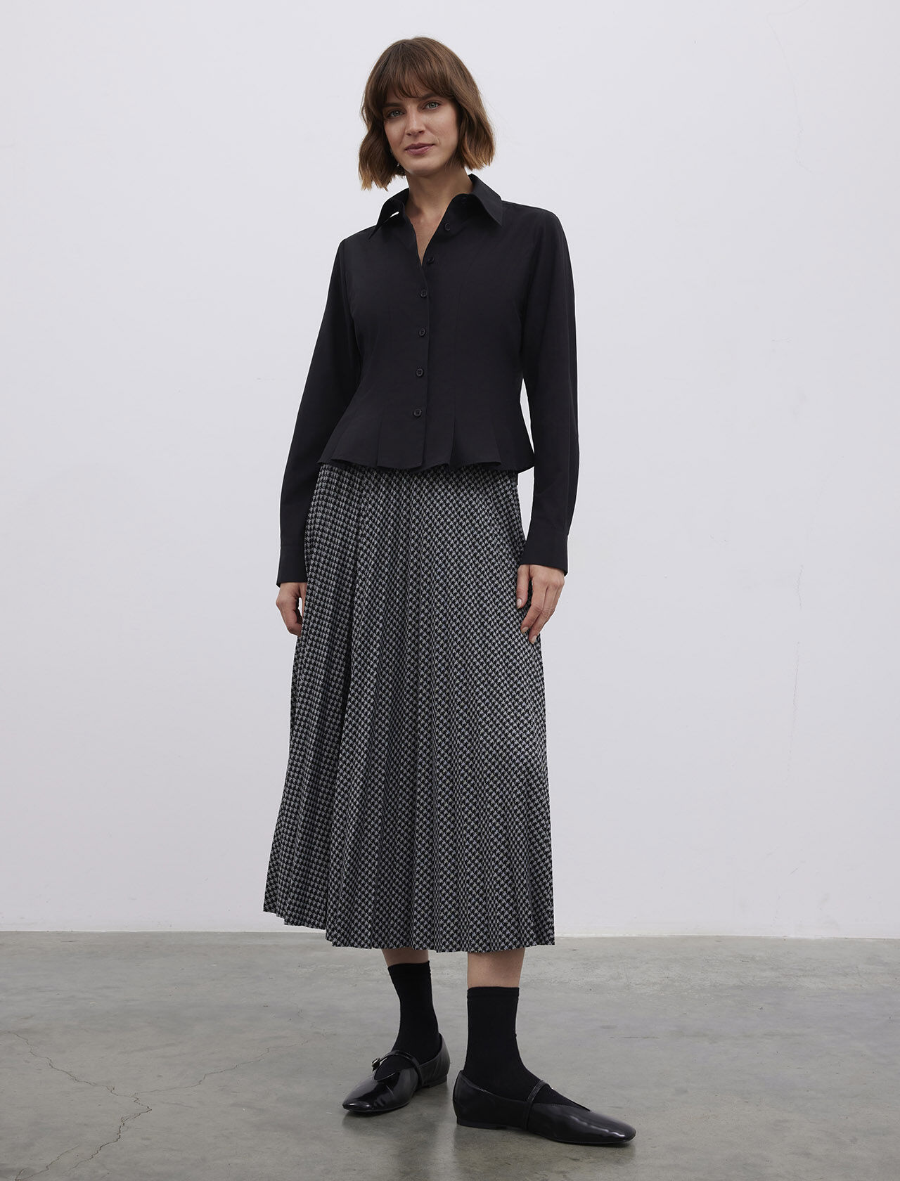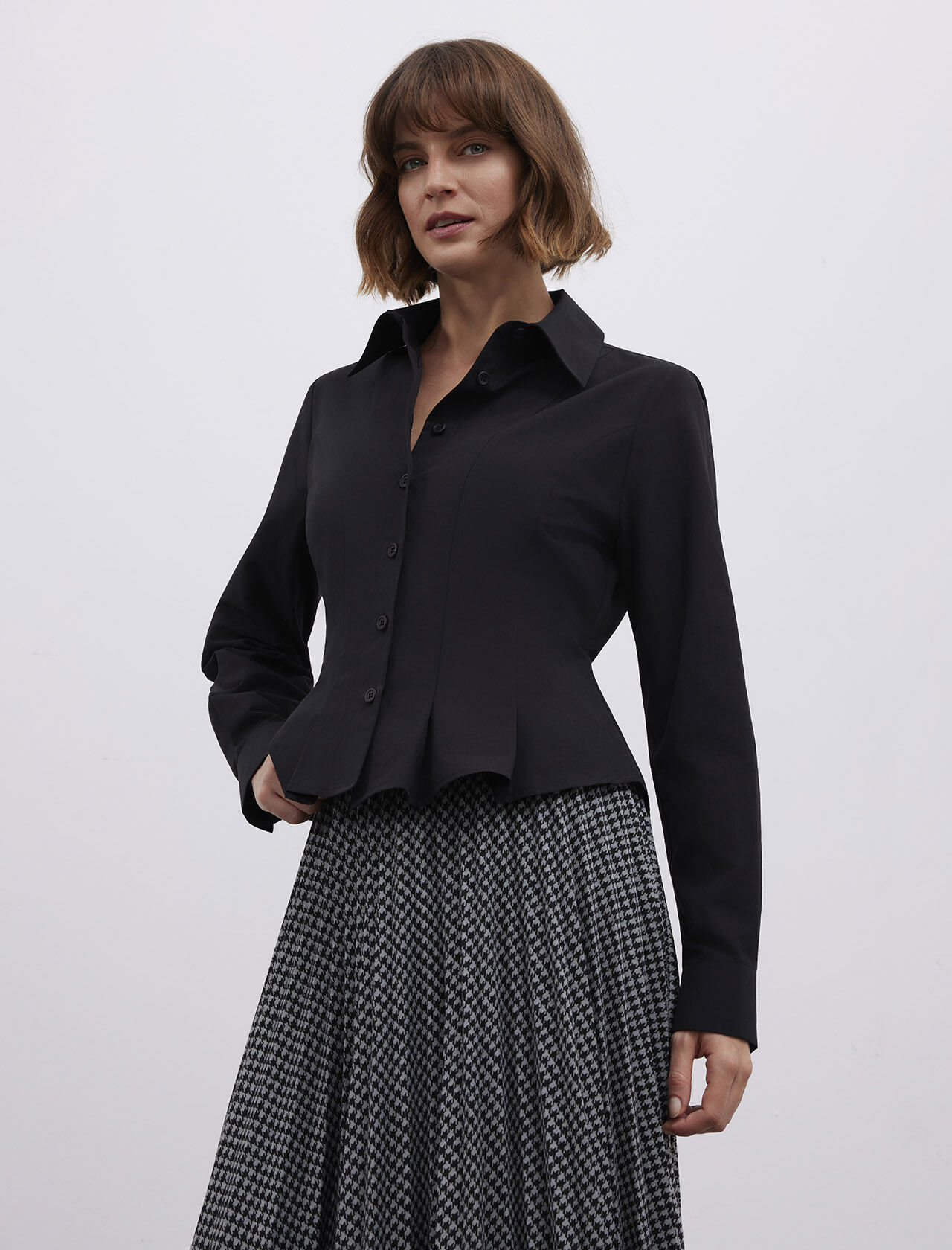 KUP KESIKLI VE PILE DETAYLI PAMUK KARISIM GOMLEK