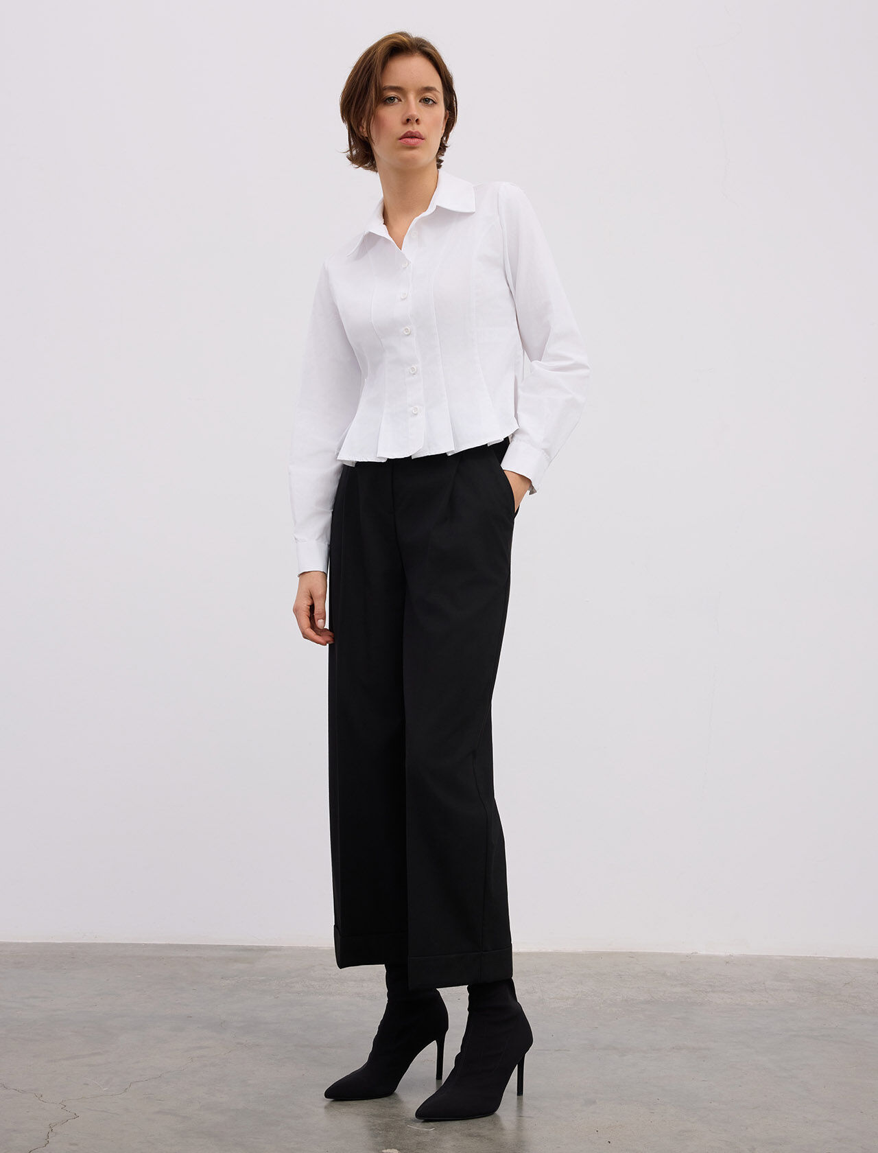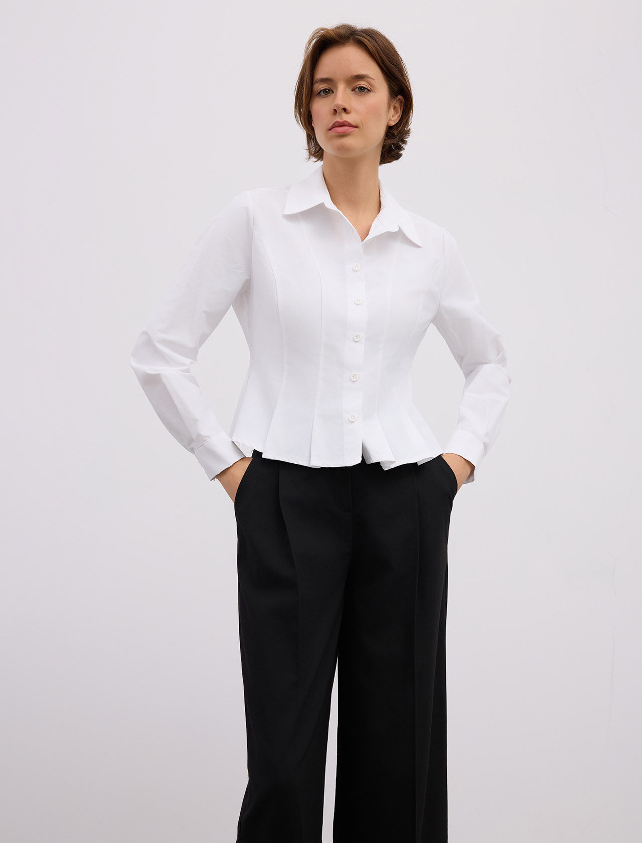 KUP KESIKLI VE PILE DETAYLI PAMUK KARISIM GOMLEK