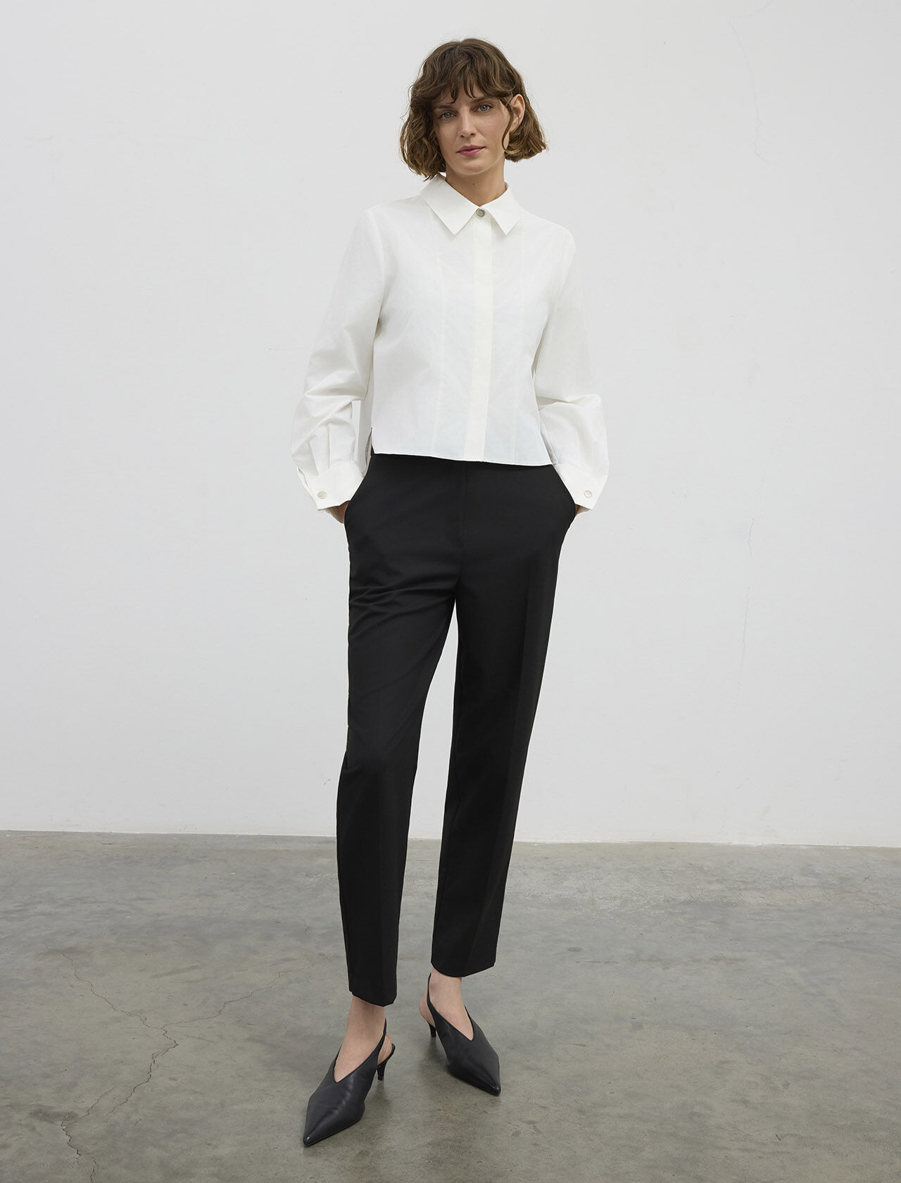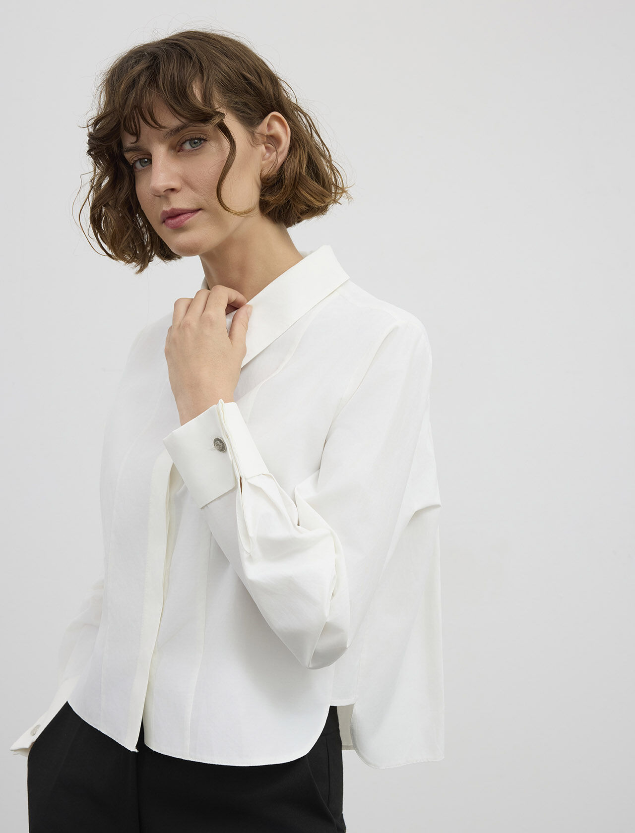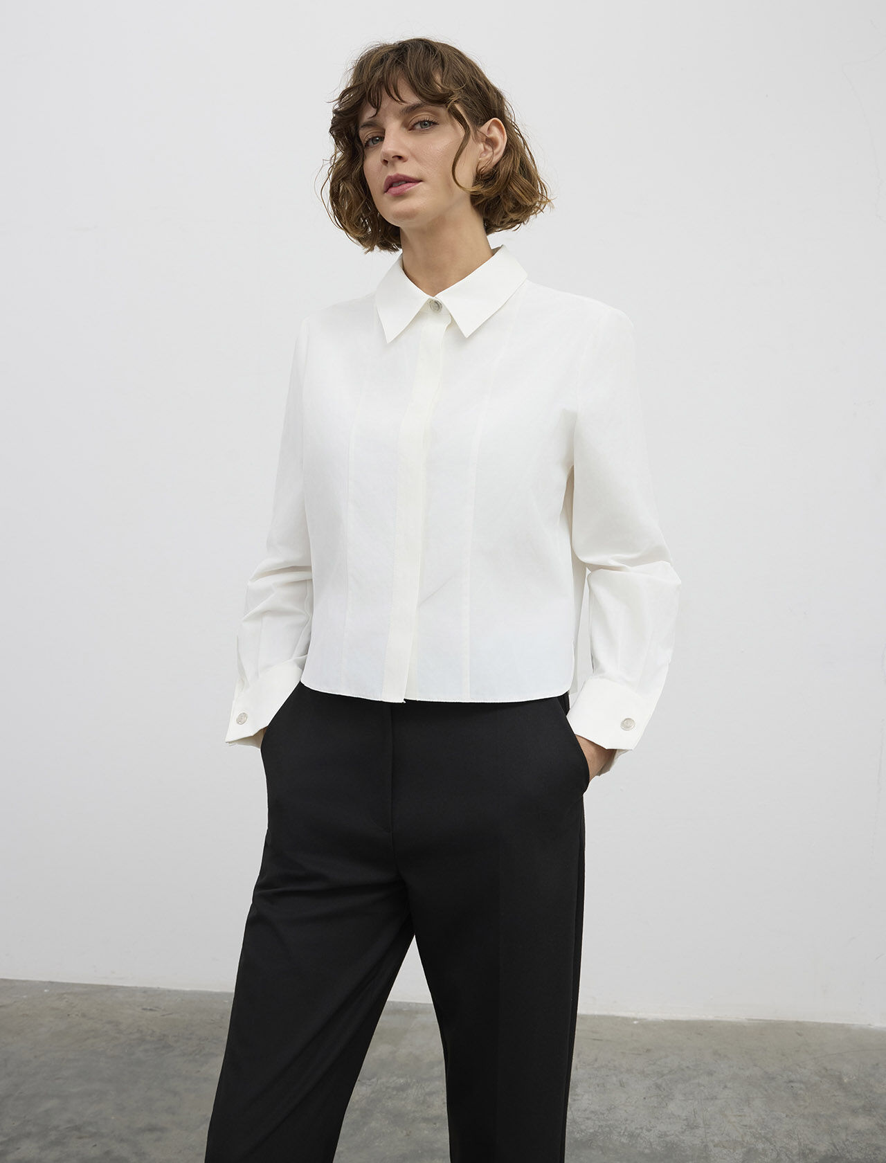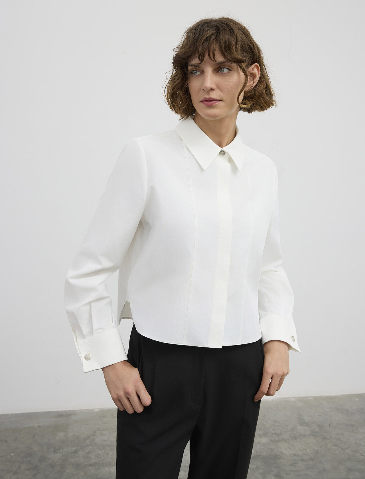 Kruvaze Kapama Kaçık Yaka Pamuk Gömlek