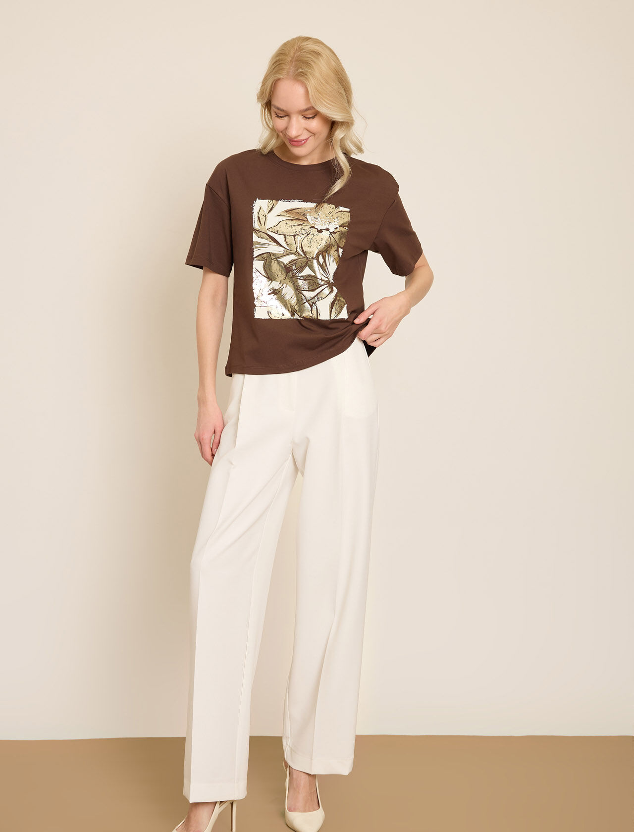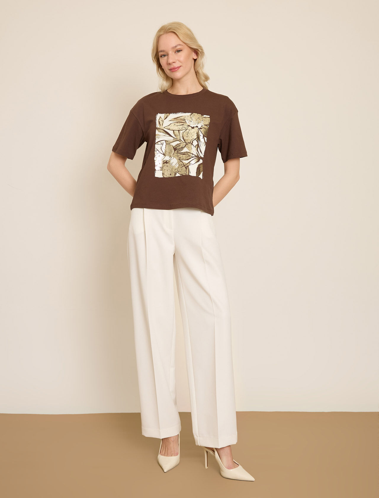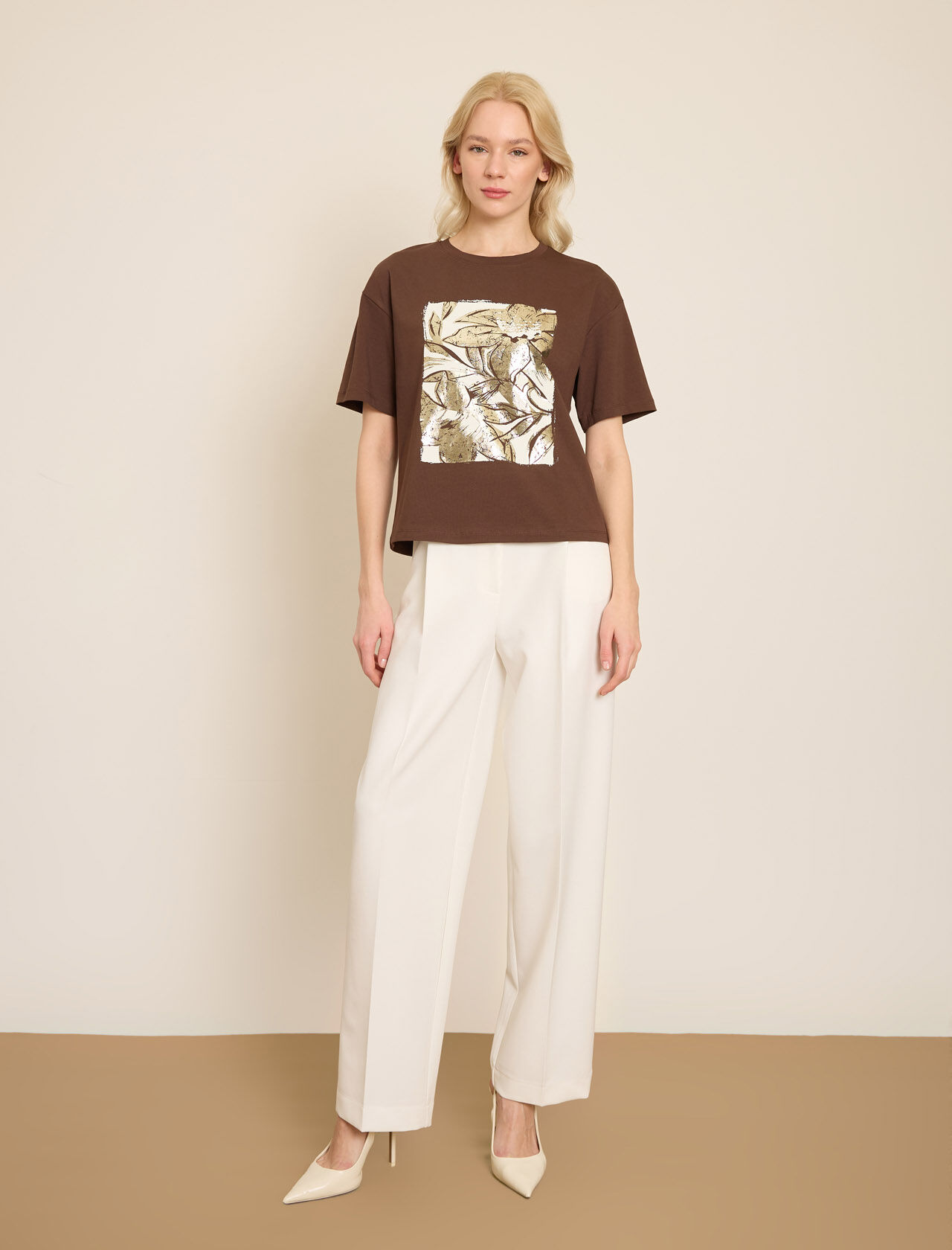 METALIK CICEK BASKILI PAMUKLU T-SHIRT
