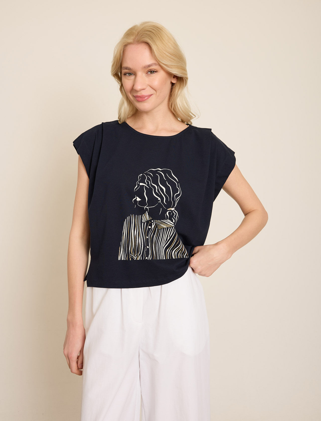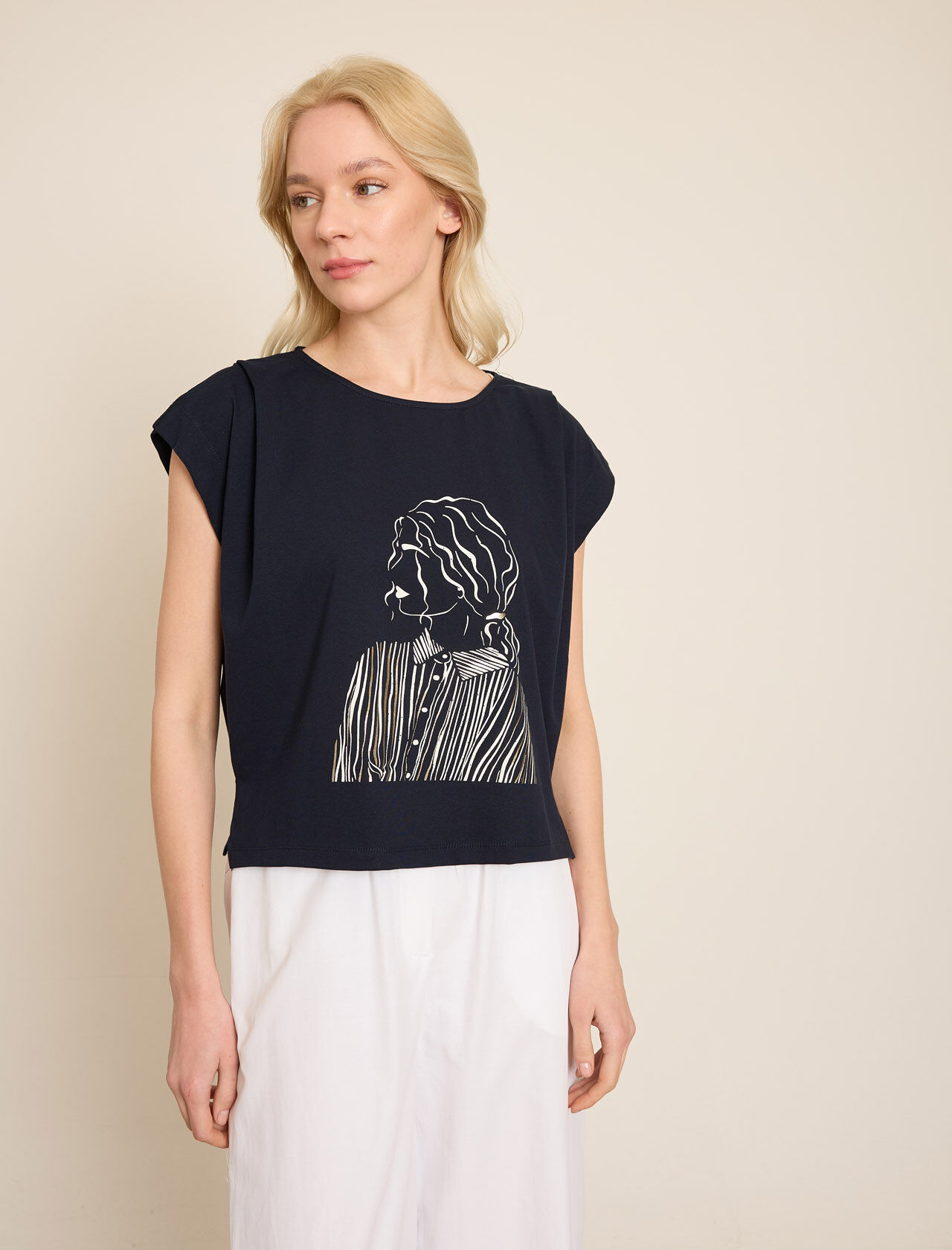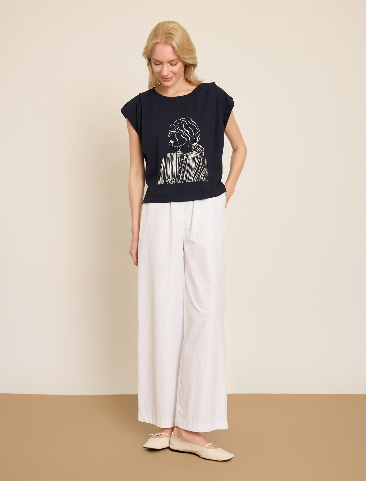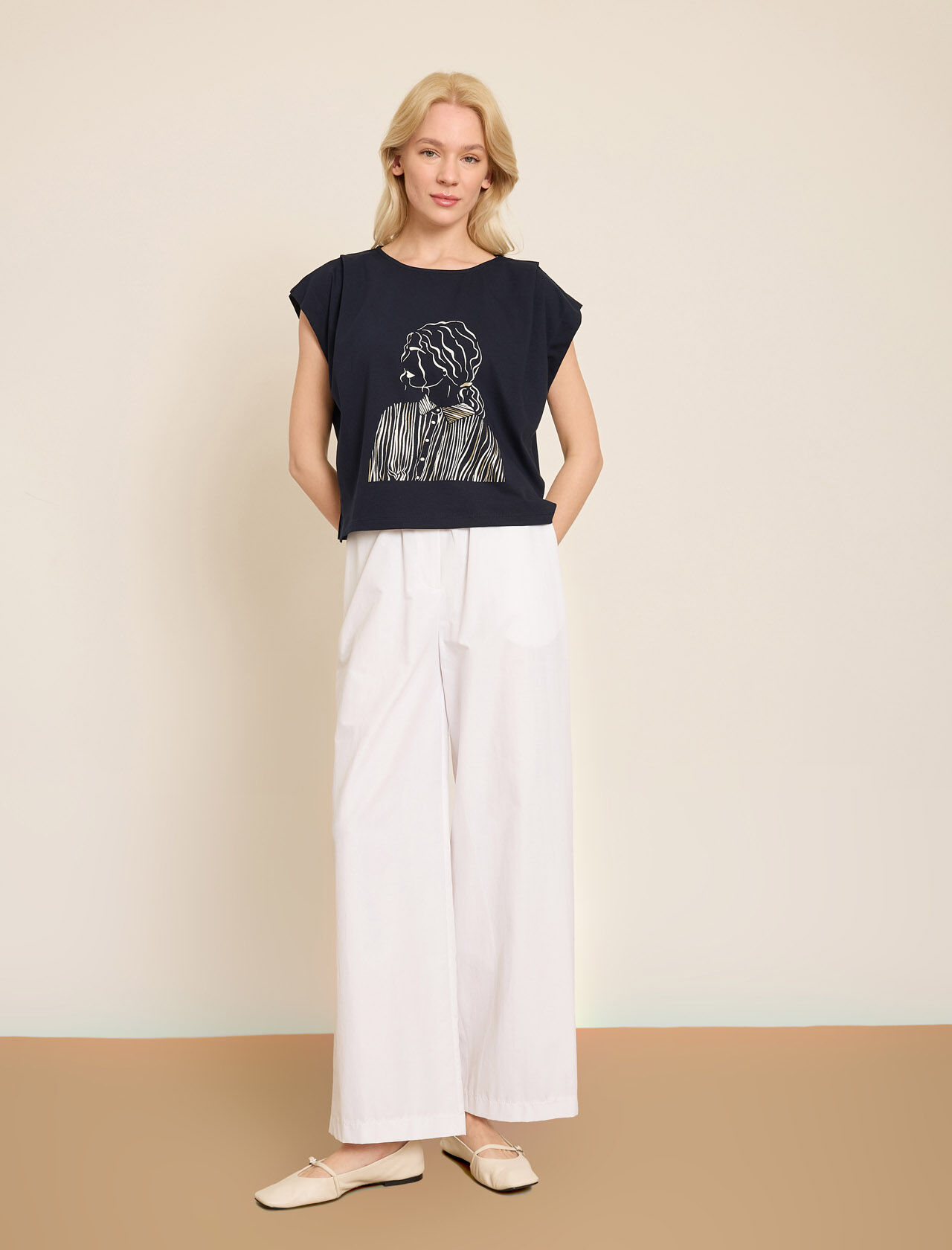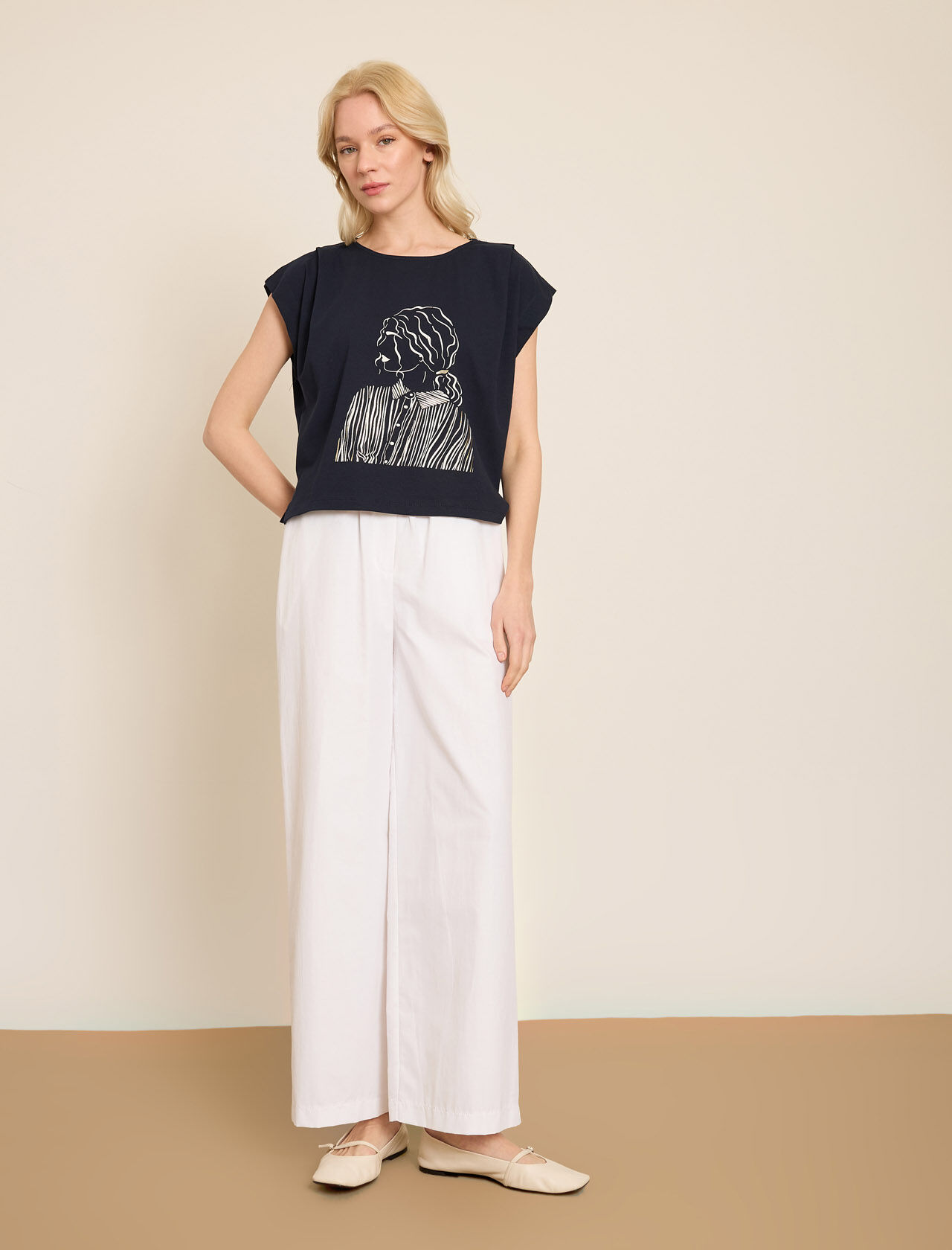 NAKISLI YAZILI PAMUKLU T-SHIRT