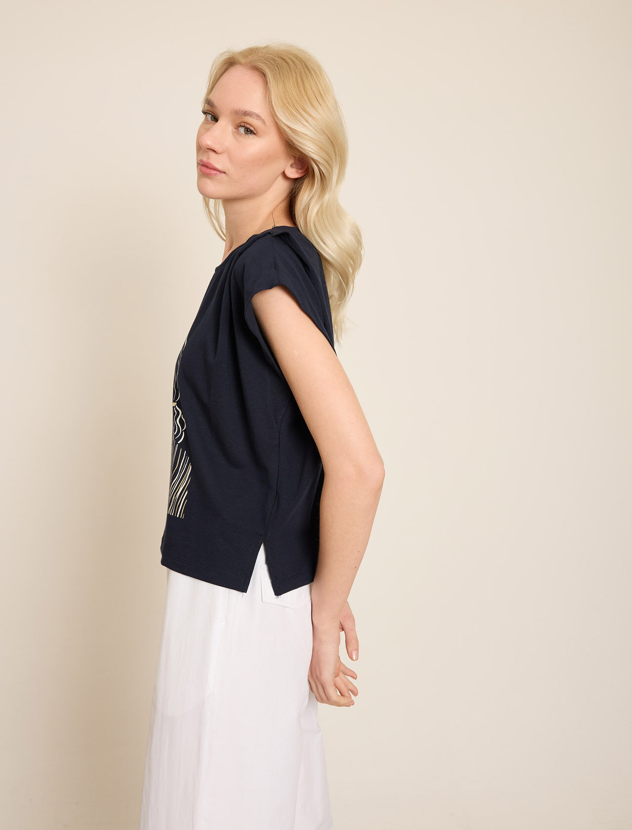 BONCUK İŞLEMELİ CICEK APLİKELİ PAMUKLU T-SHIRT