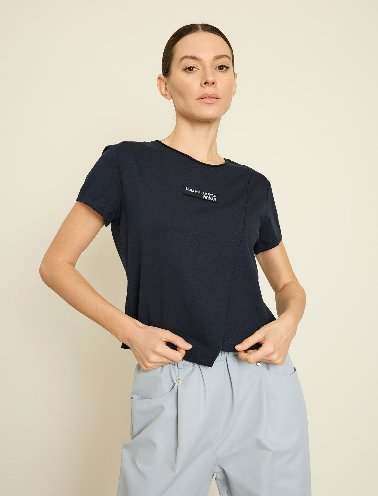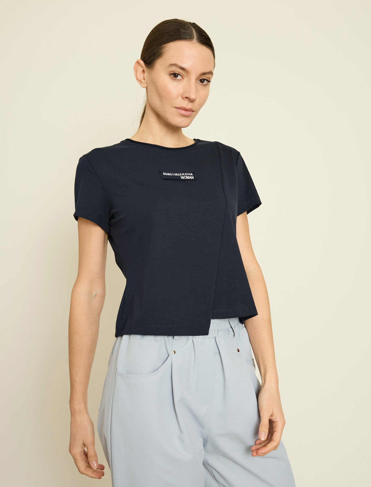 NAKISLI YAZILI PAMUKLU T-SHIRT