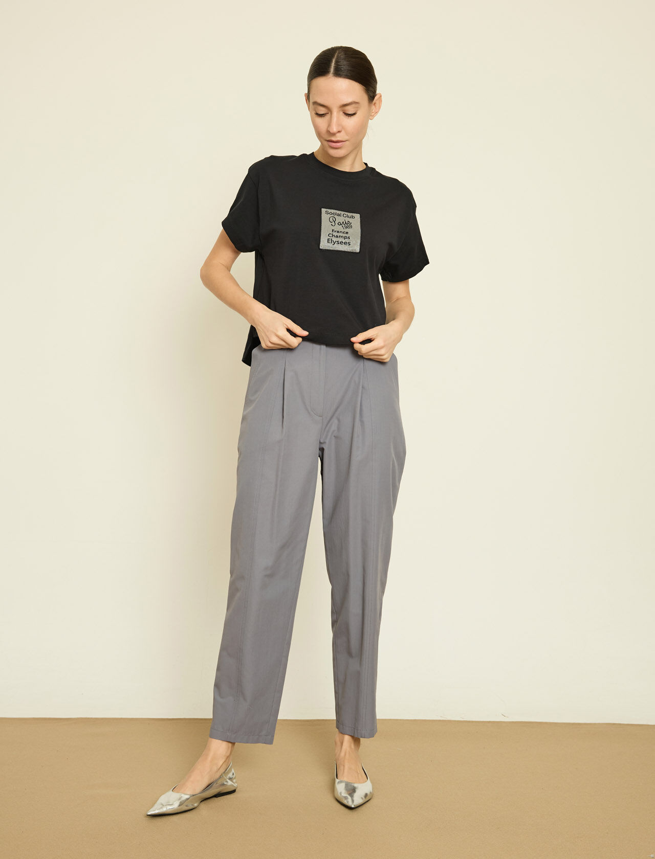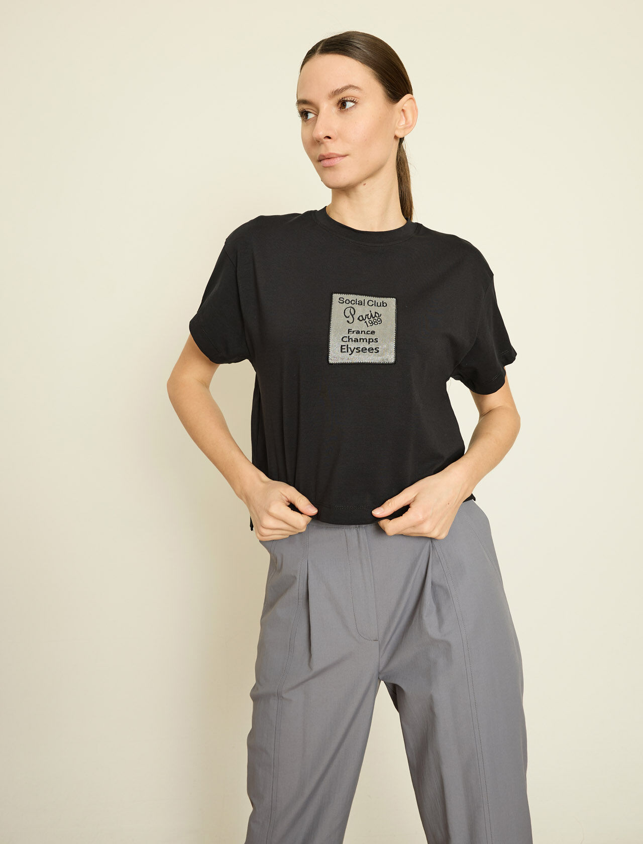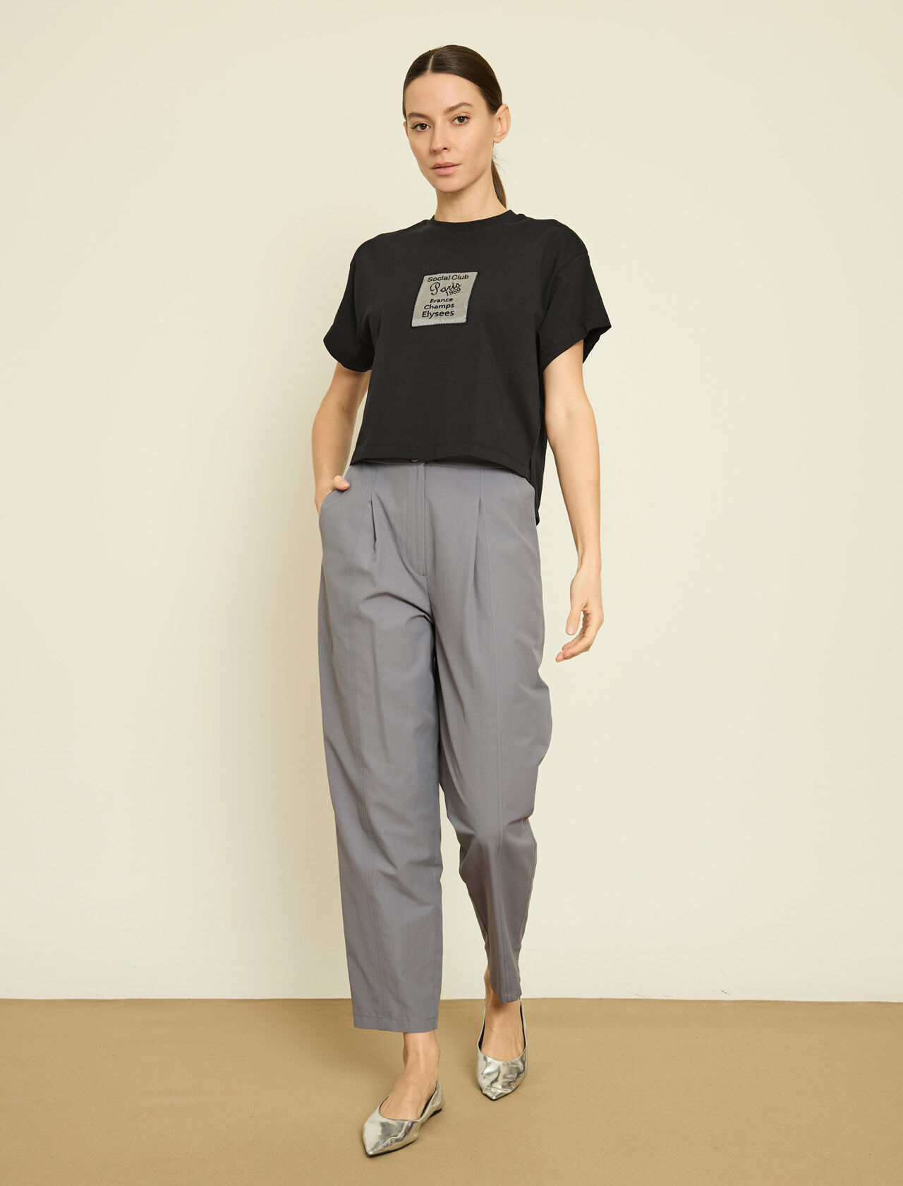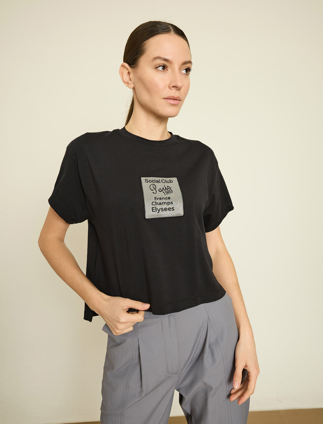 NAKISLI YAZILI PAMUKLU T-SHIRT