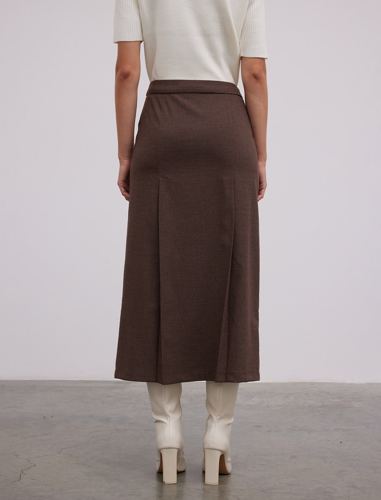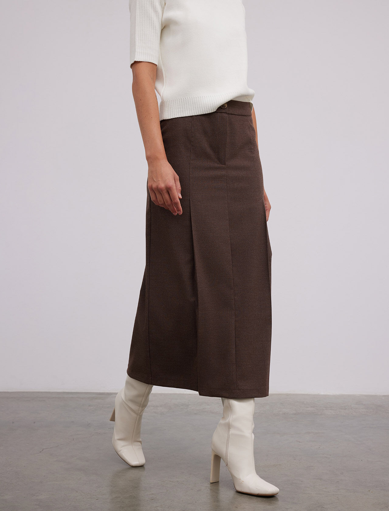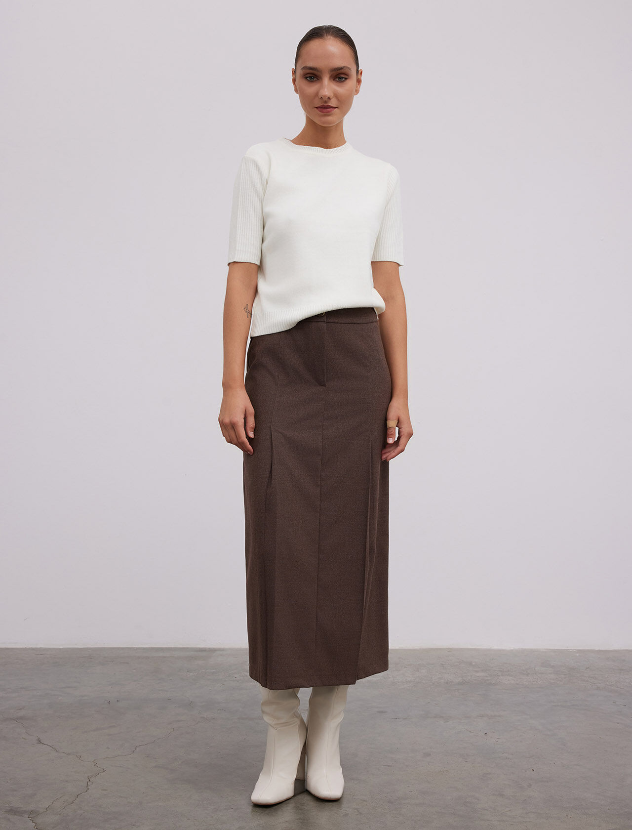 Dikiş Detaylı Midi Boy Pamuk Karışımlı Etek