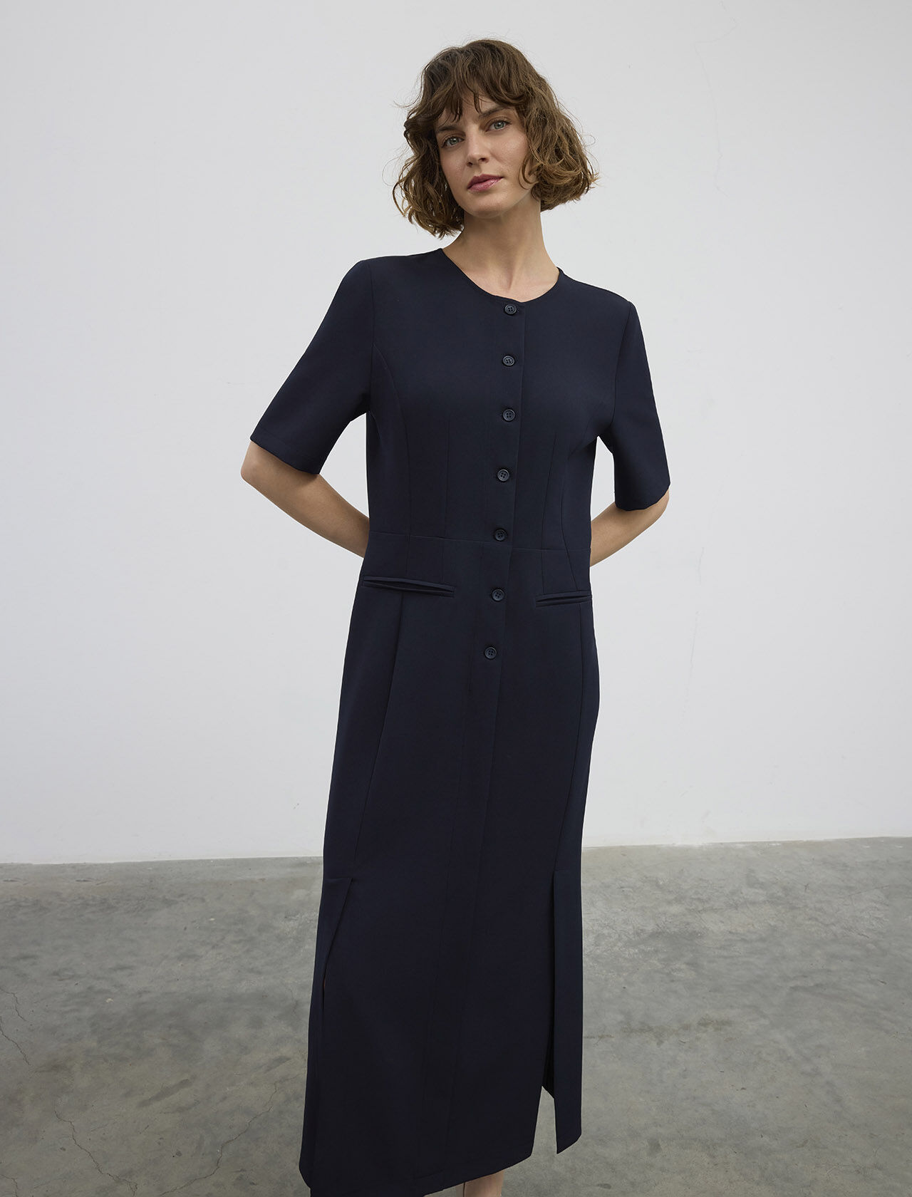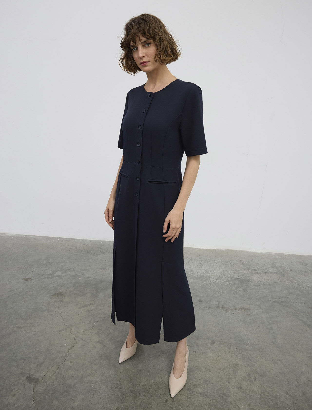 Düğmeli Midi Boy Pamuk Elbise