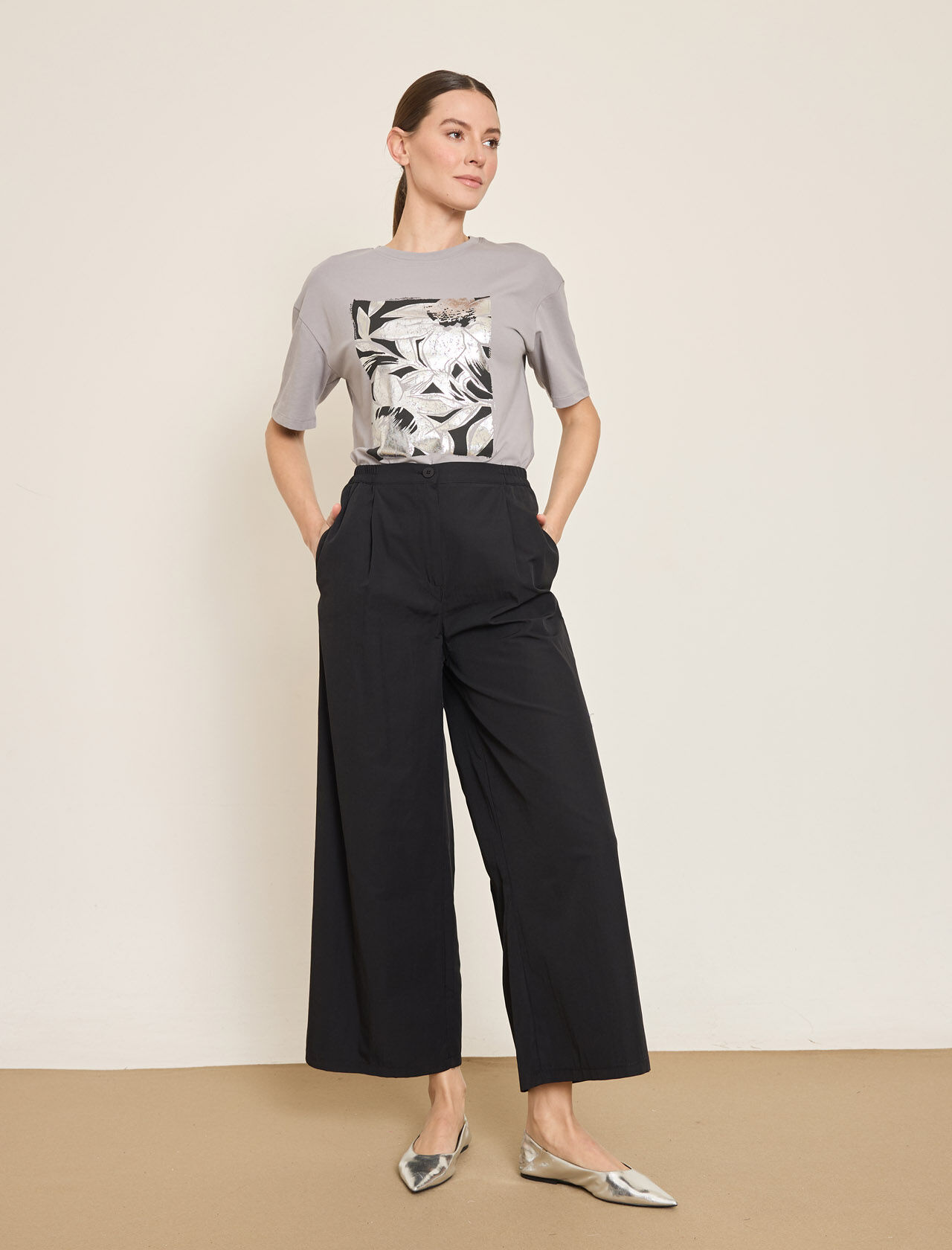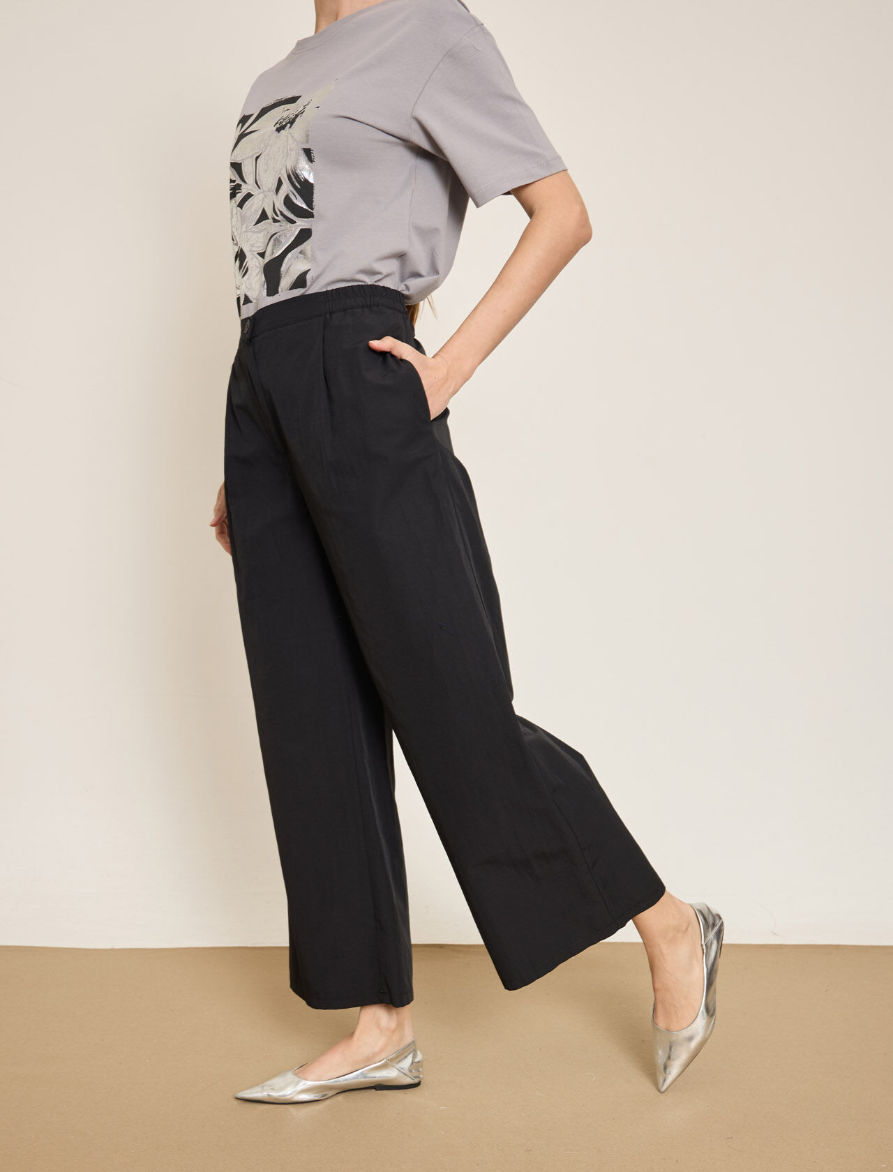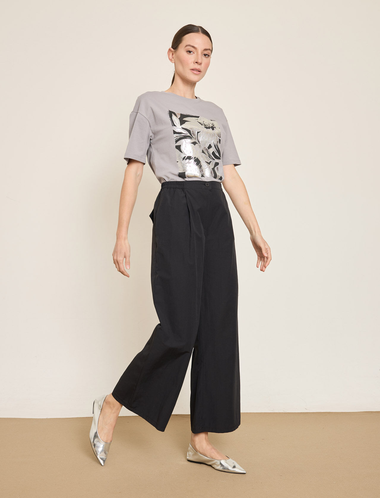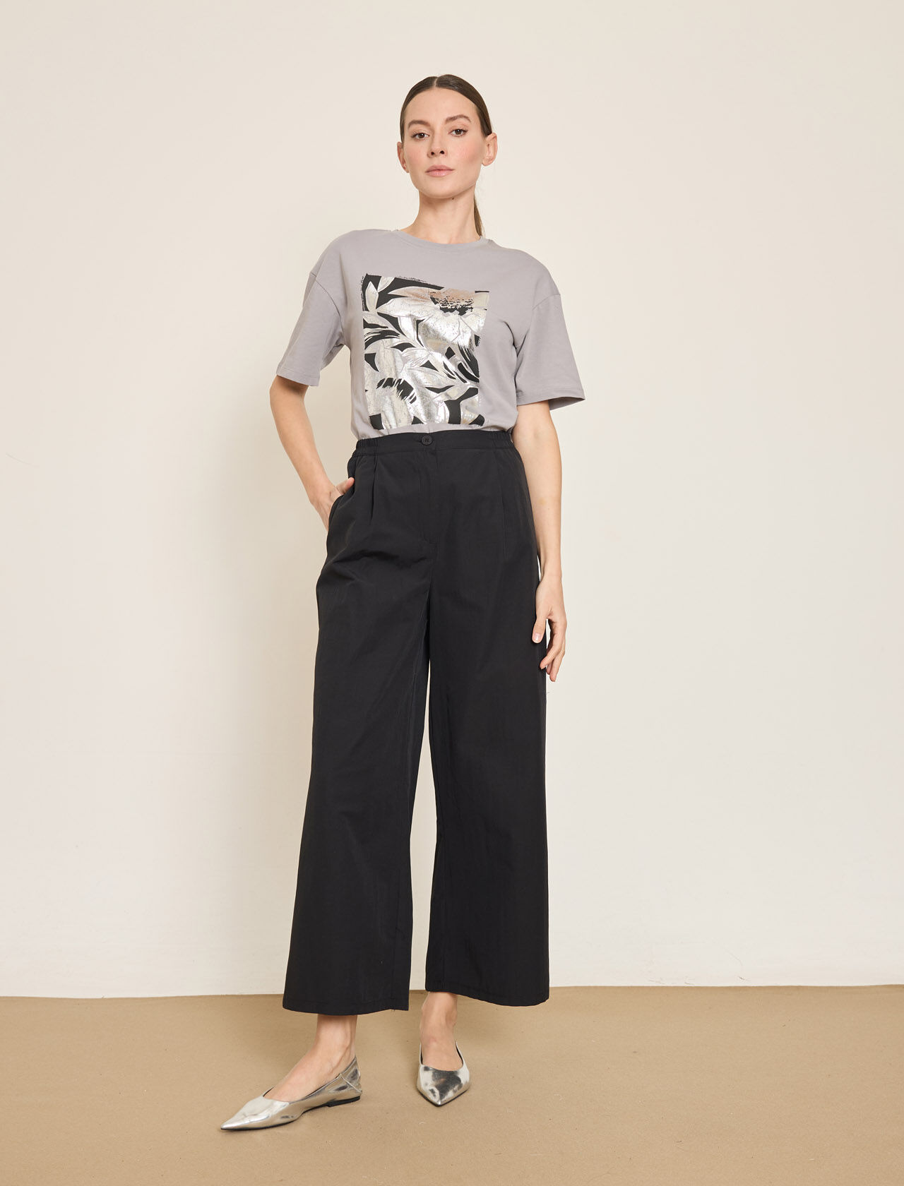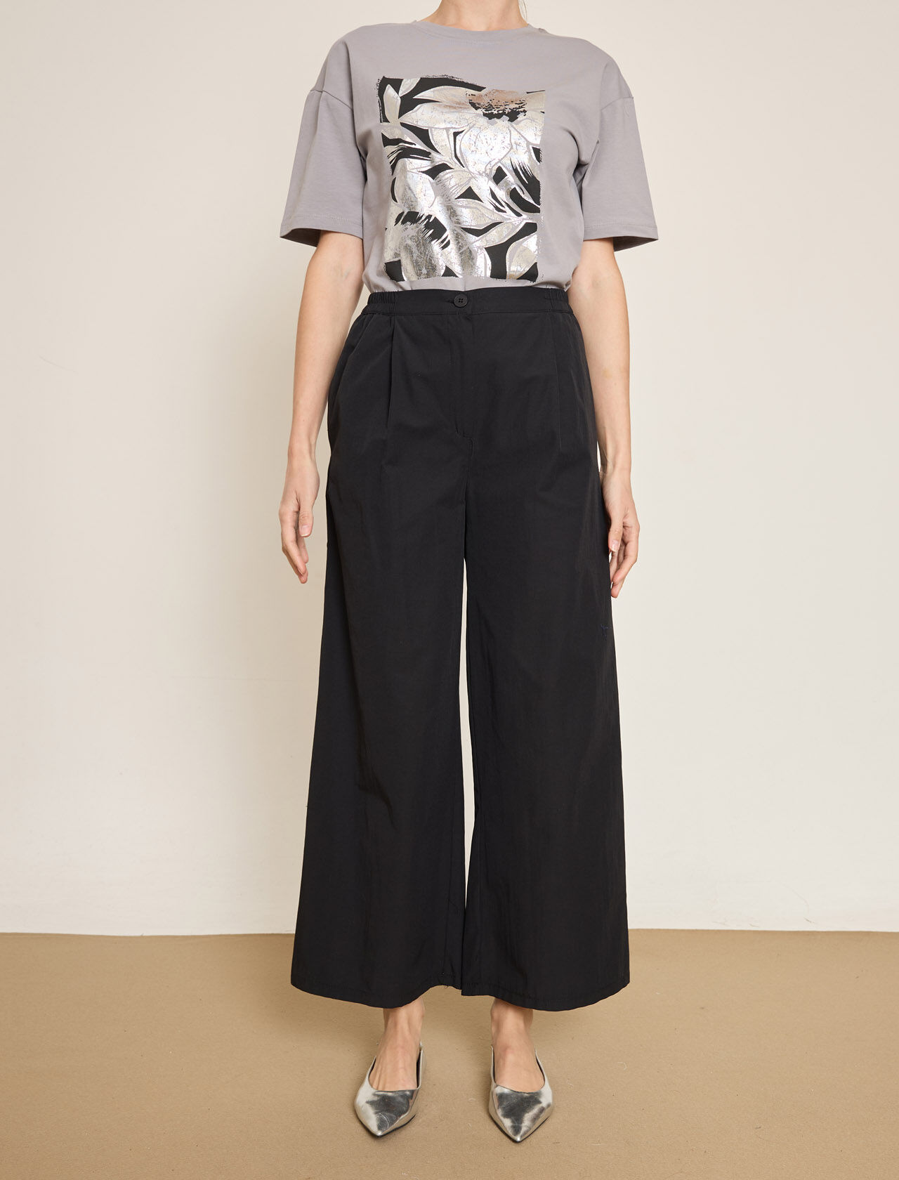 PAMUK KARISIM BELI LASTIKLI GENIS PACA PANTOLON