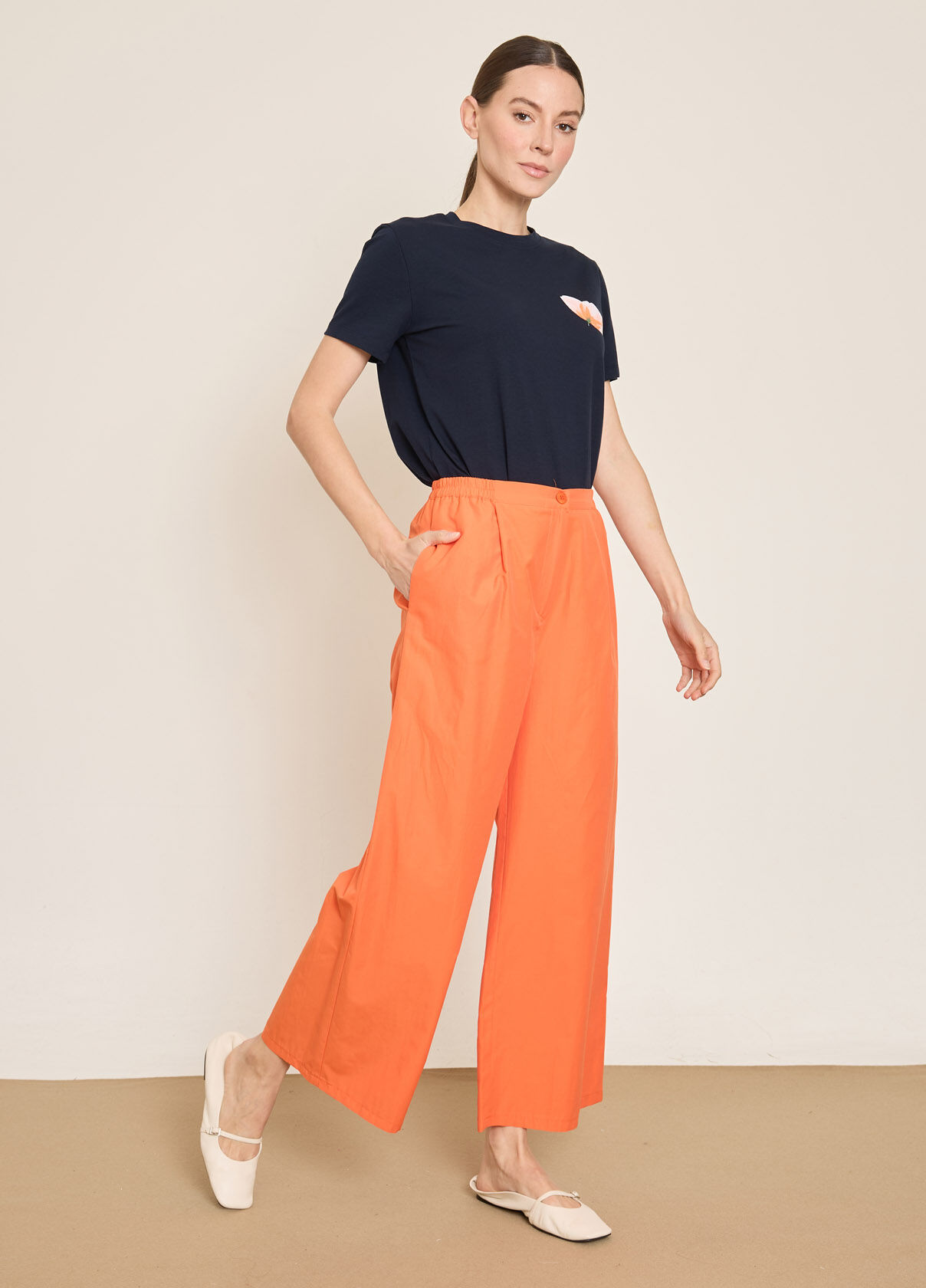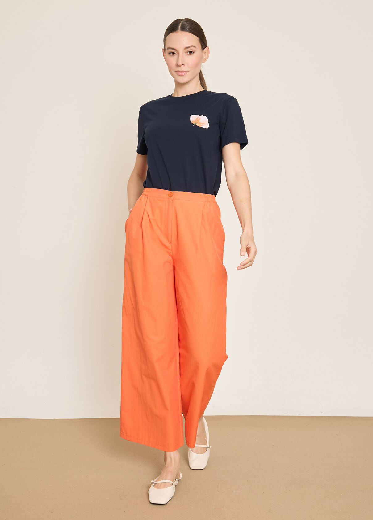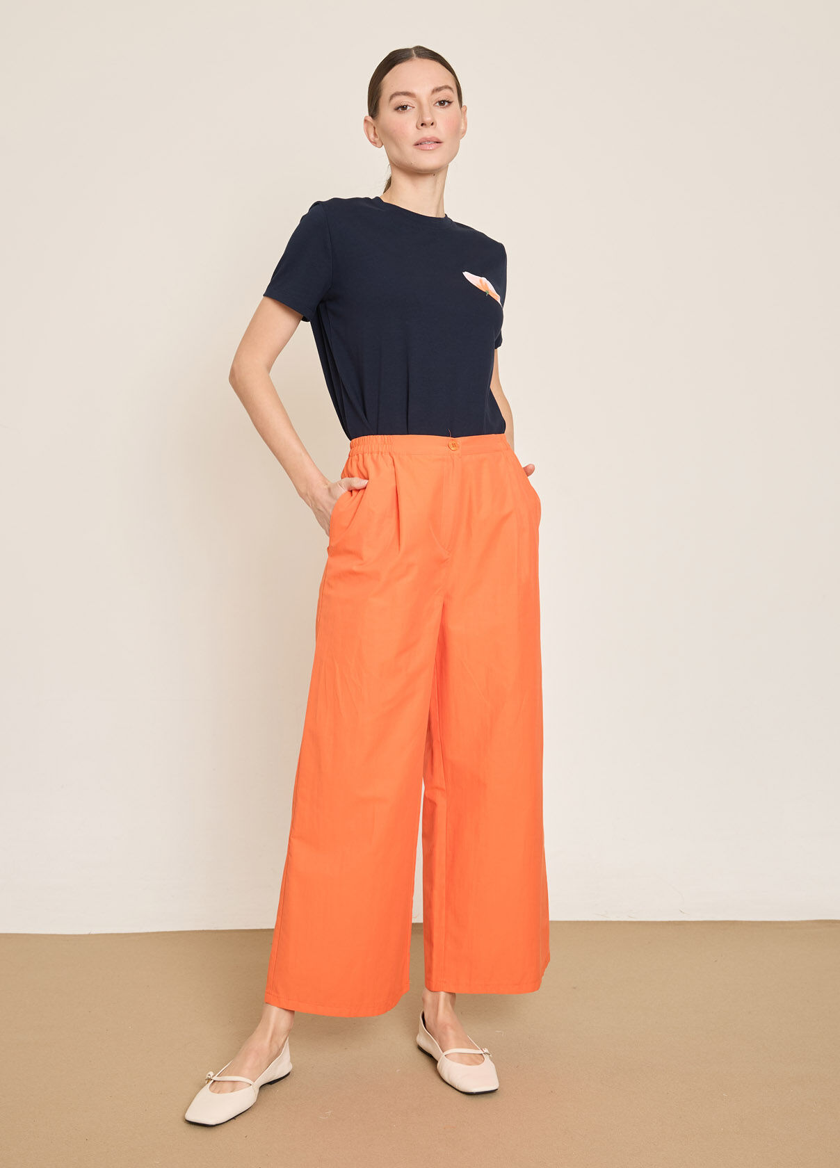 PAMUK KARISIM BELI LASTIKLI GENIS PACA PANTOLON