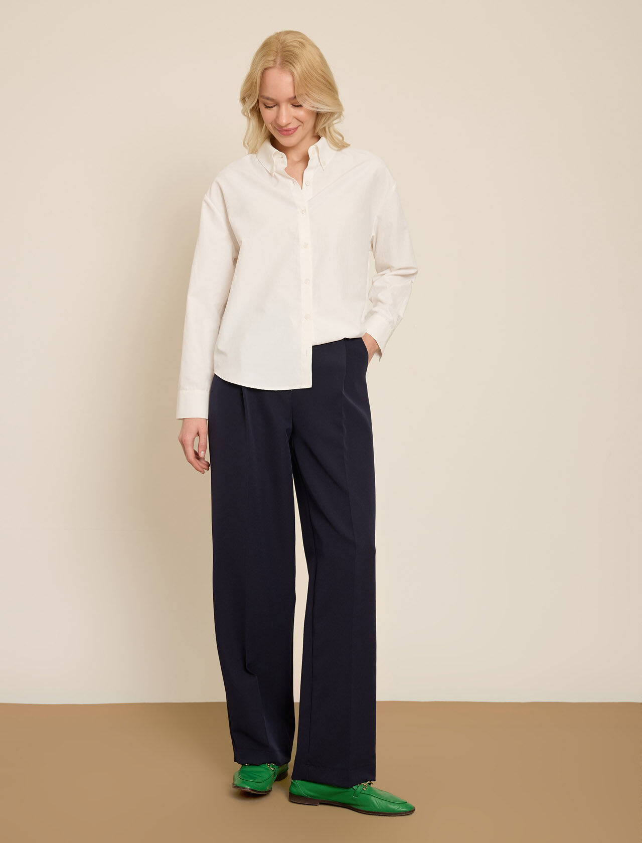 PİLE DETAYLI KISA KOLLU PAMUK KARISIM GOMLEK