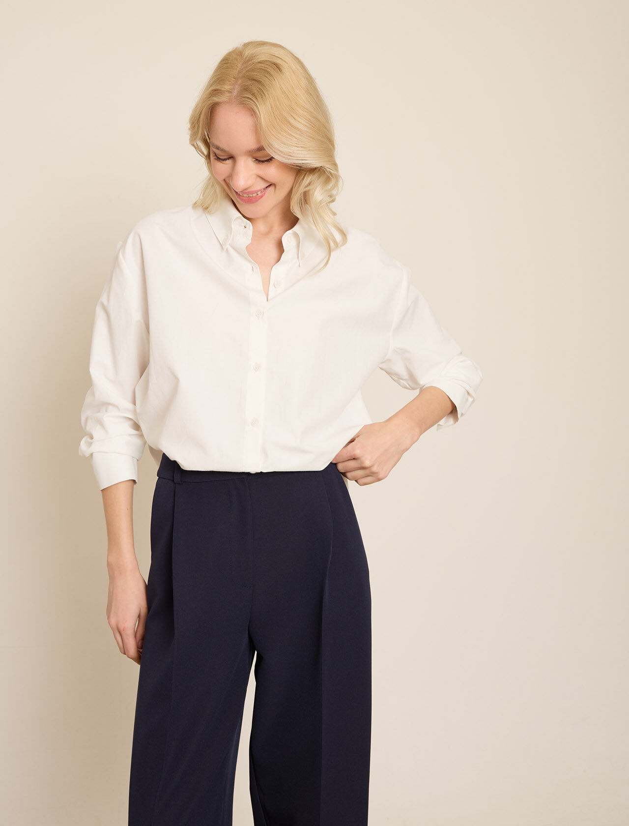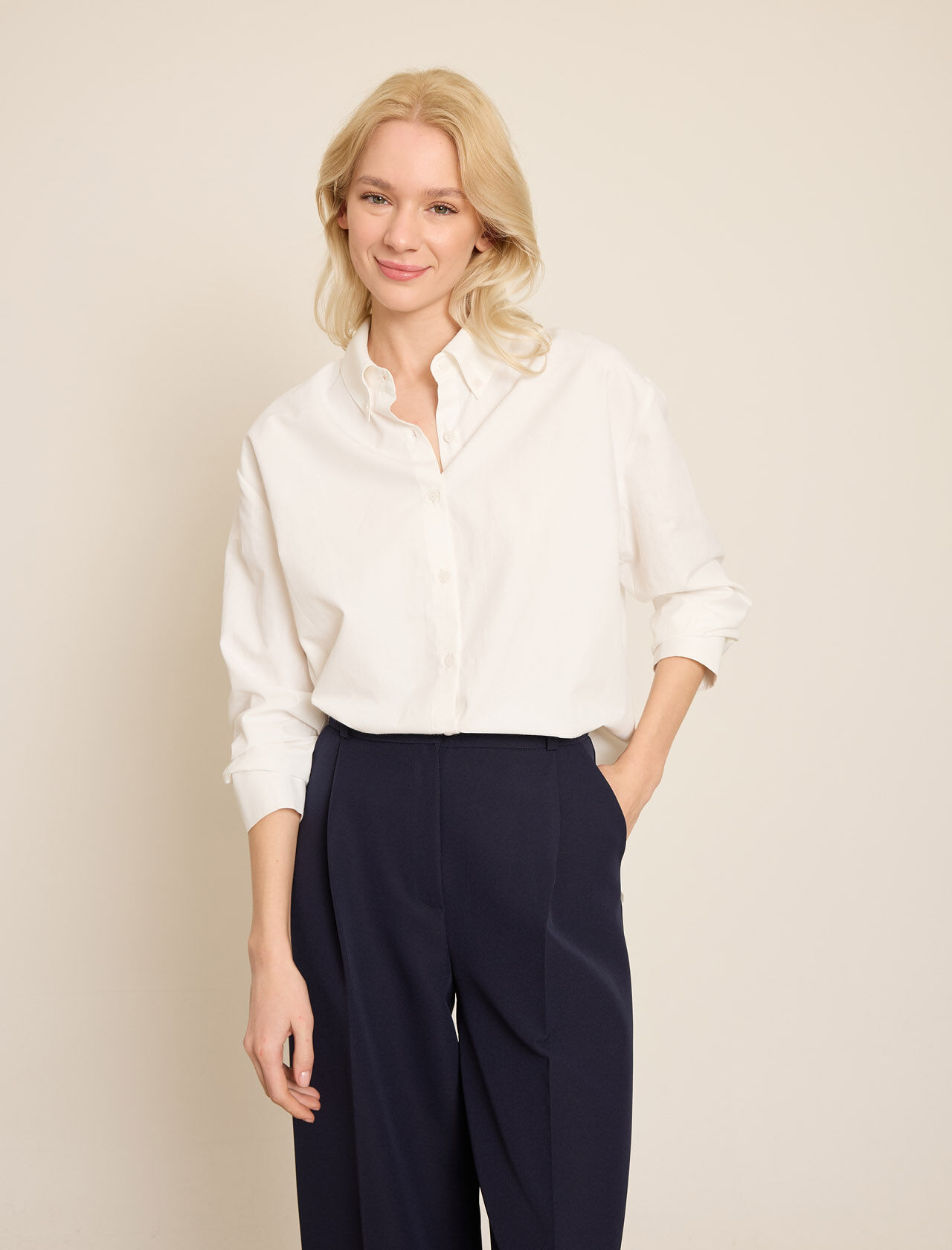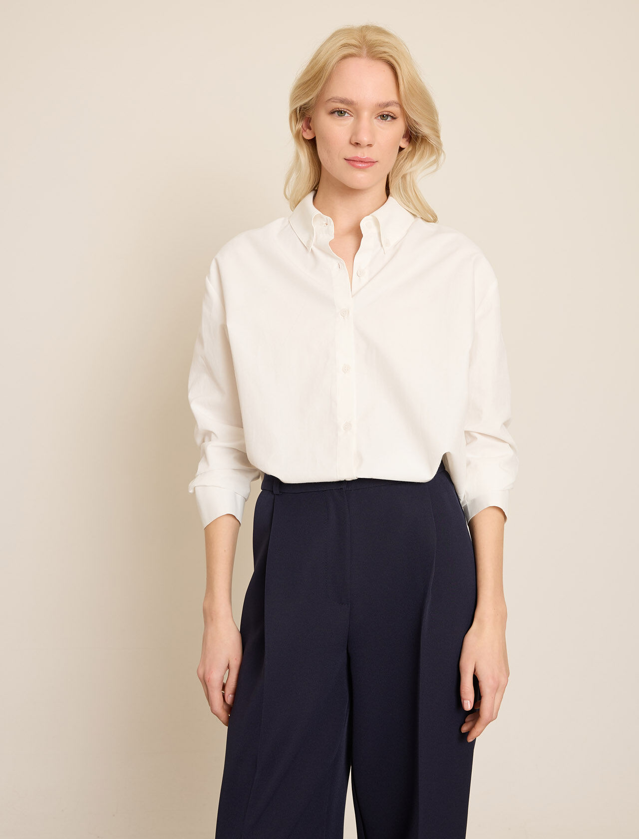 KUP KESIKLI VE PILE DETAYLI PAMUK KARISIM GOMLEK