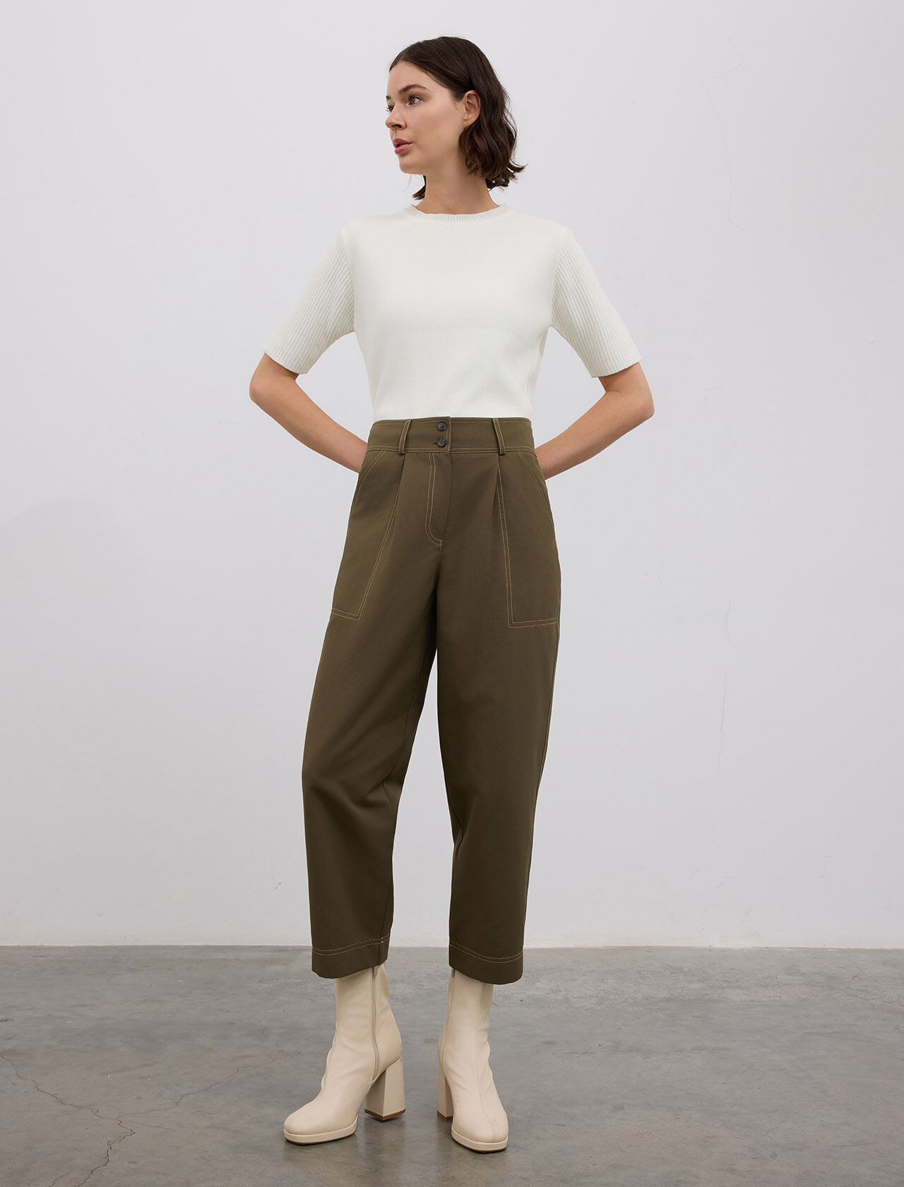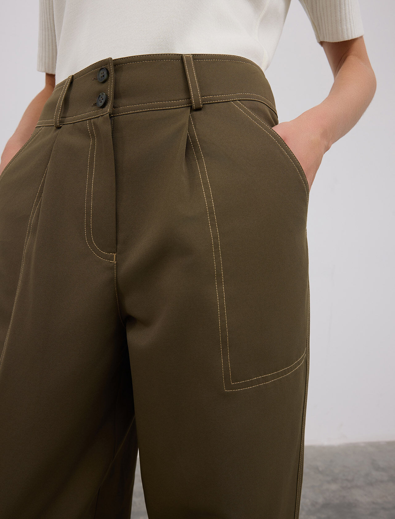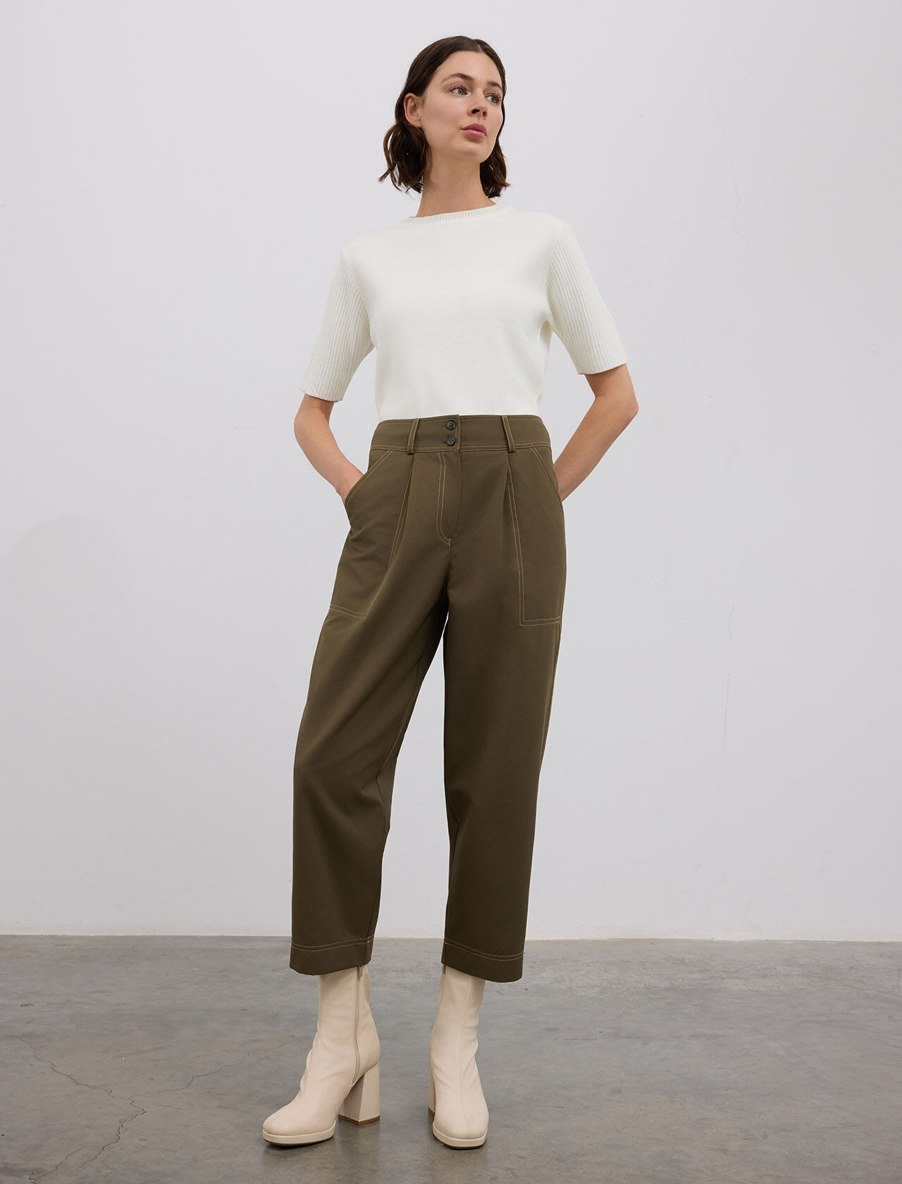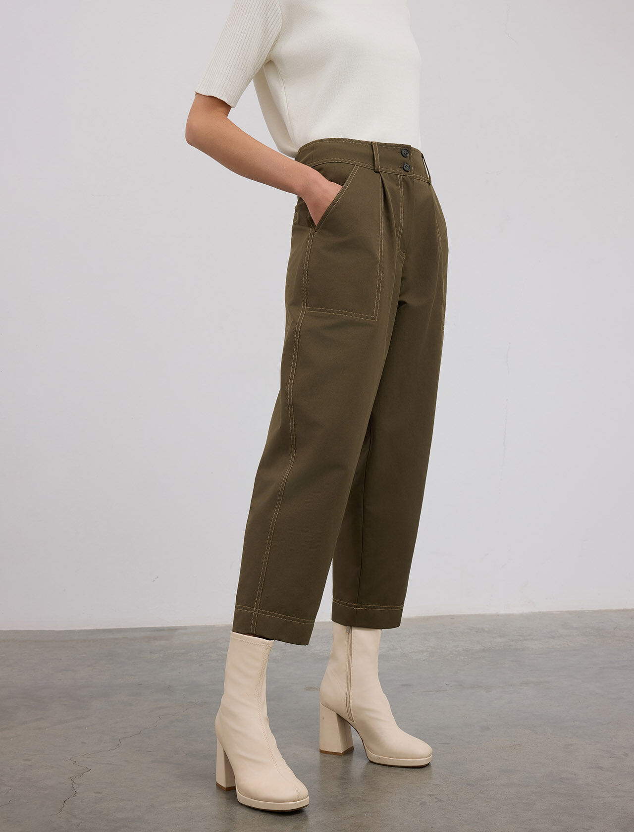 Pileli Havuç Kesim Pamuk Karışımlı Pantolon