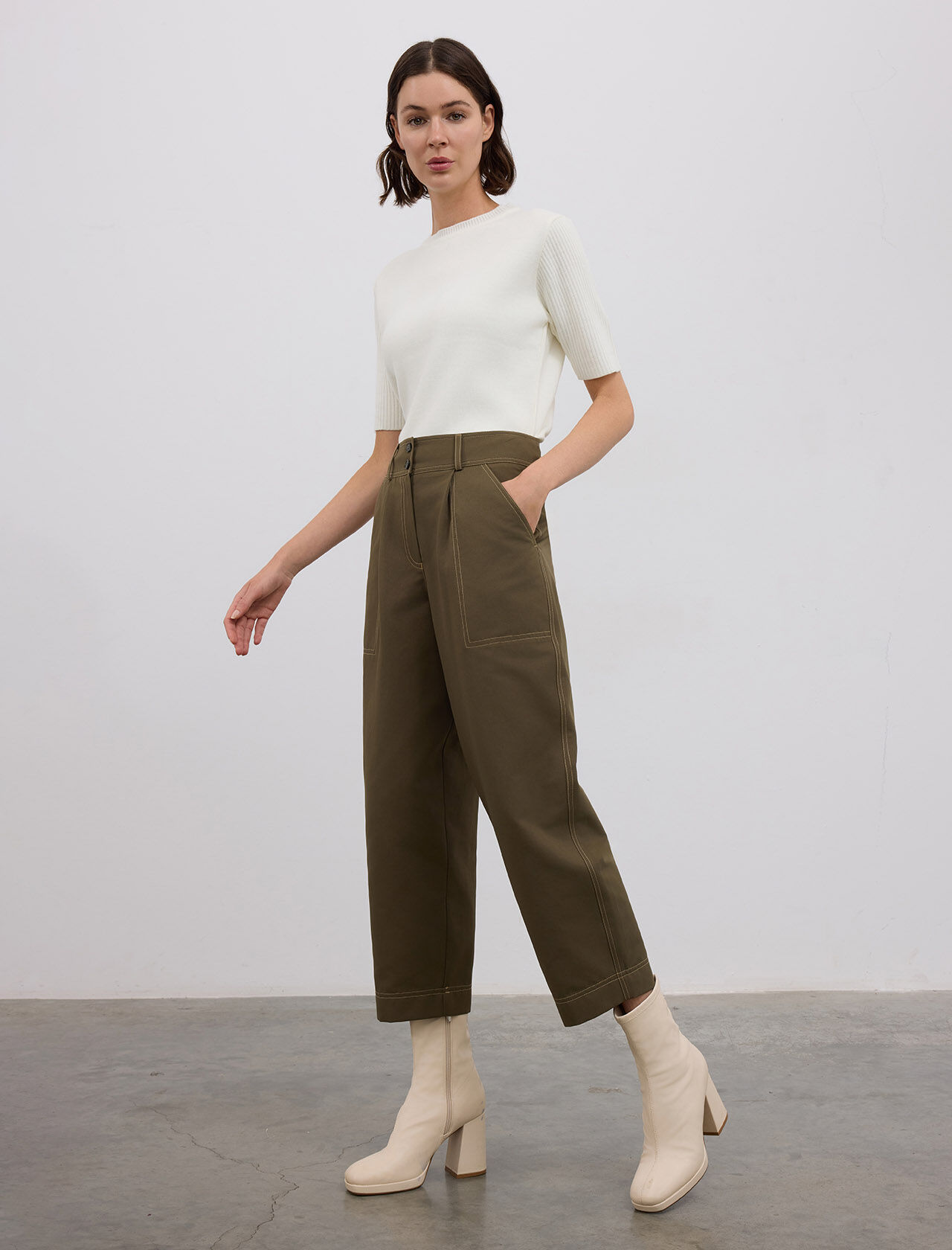 PAMUK KARISIM KONTRAST DIKISLI HAVUC PANTOLON
