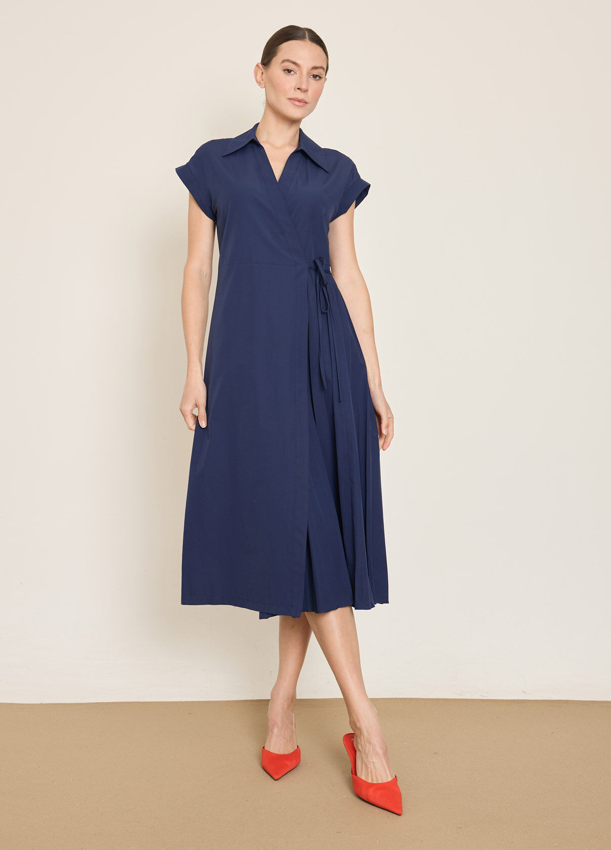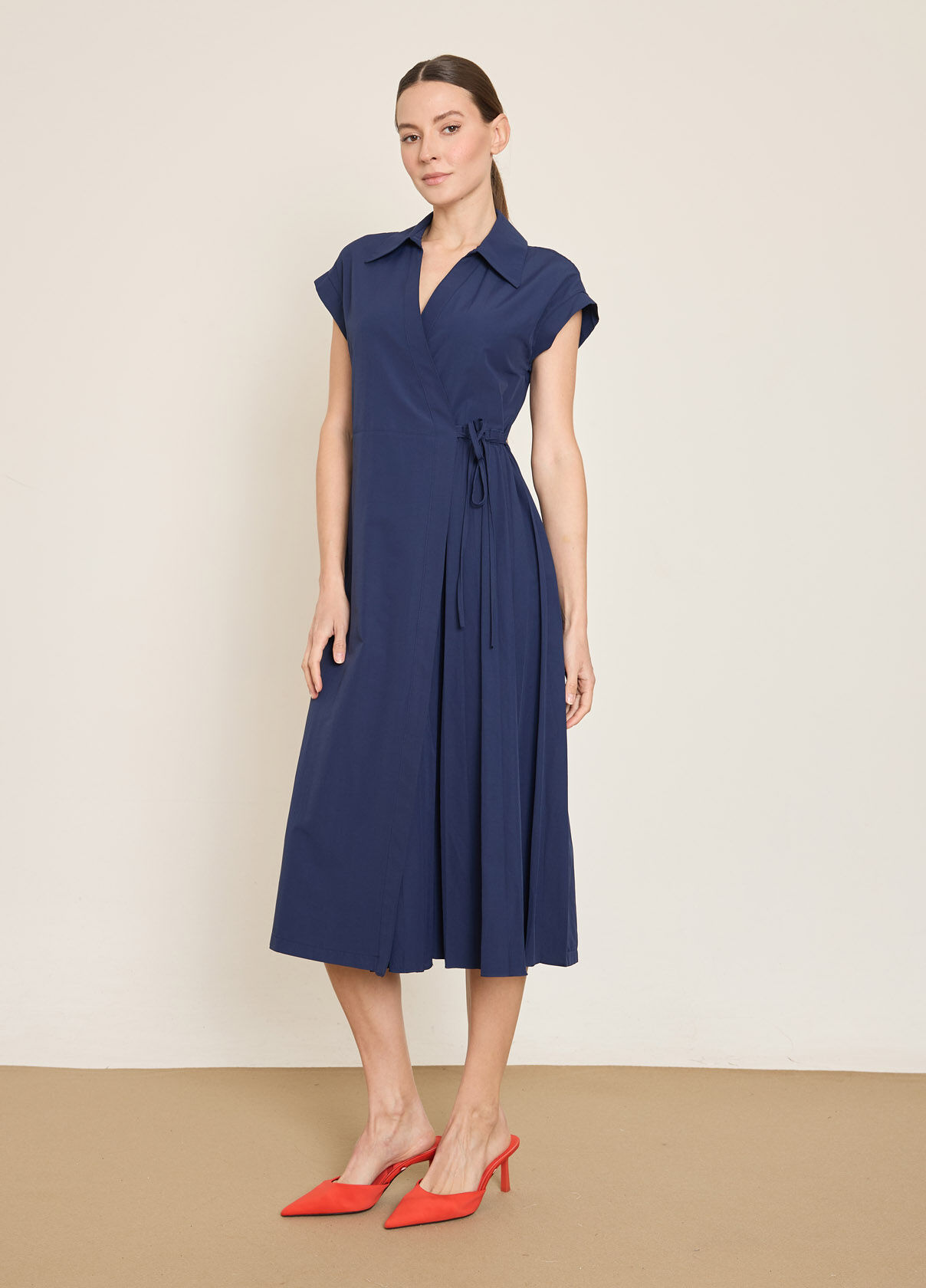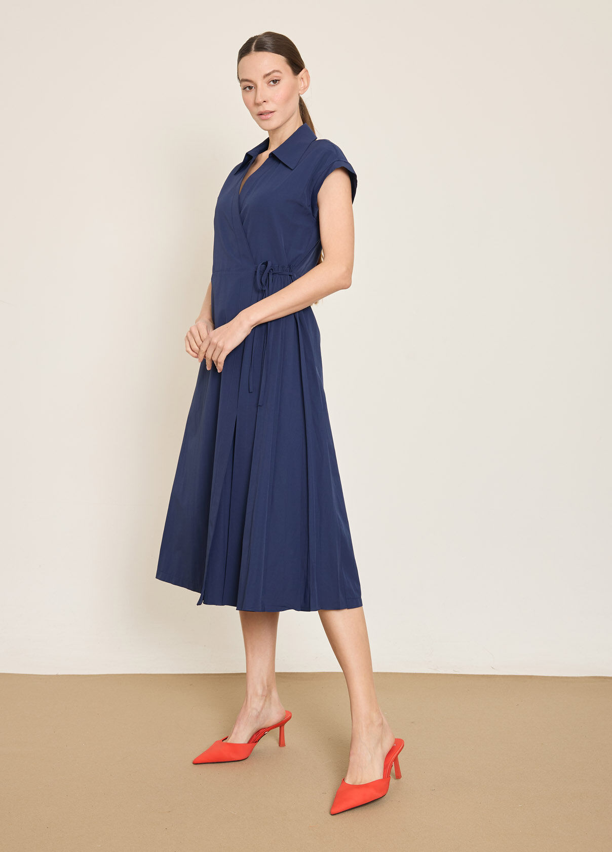 PAMUK KARISIM PİLE DETAYLI KRUVAZE KAPAMA ELBISE