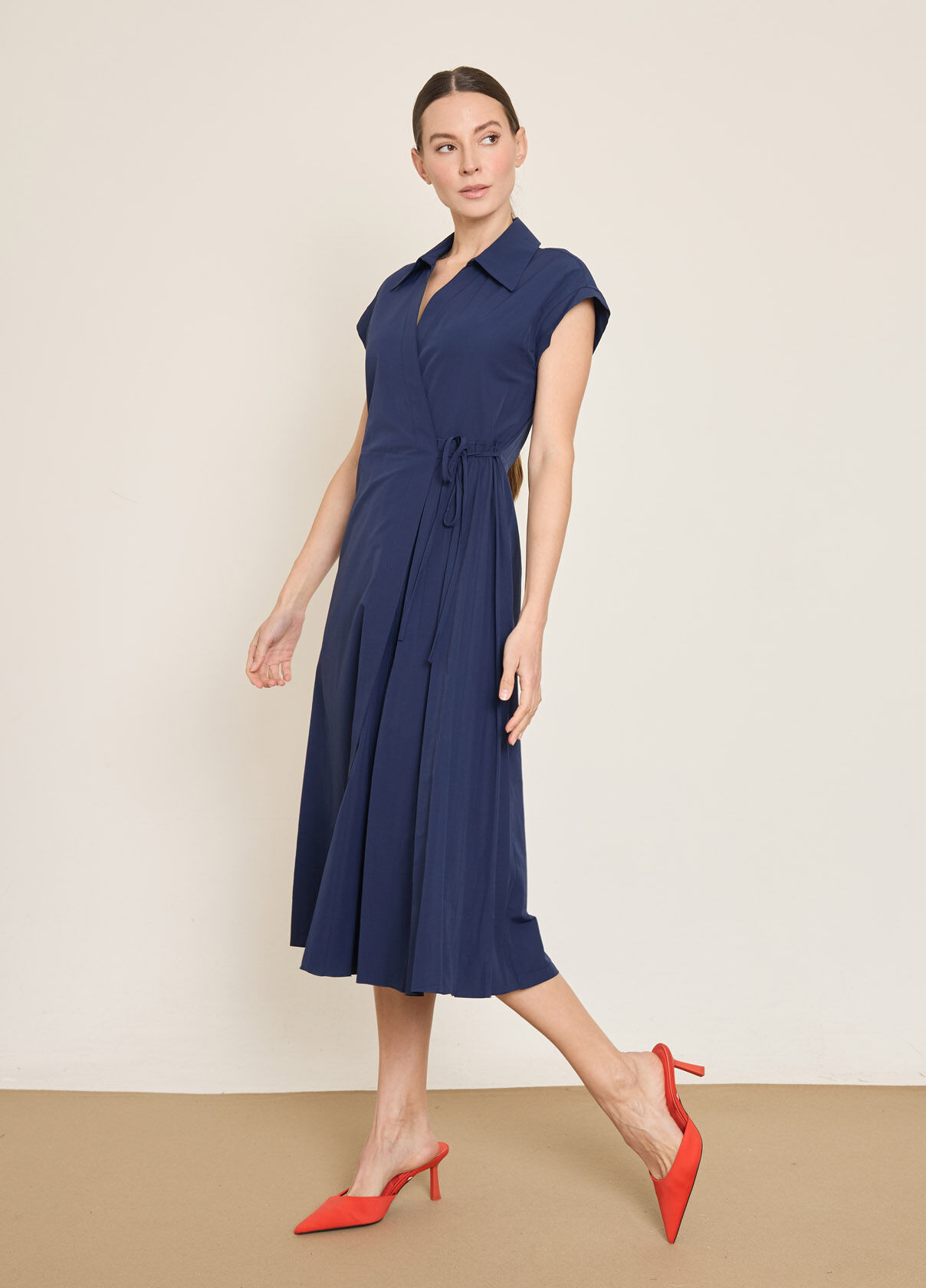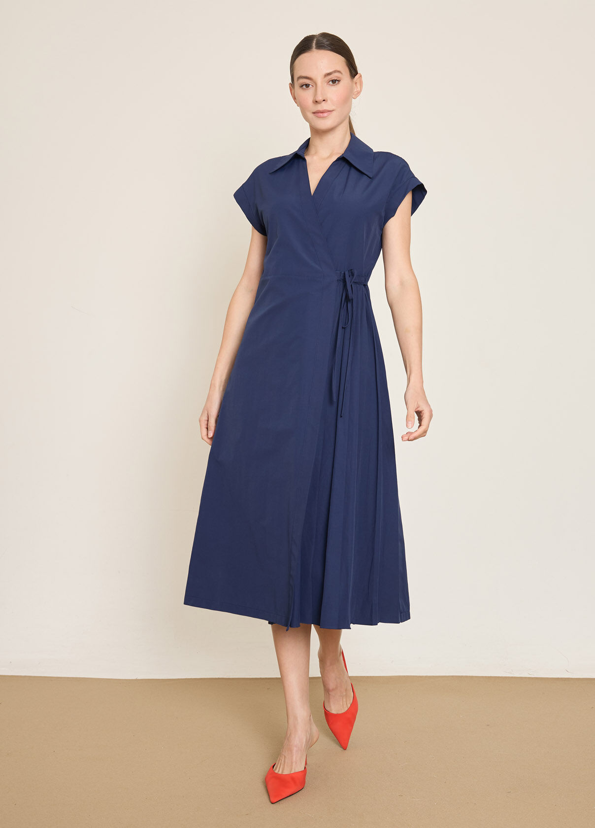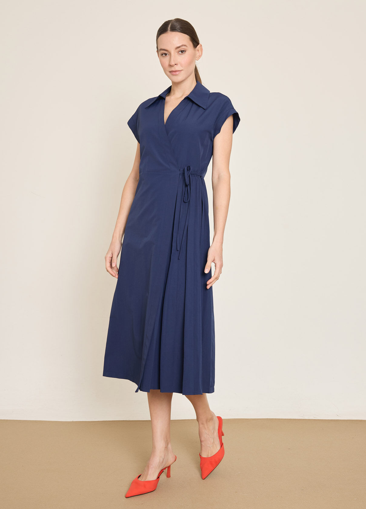 PAMUK KARISIM PİLE DETAYLI KRUVAZE KAPAMA ELBISE