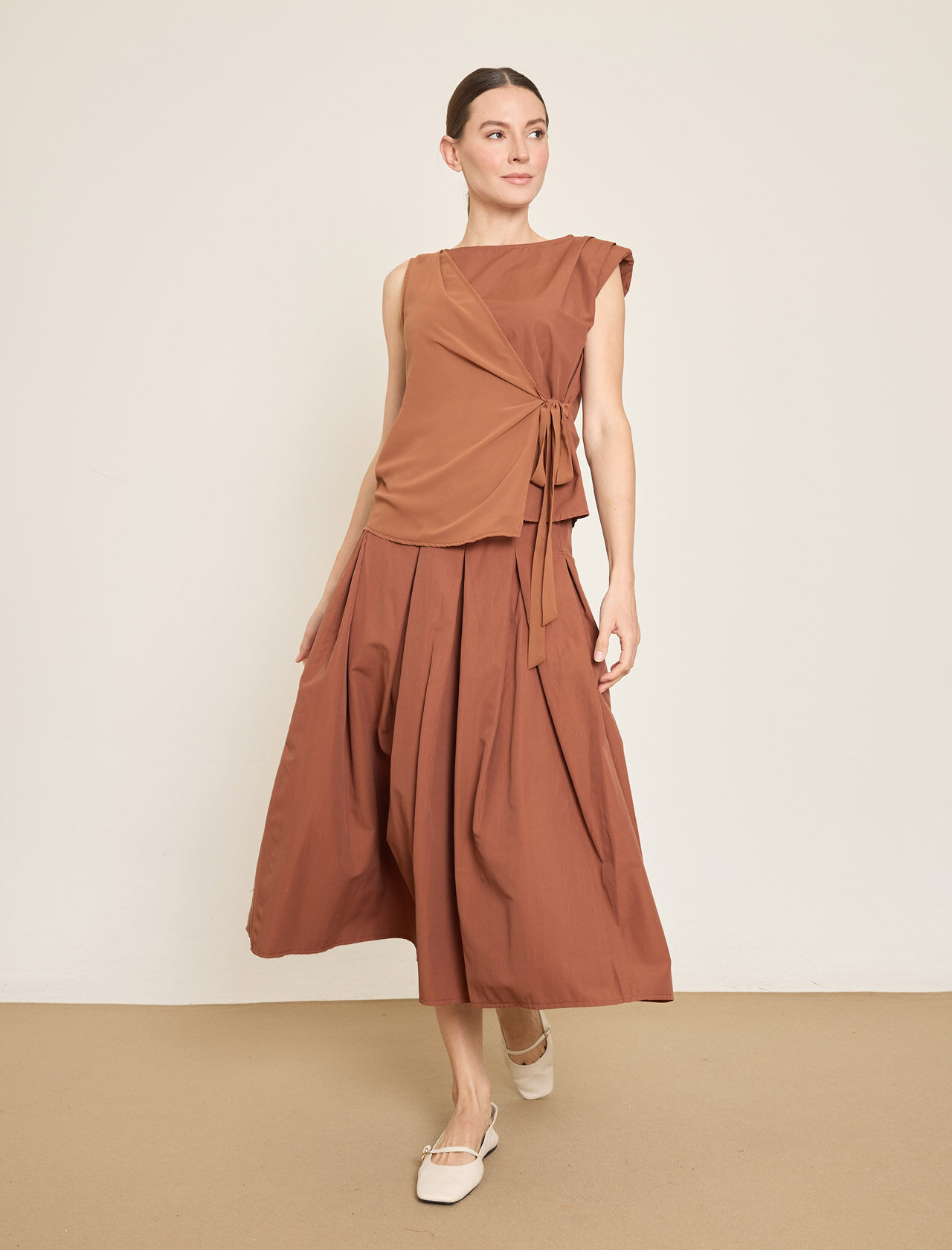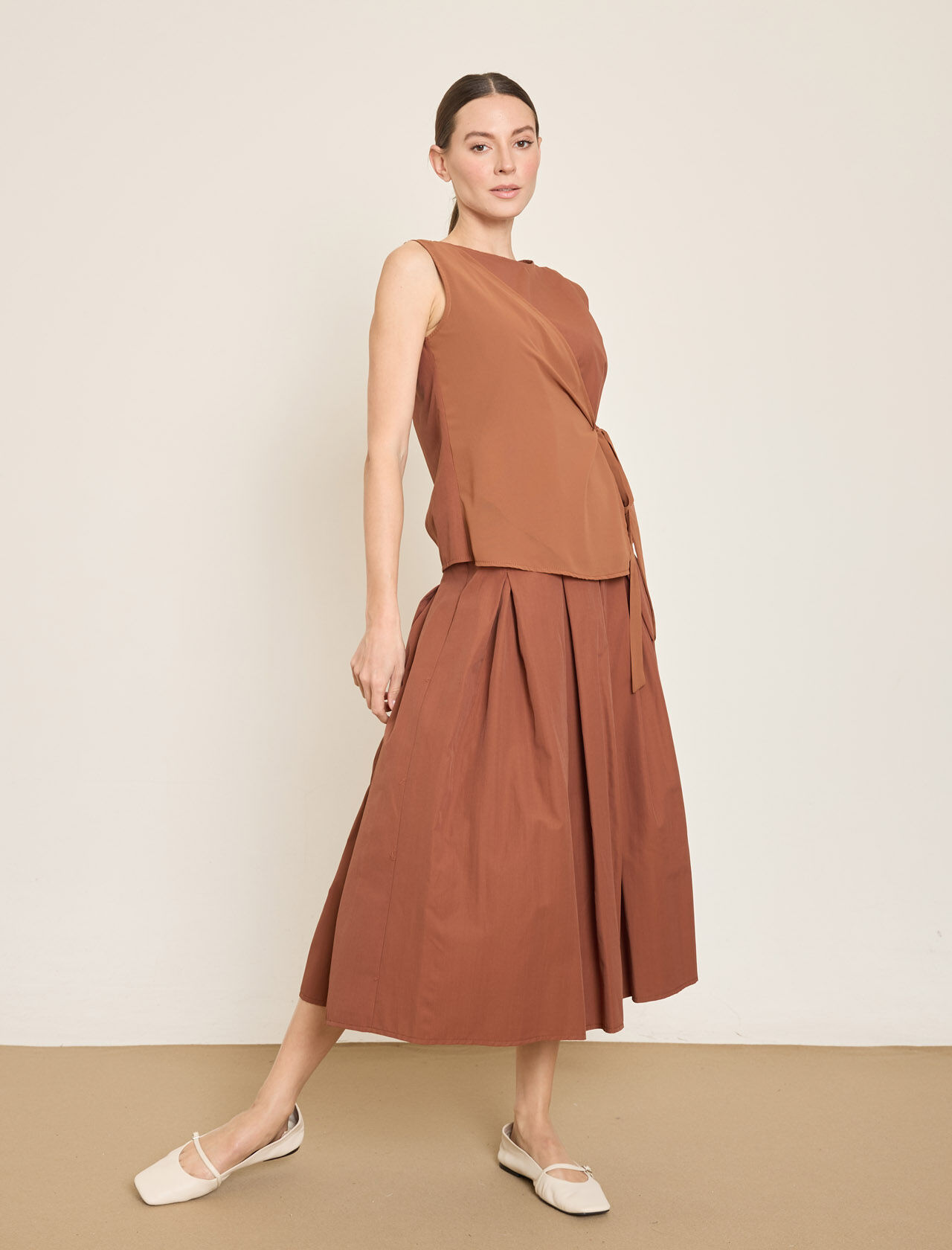 CEP DETAYLI KEMERLI PAMUK KARISIM MIDI VOLAN ETEK
