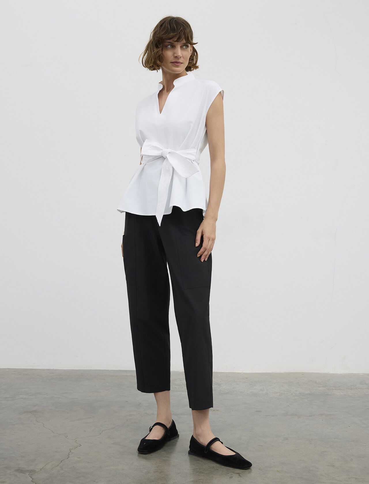 Süs Dikişli Kemerli Kolsuz Pamuk Bluz