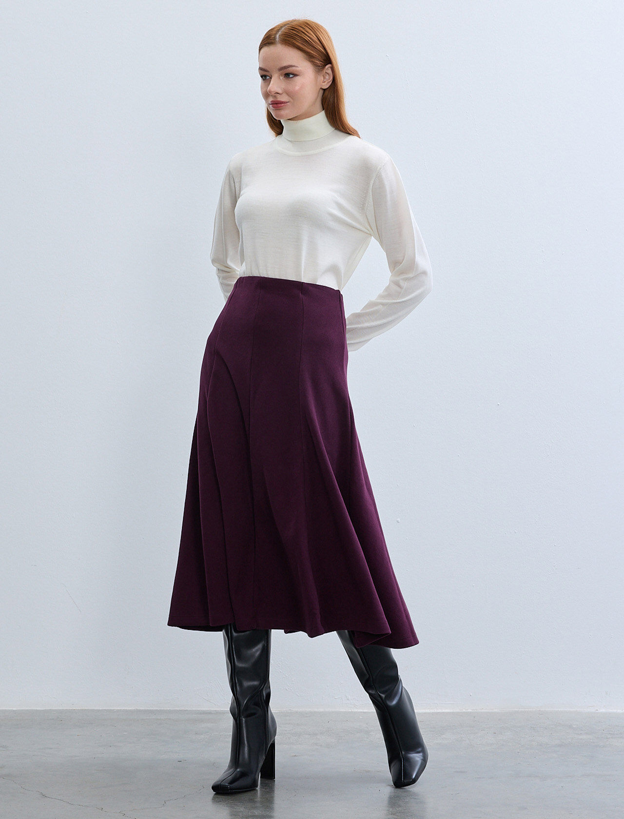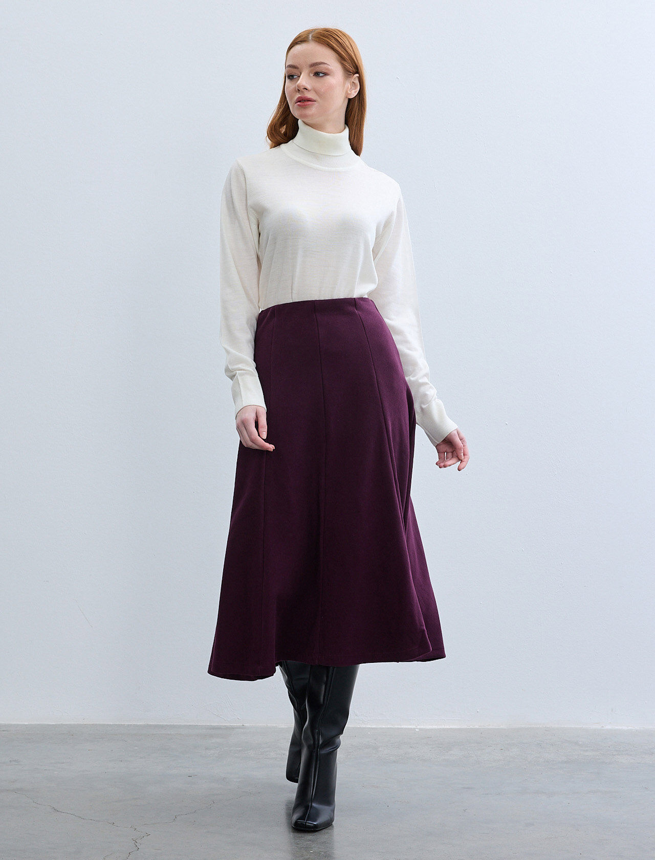 İki Renkli Pamuk Maxi Boy Etek