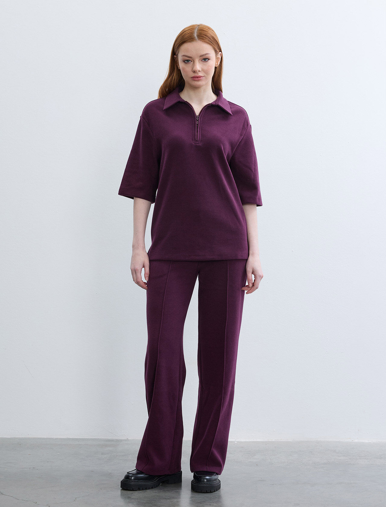 PAMUK KARISIM YAKASI FERMUARLI ORME BLUZ