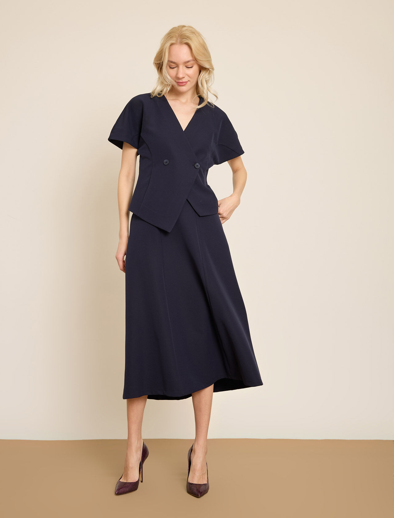 YANDA FERMUAR DETAYLI PILELI MIDI ETEK