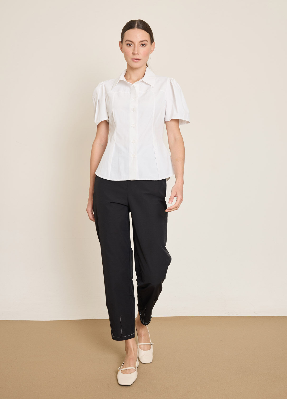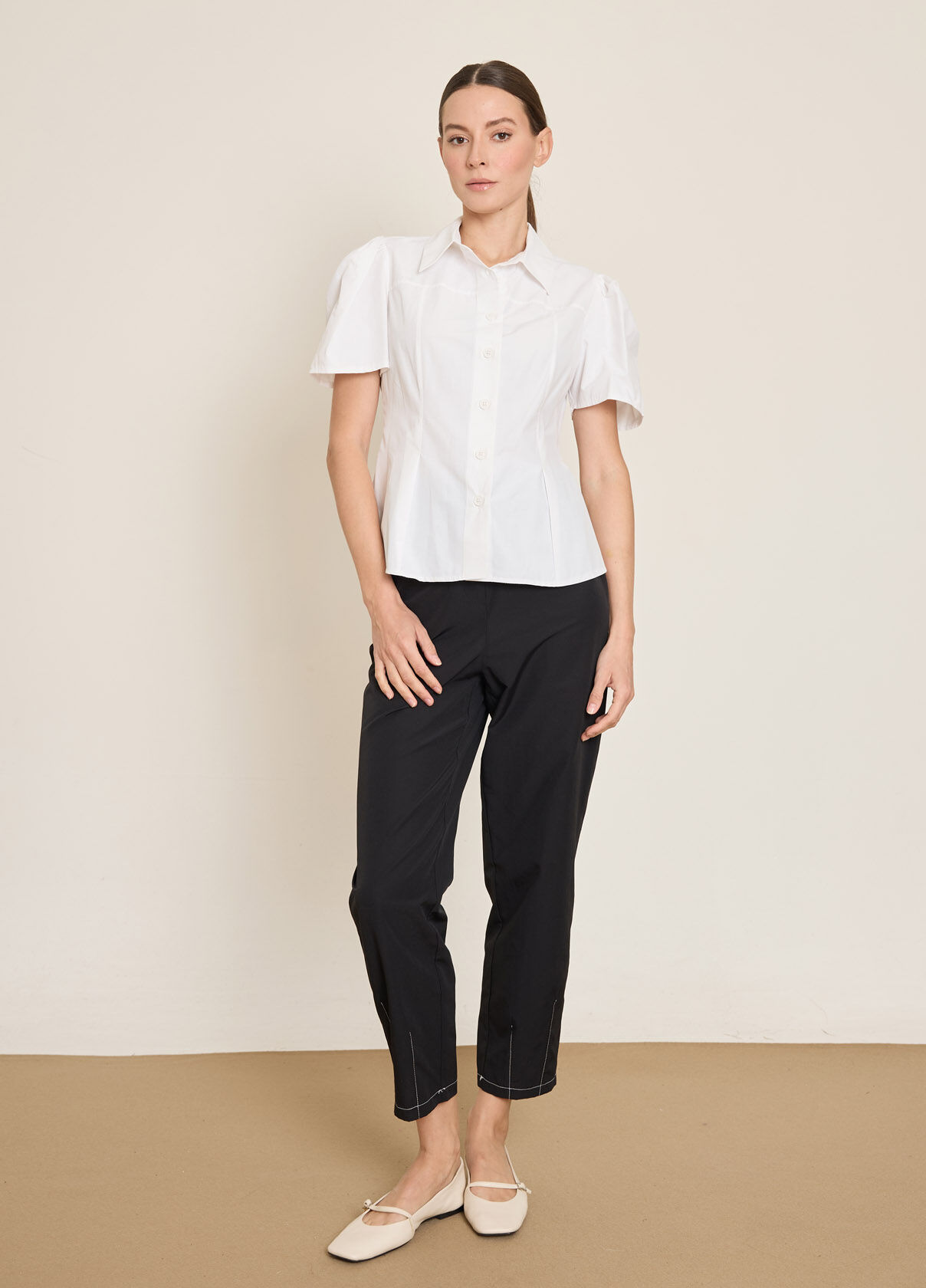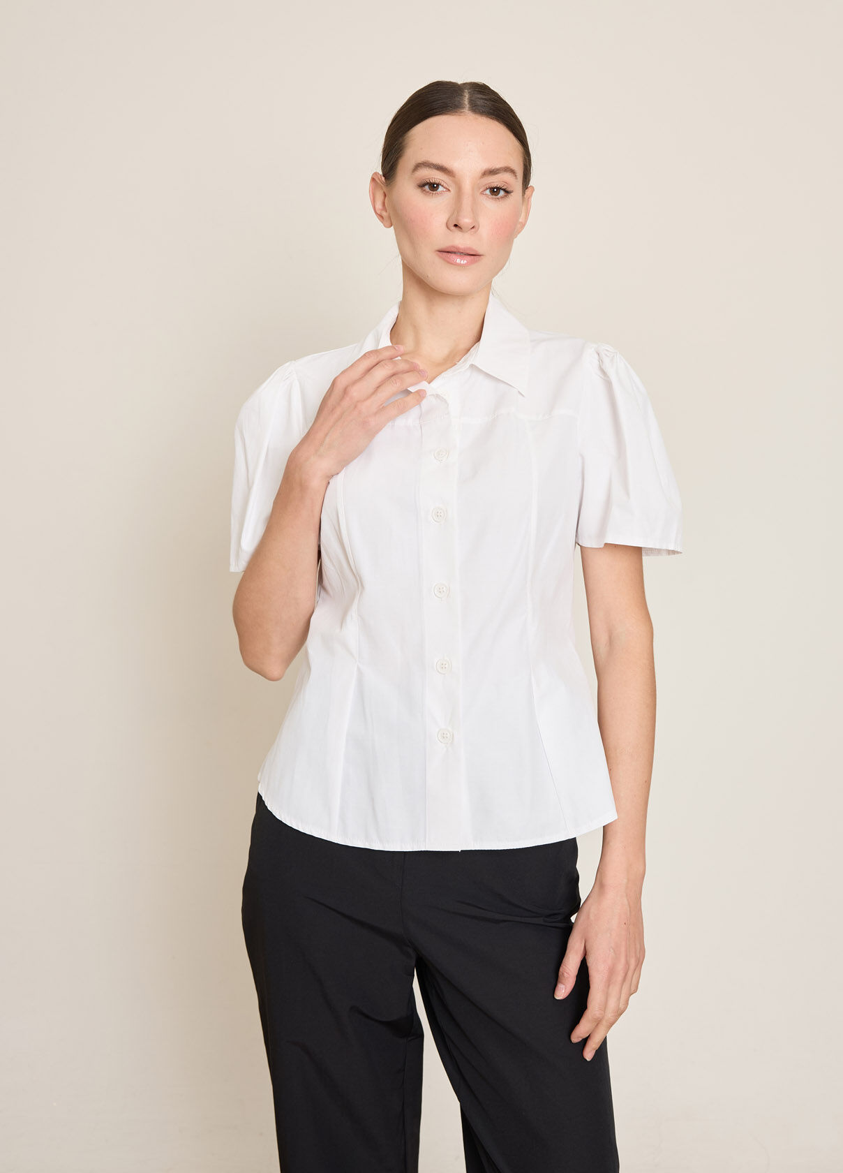 PİLE DETAYLI KISA KOLLU PAMUK KARISIM GOMLEK