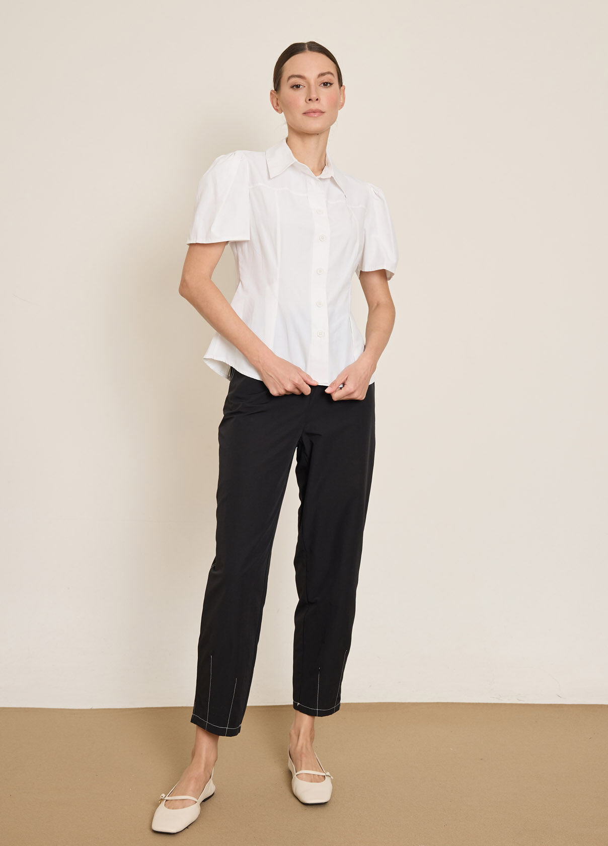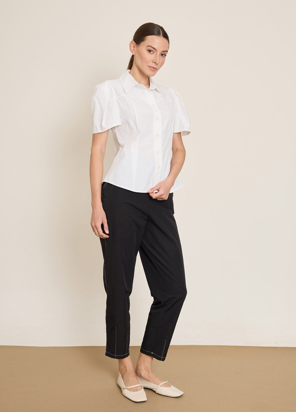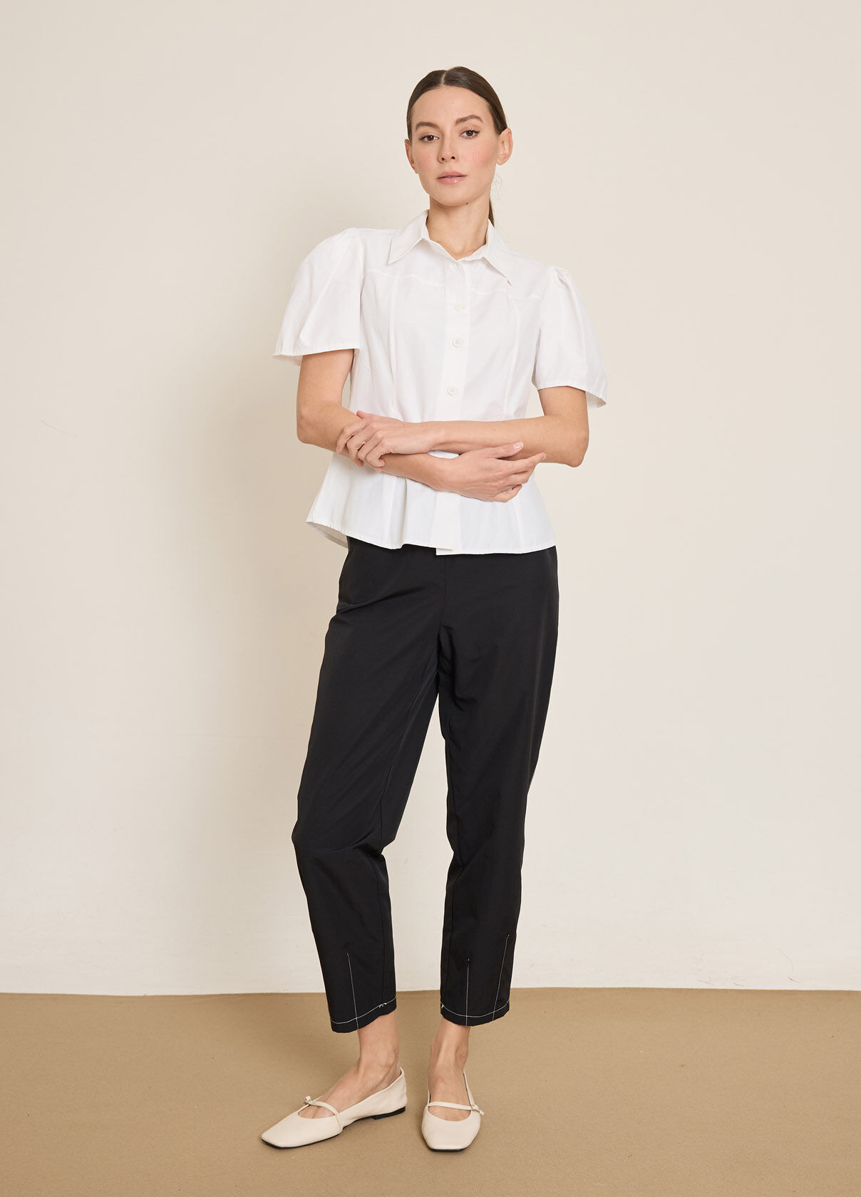 PİLE DETAYLI KISA KOLLU PAMUK KARISIM GOMLEK