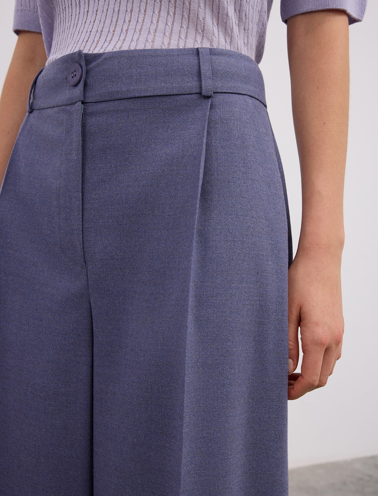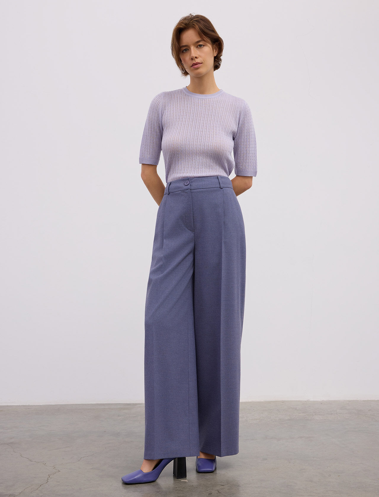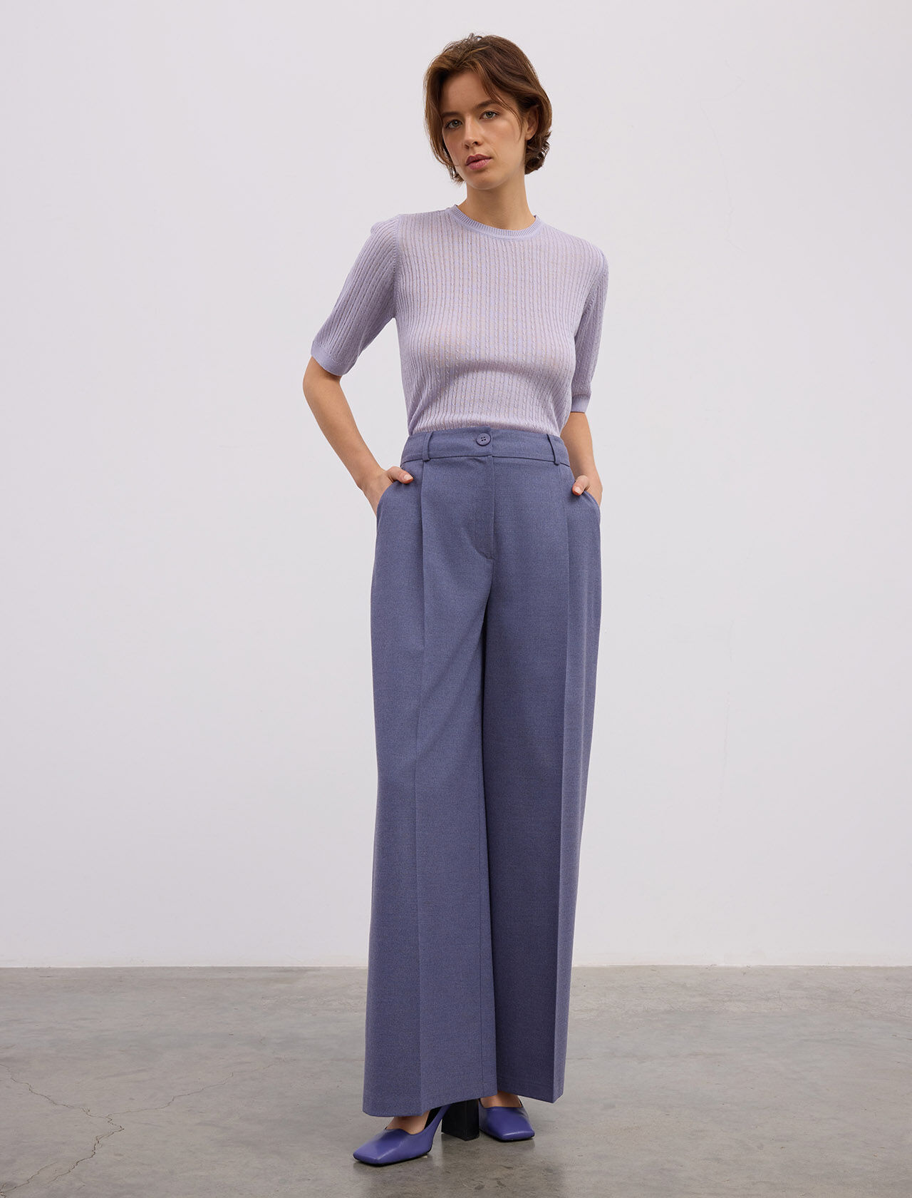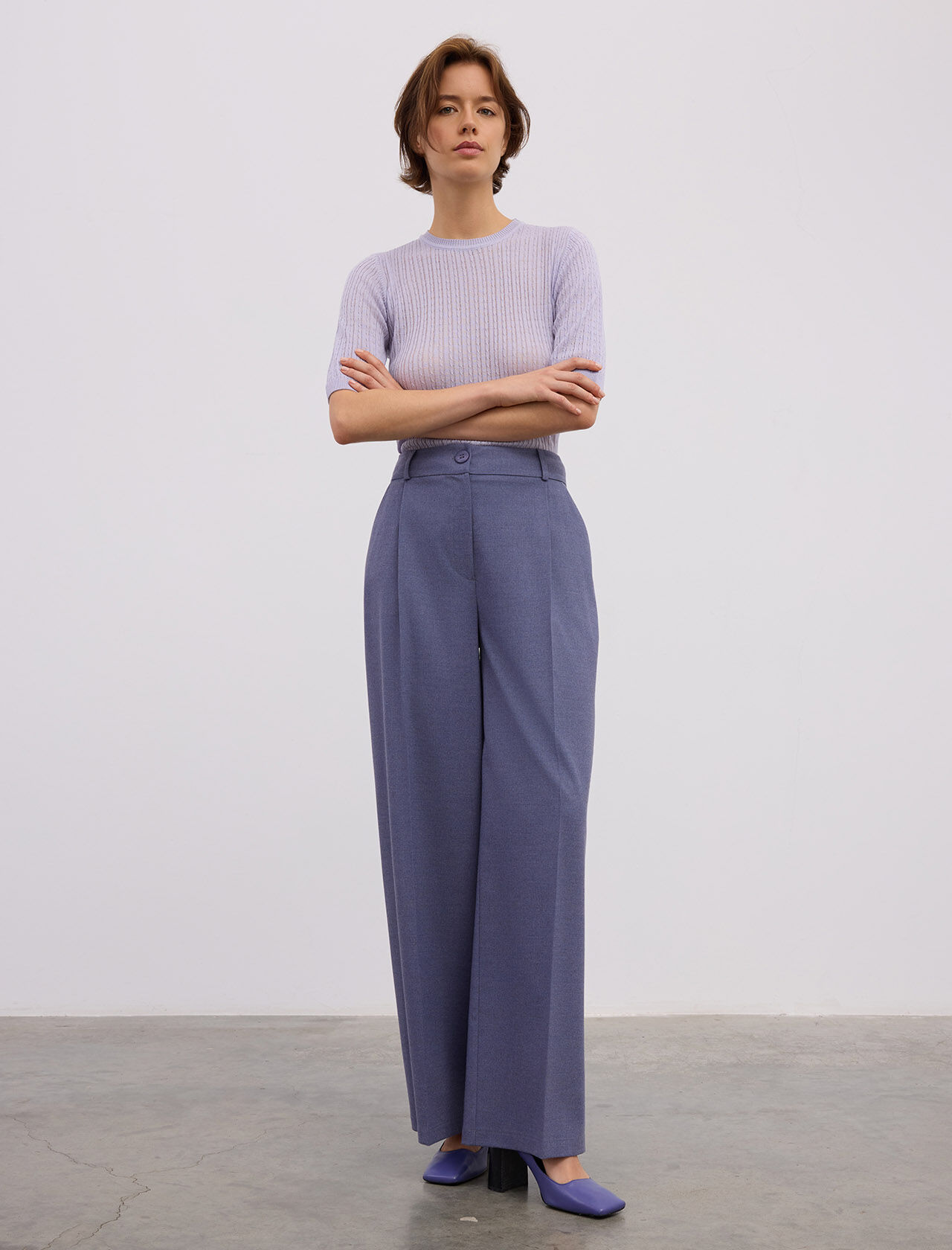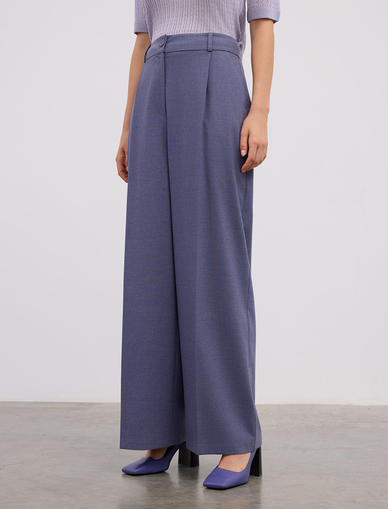 Arkası Lastikli Pileli Geniş Paça Pantolon