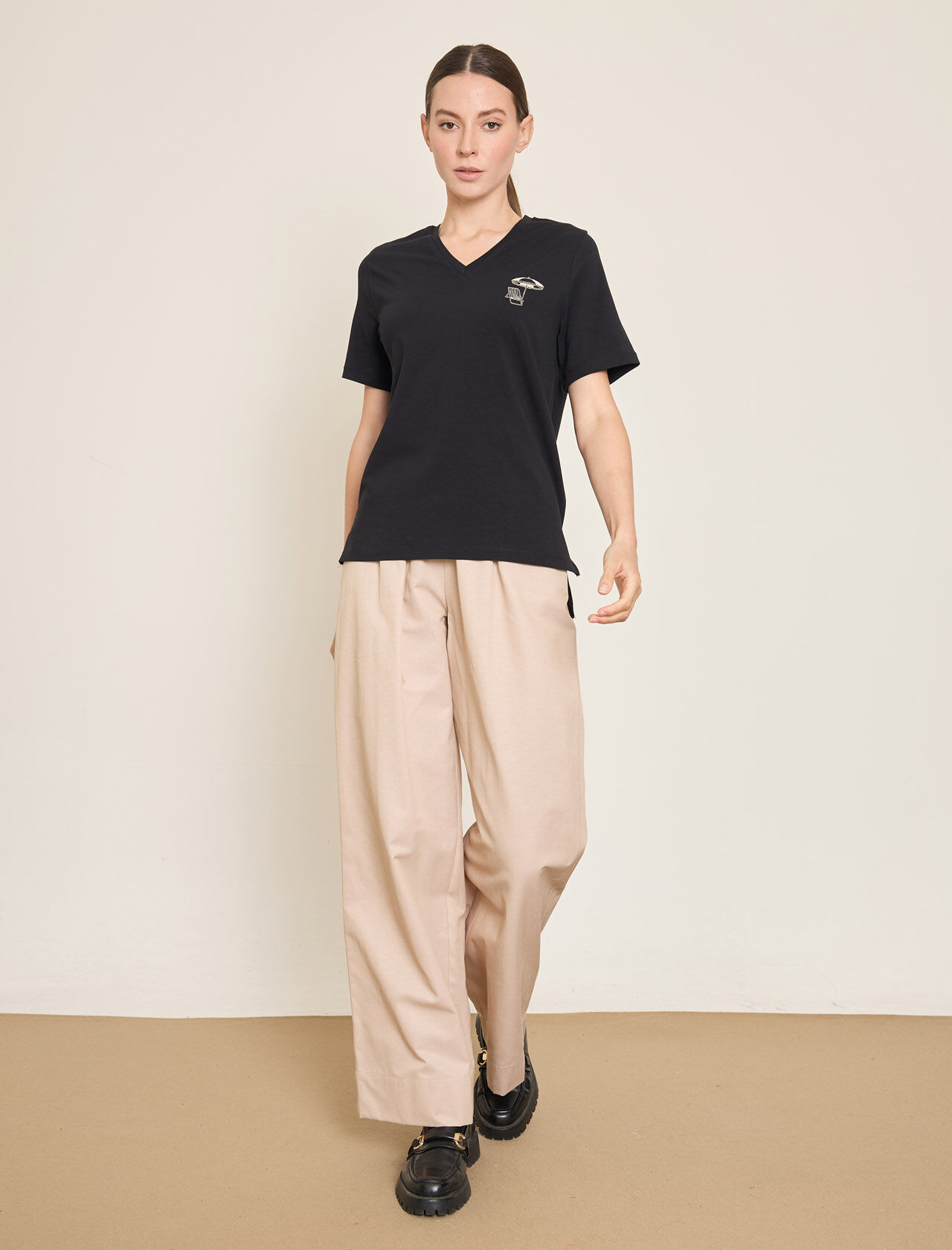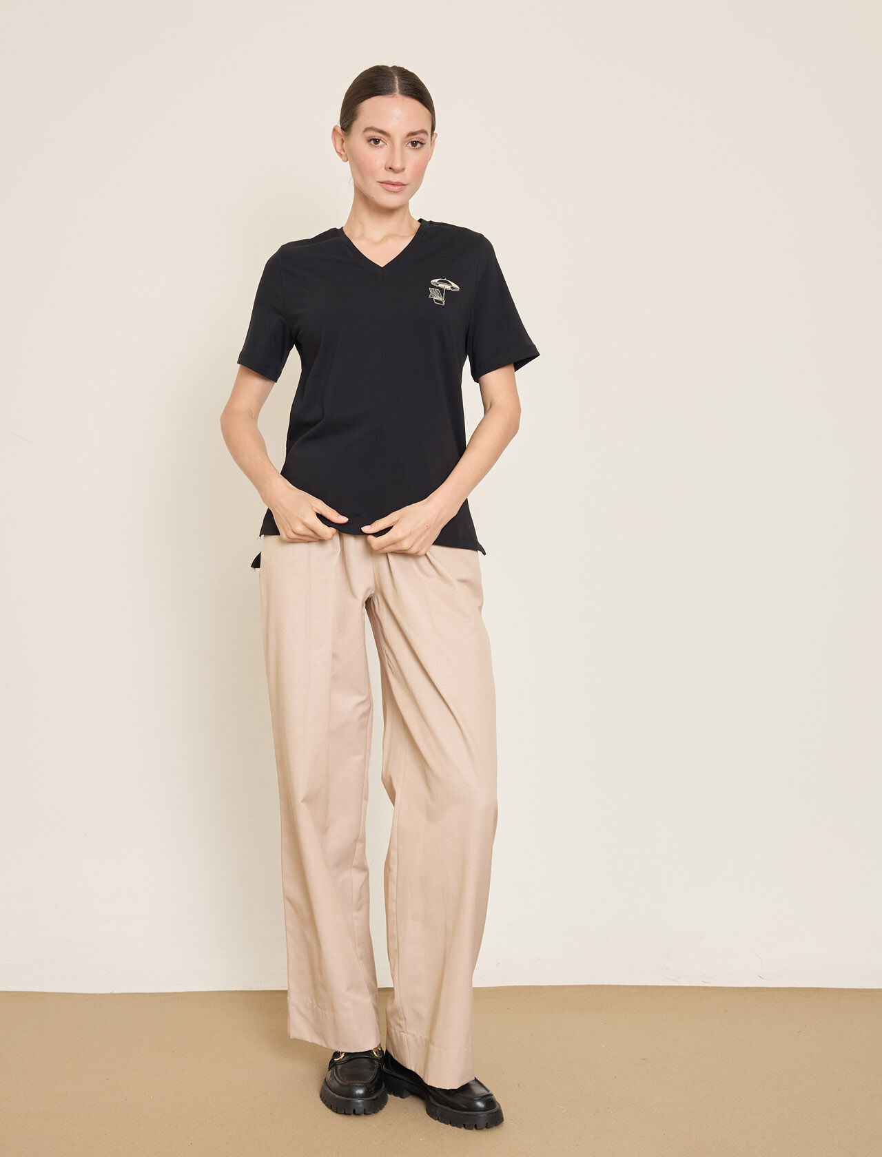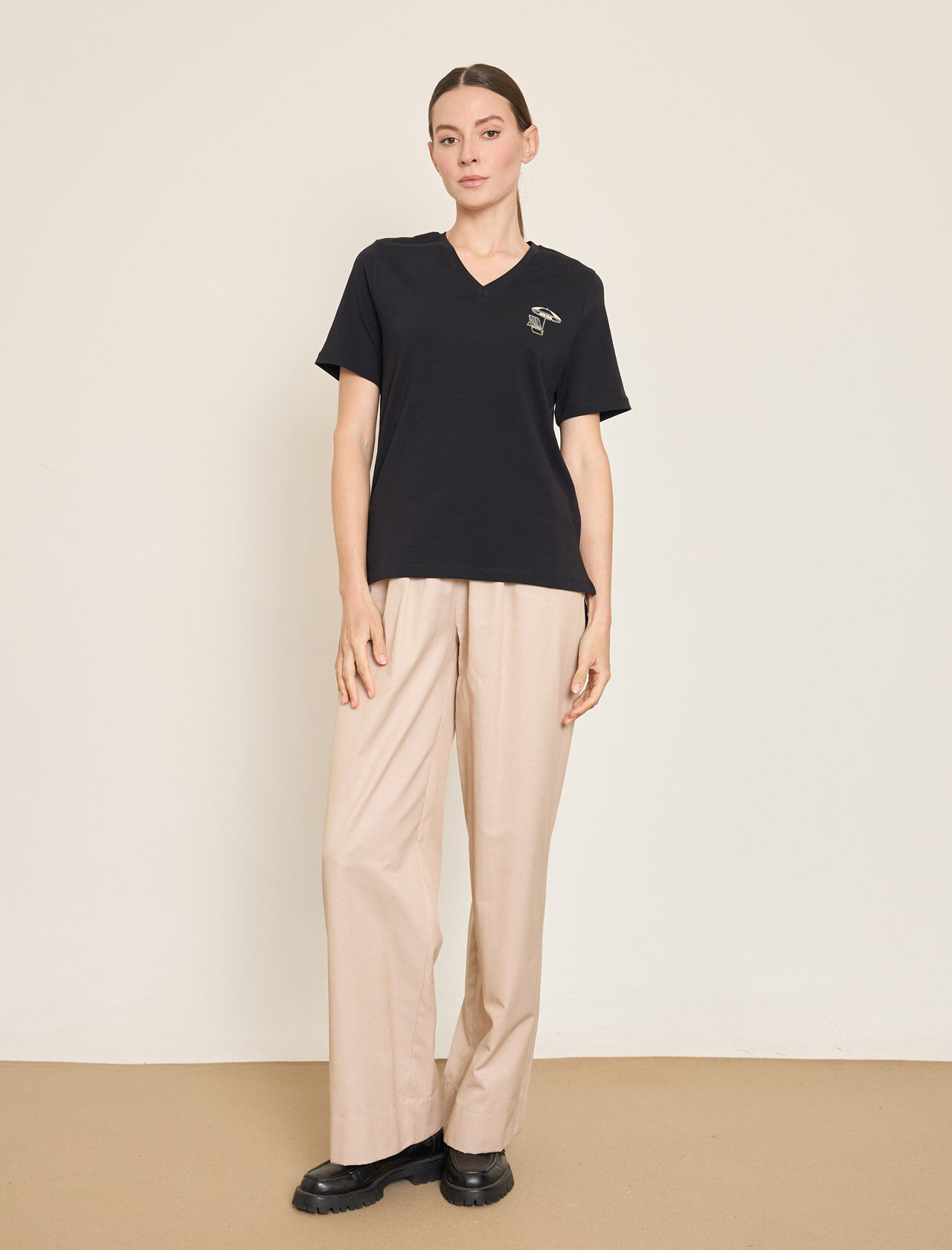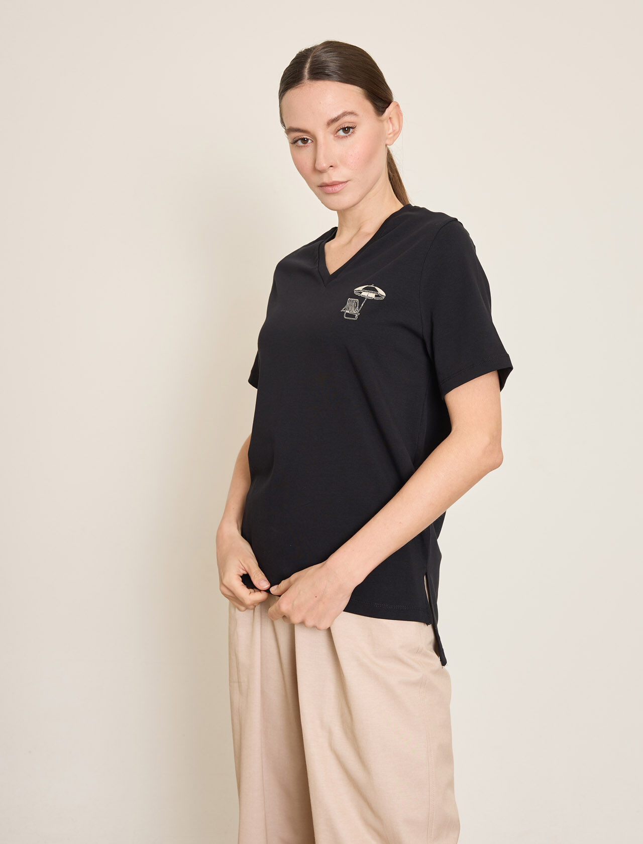 BONCUK İŞLEMELİ CICEK APLİKELİ PAMUKLU T-SHIRT