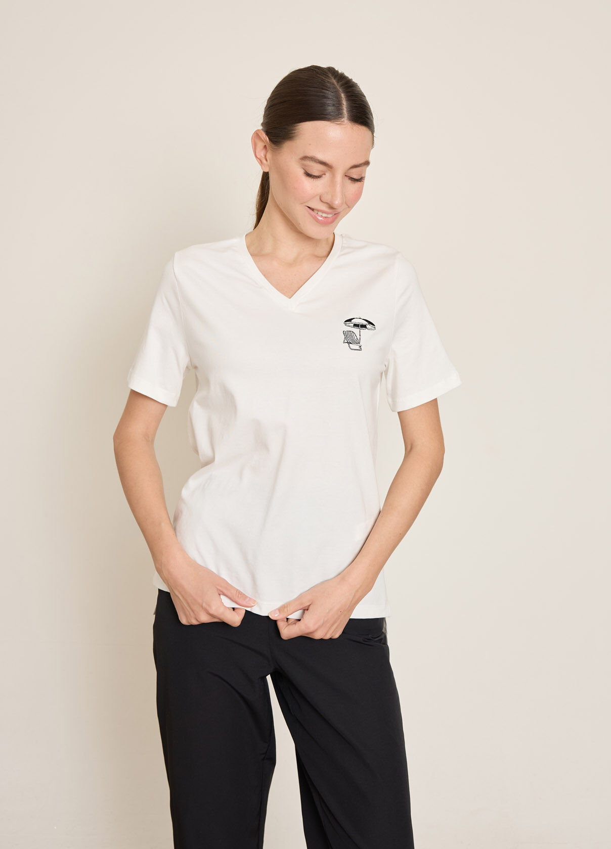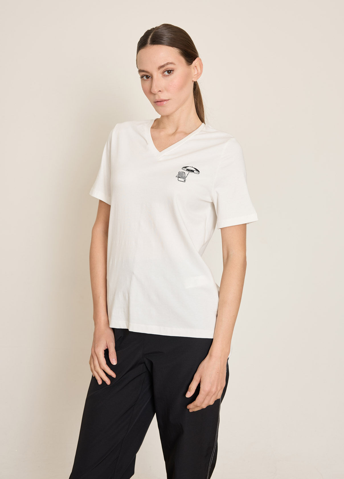 PLAJ SANDALYESI-SEMSIYE NAKISLI PAMUKLU T-SHIRT