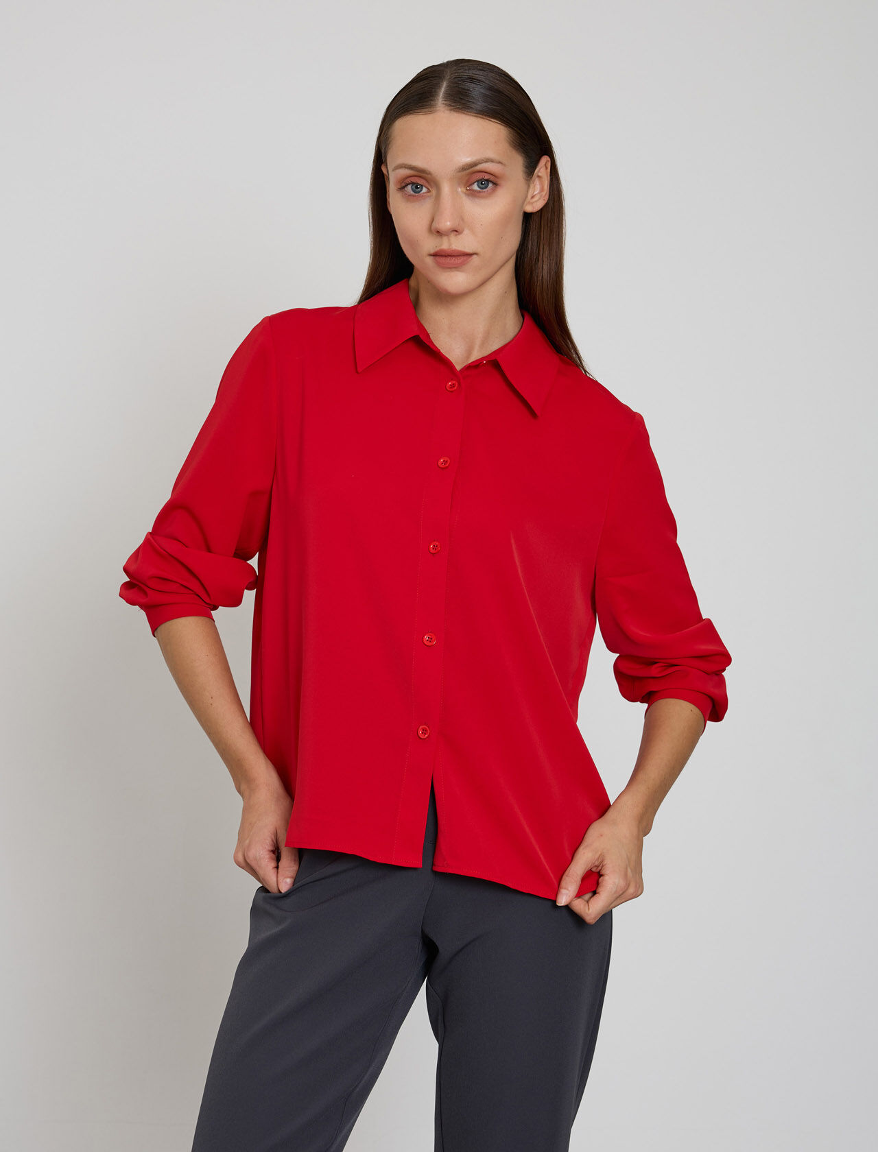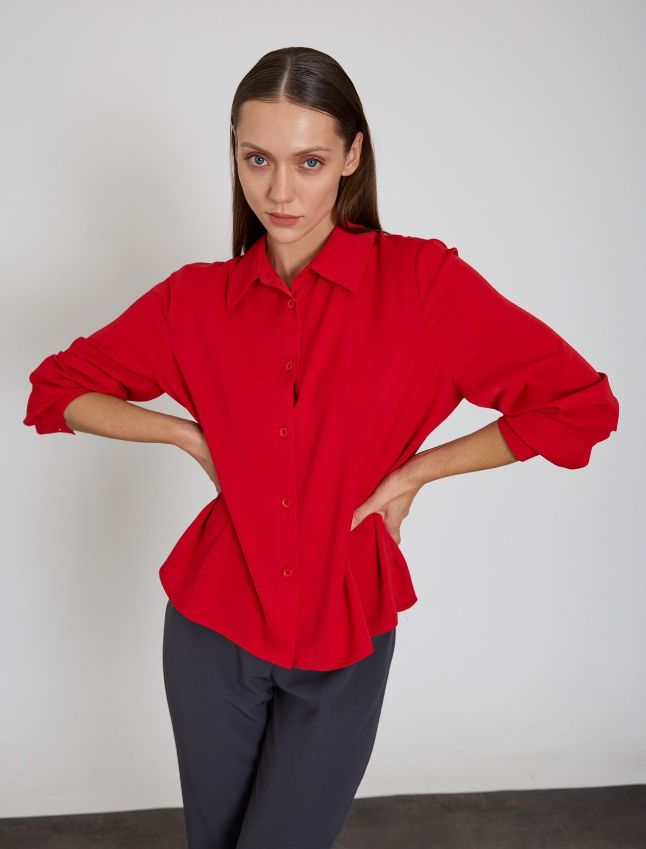KUP KESIKLI VE PILE DETAYLI PAMUK KARISIM GOMLEK