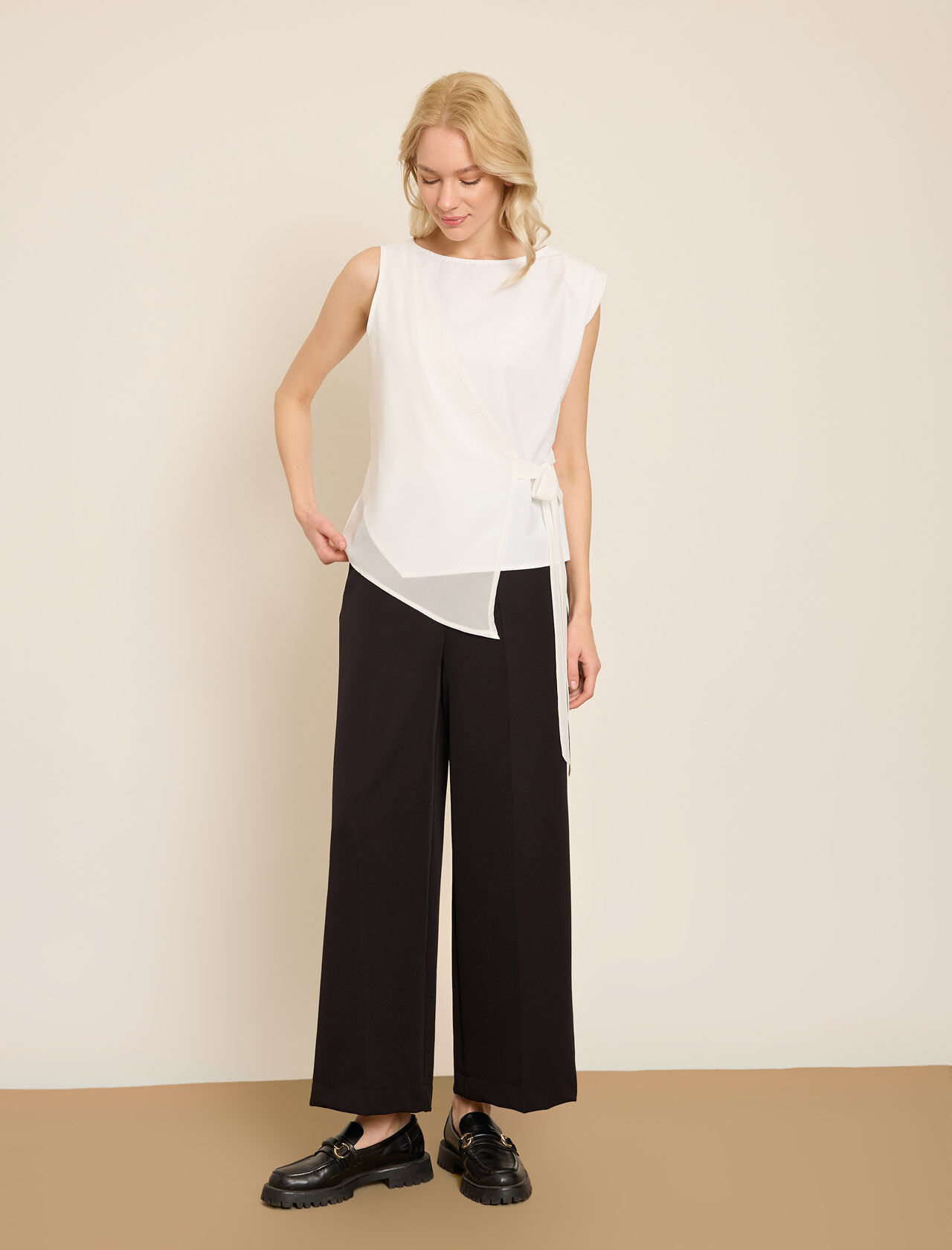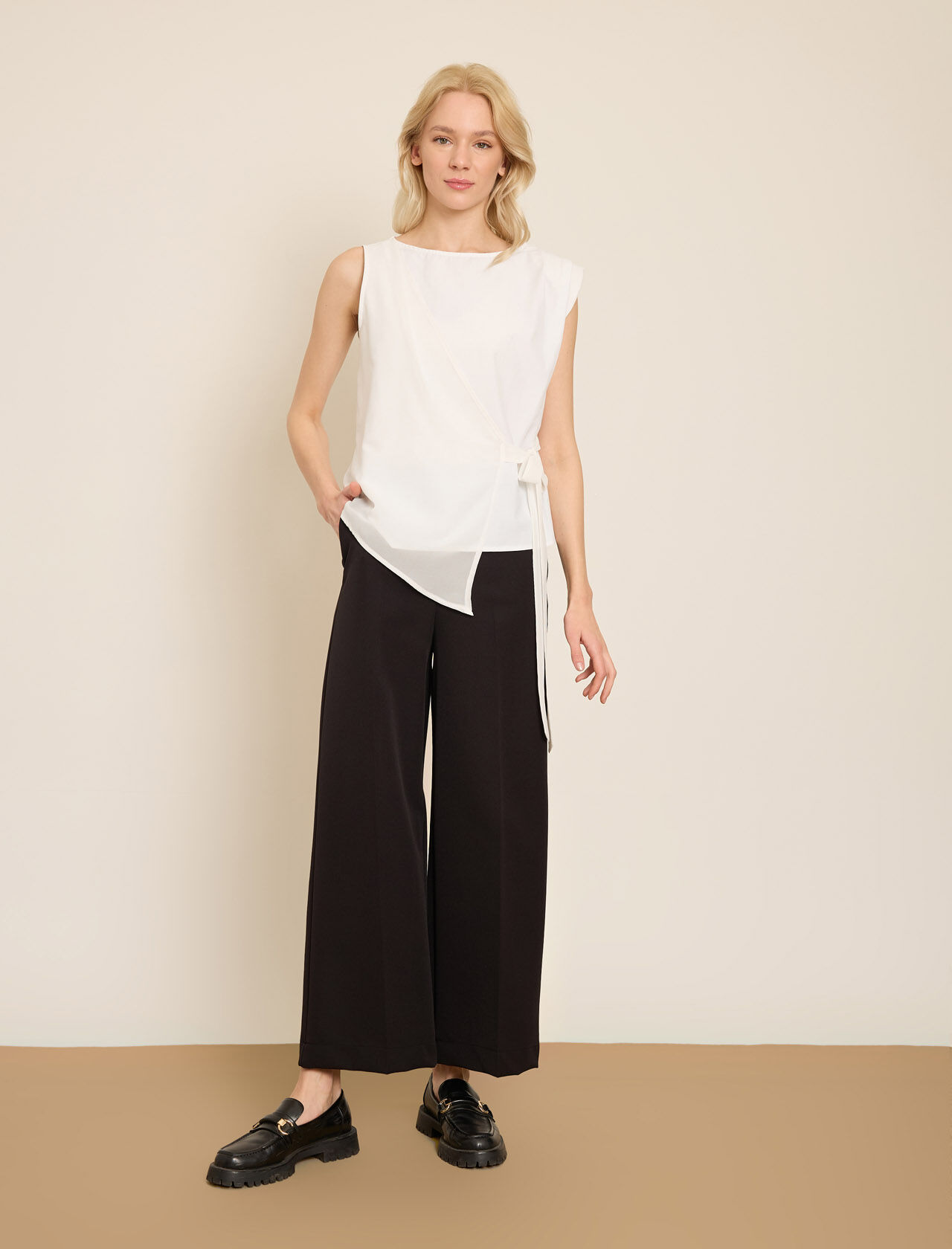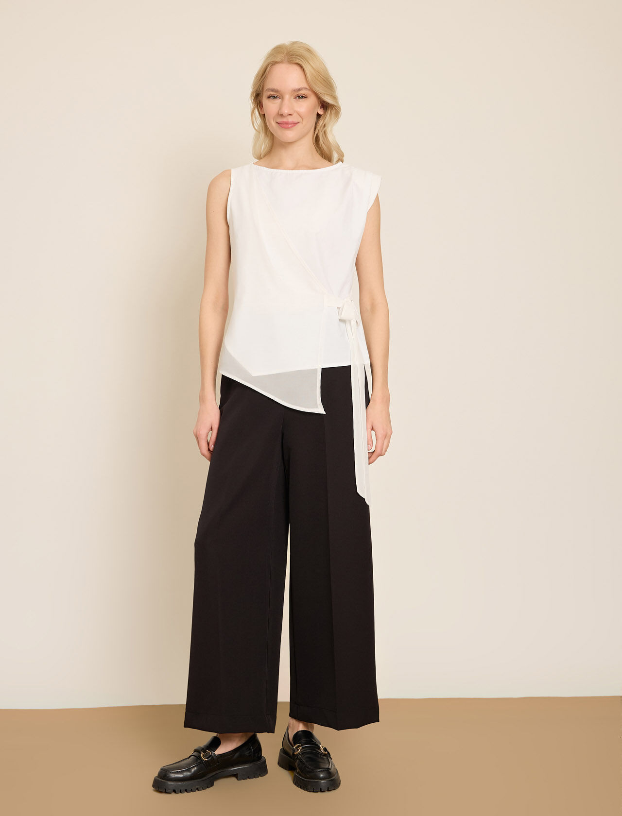 PAMUK KARISIM SUS DIKISLI KEMERLI KOLSUZ BLUZ