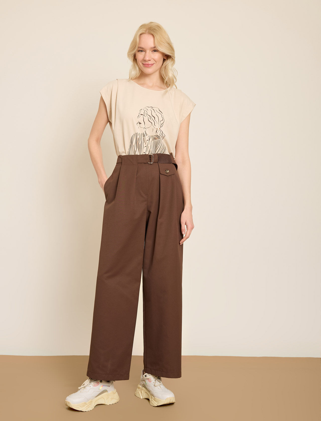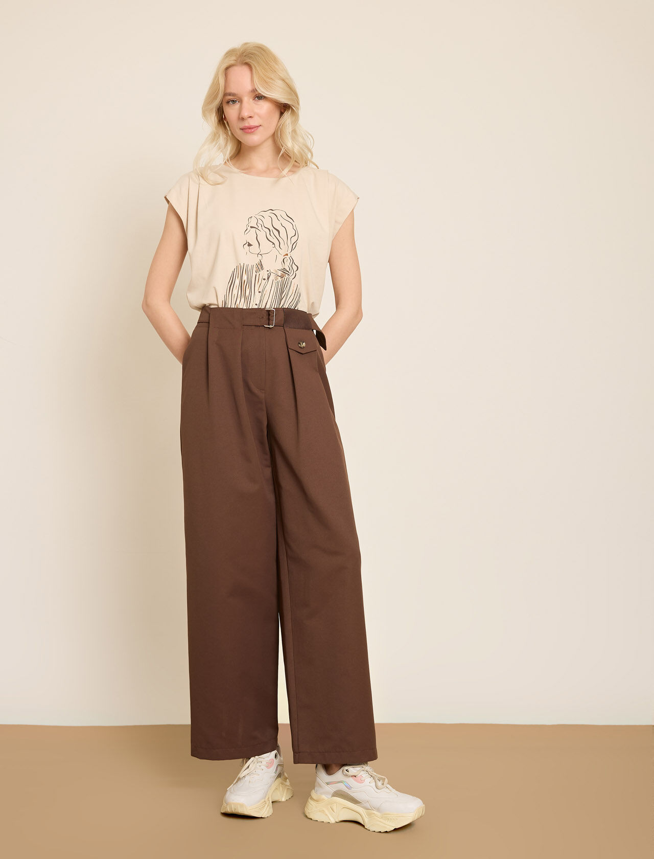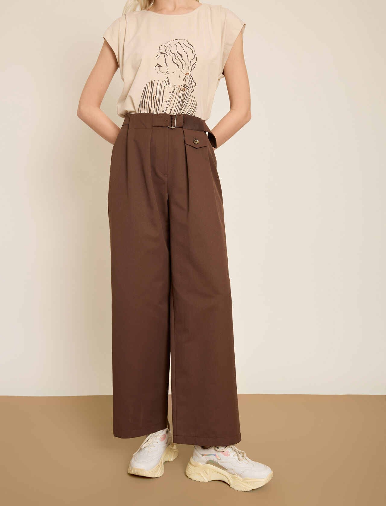 AYARLANABİLİR TOKALI PLİ DETAYLI KOTON PANTOLON