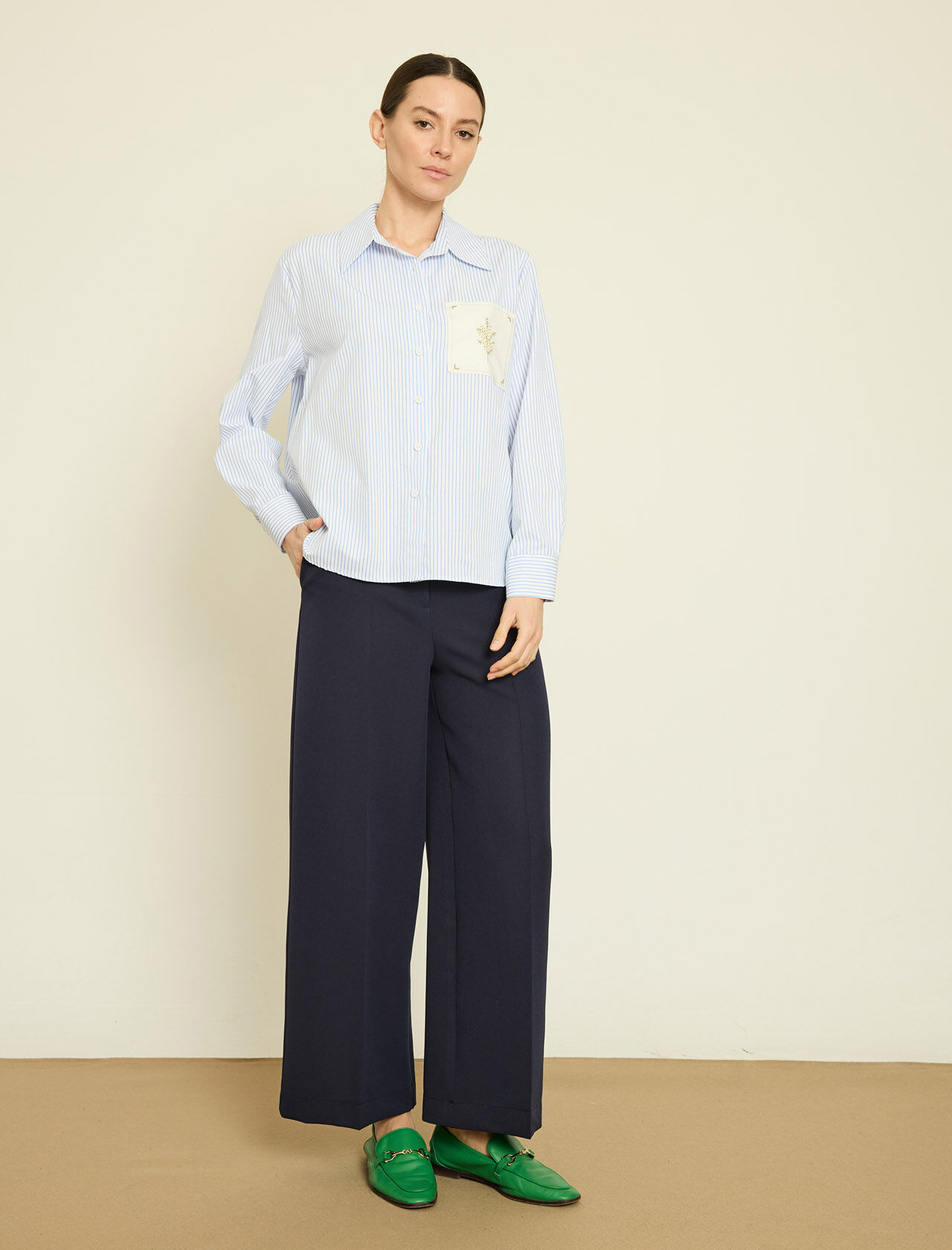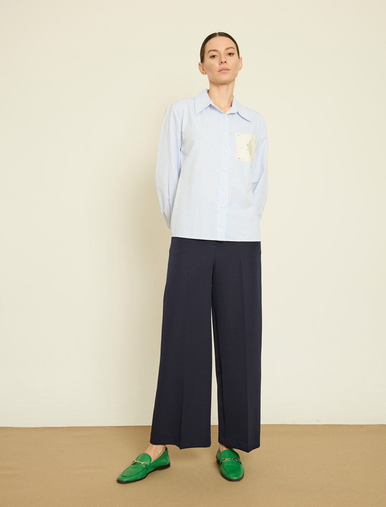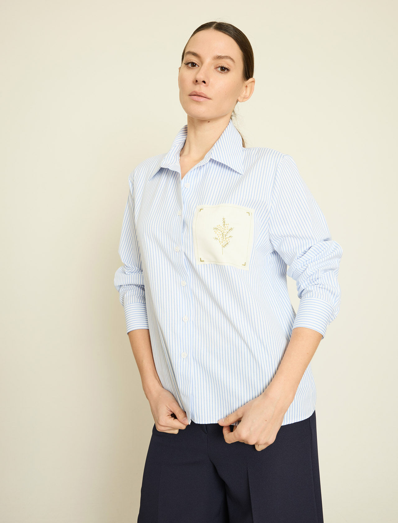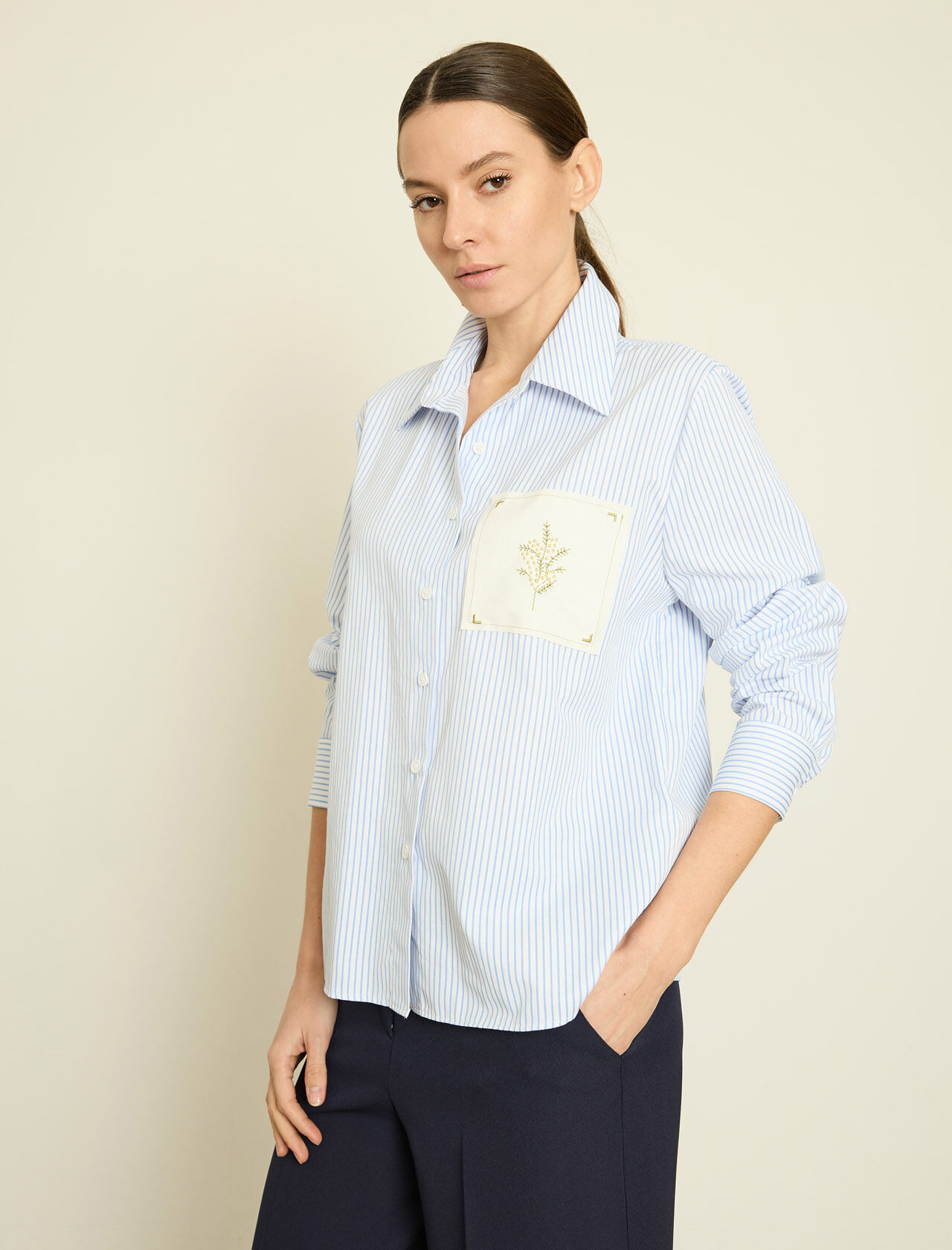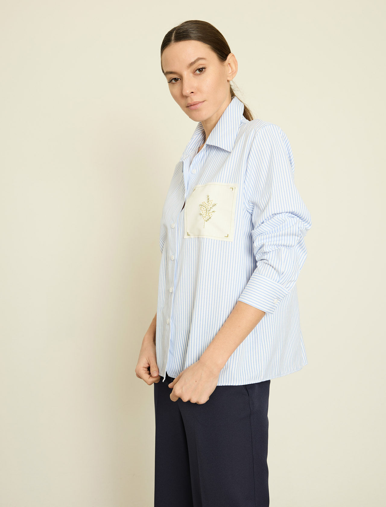 SUNI DERI UZERI NAKISLI CIZGILI POPLIN GOMLEK