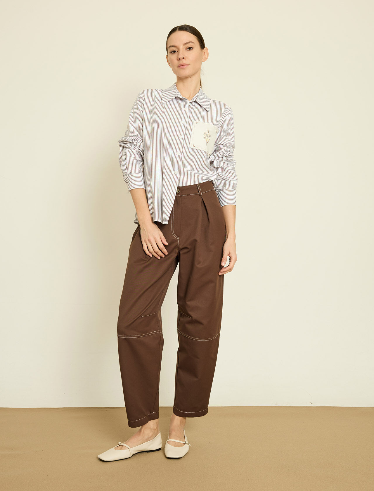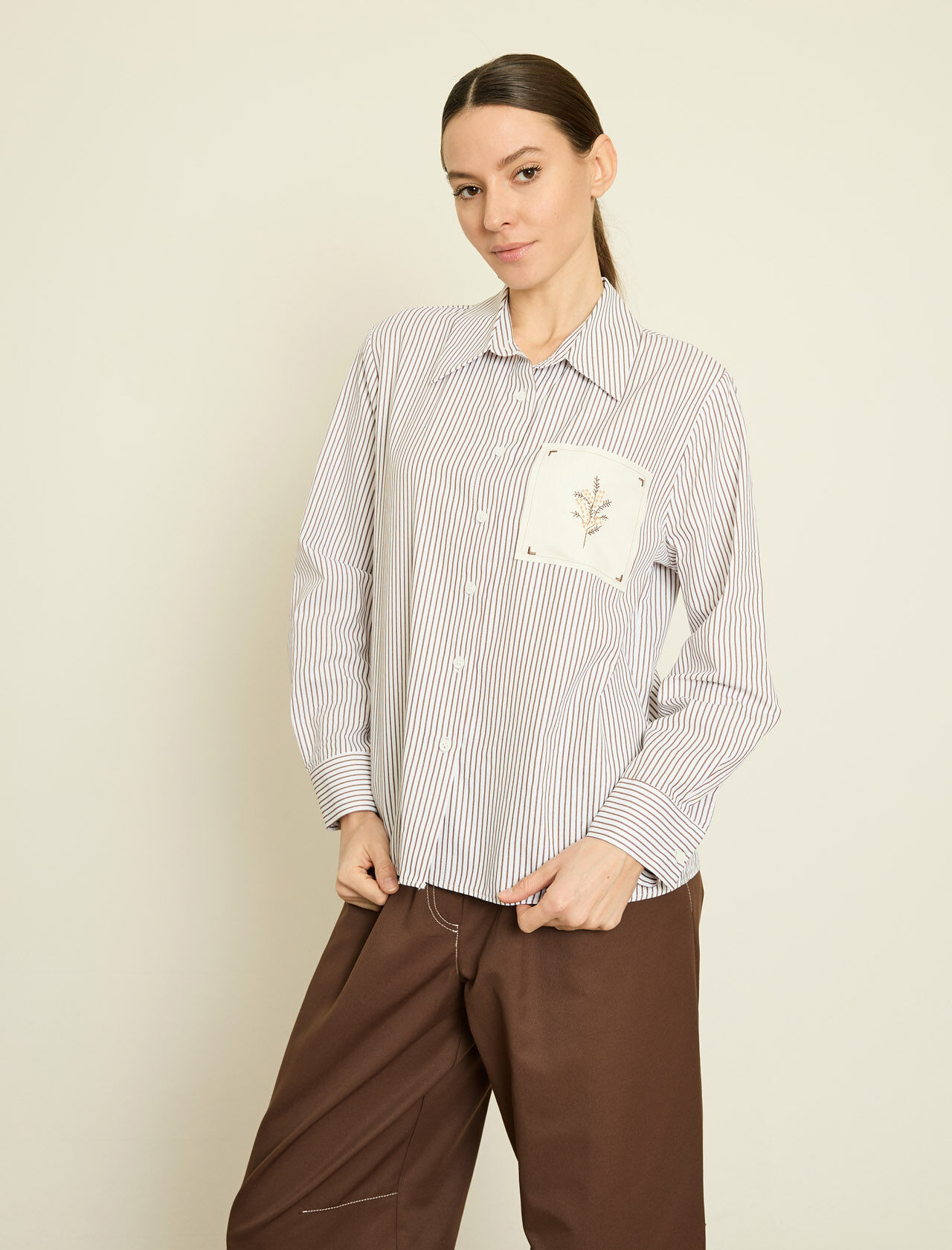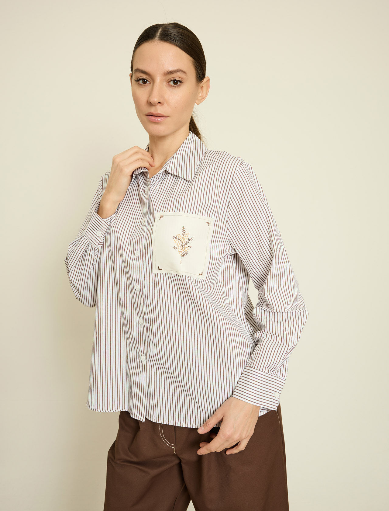 SUNI DERI UZERI NAKISLI CIZGILI POPLIN GOMLEK