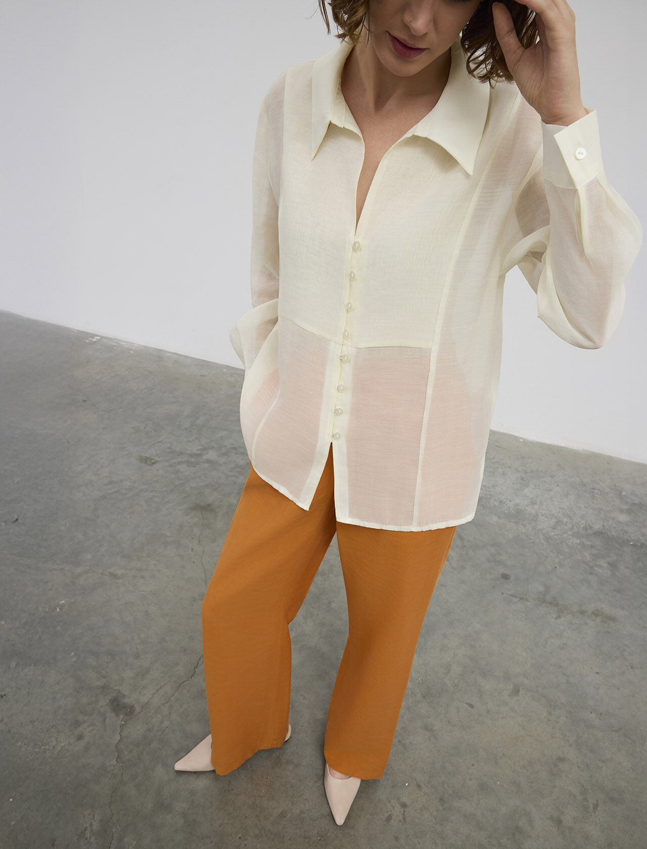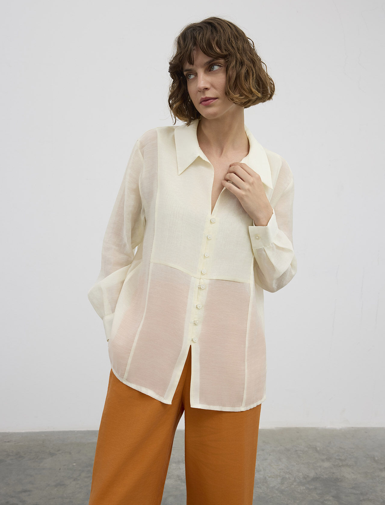 Kıvırma Kollu Lyocell Gömlek