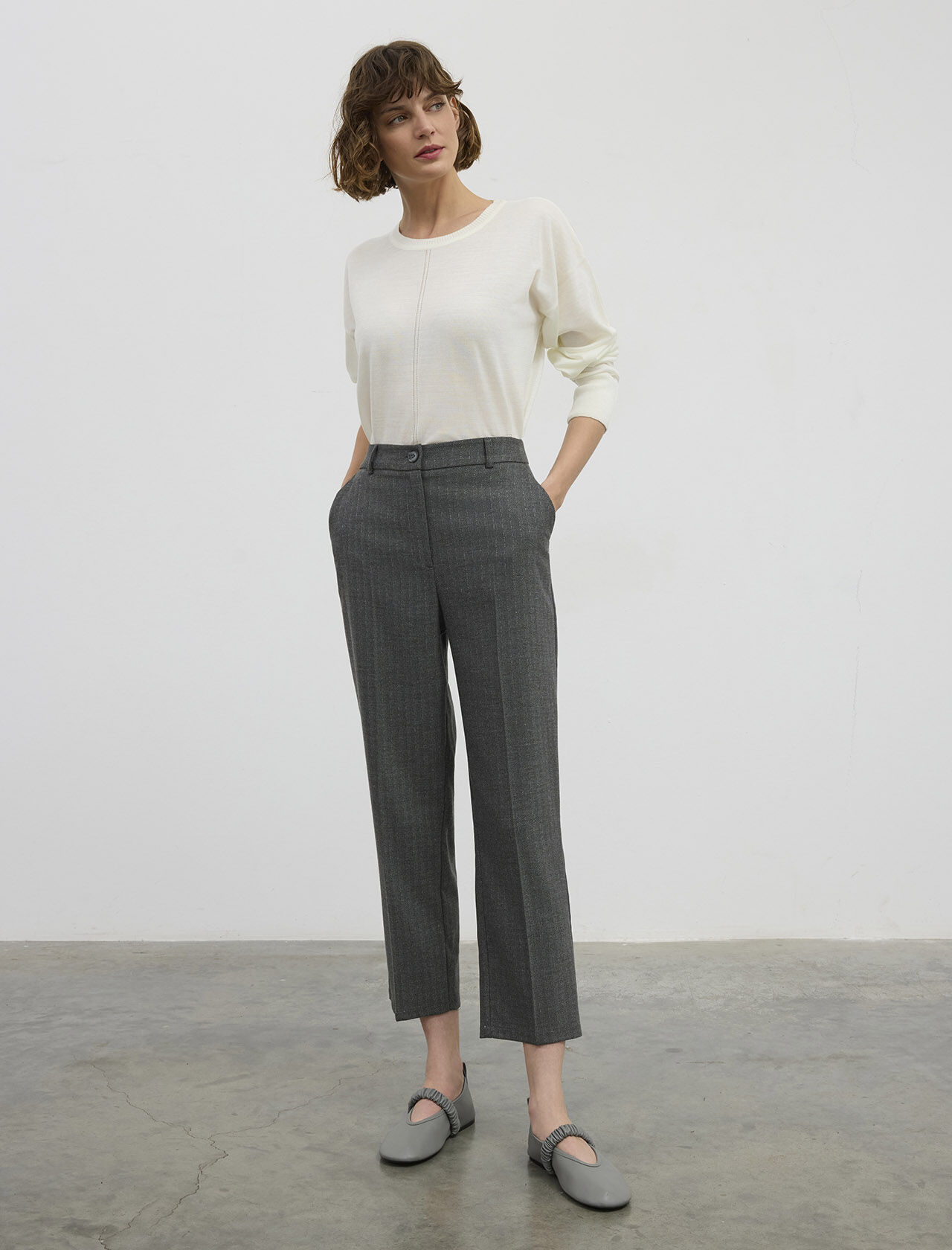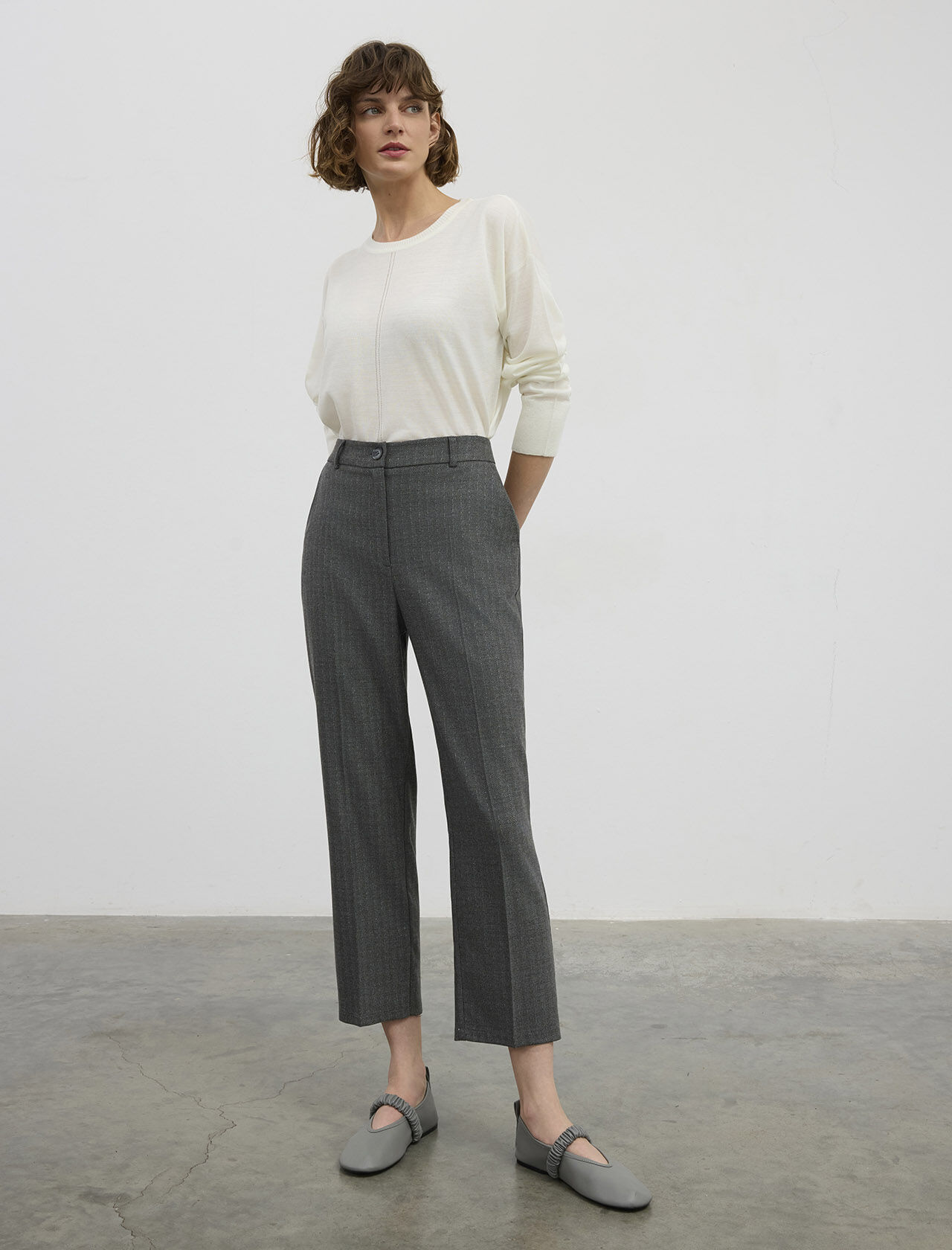 Yanı Çizgi Baskılı Pamuk Karışımlı Pantolon