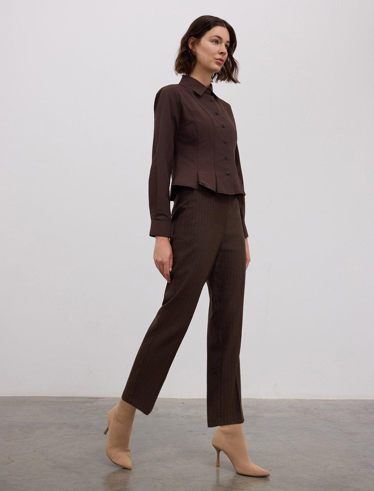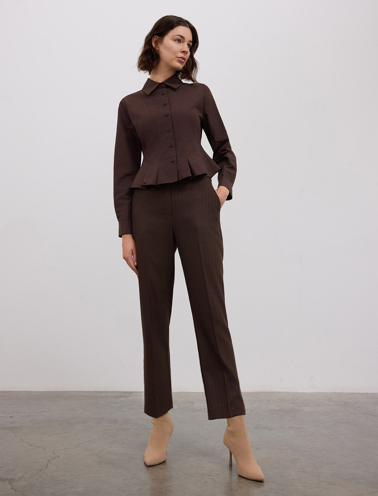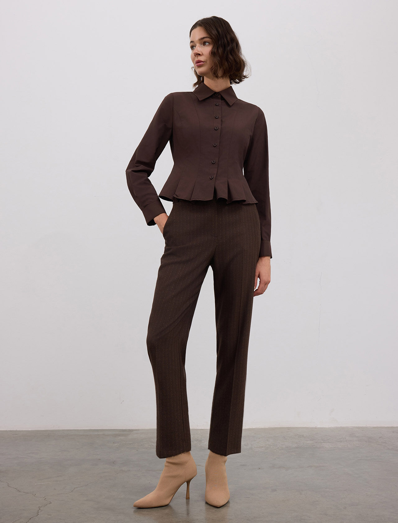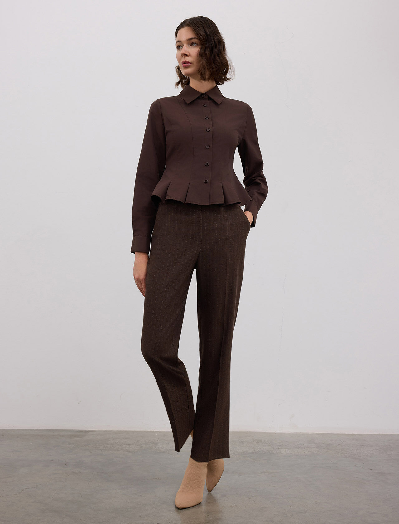 Pileli Havuç Kesim Pamuk Karışımlı Pantolon