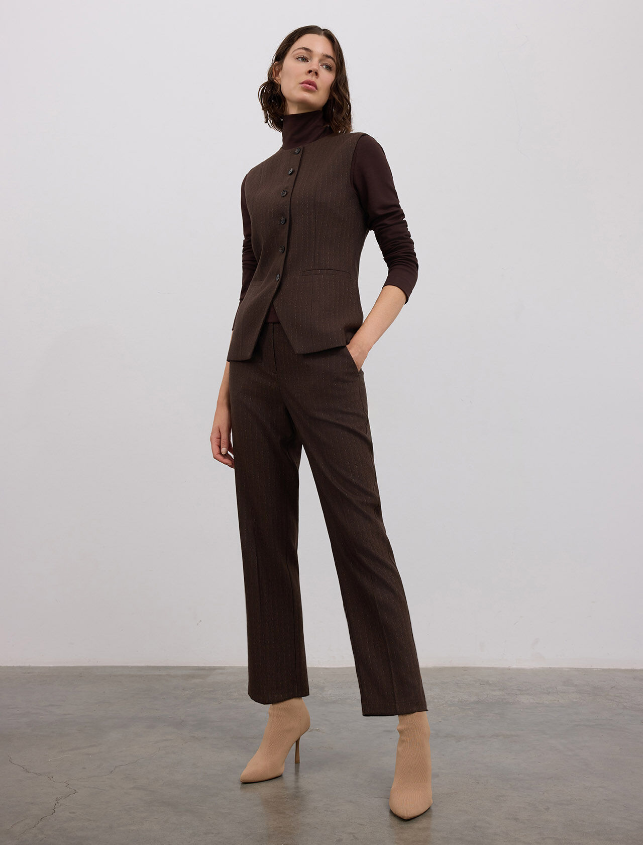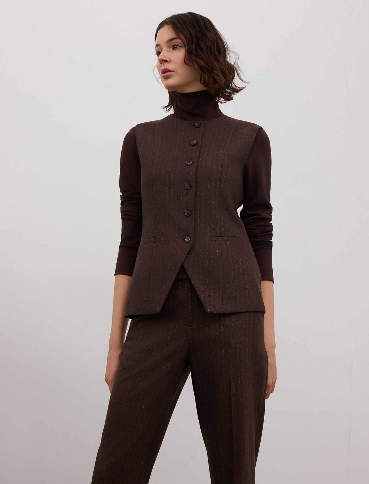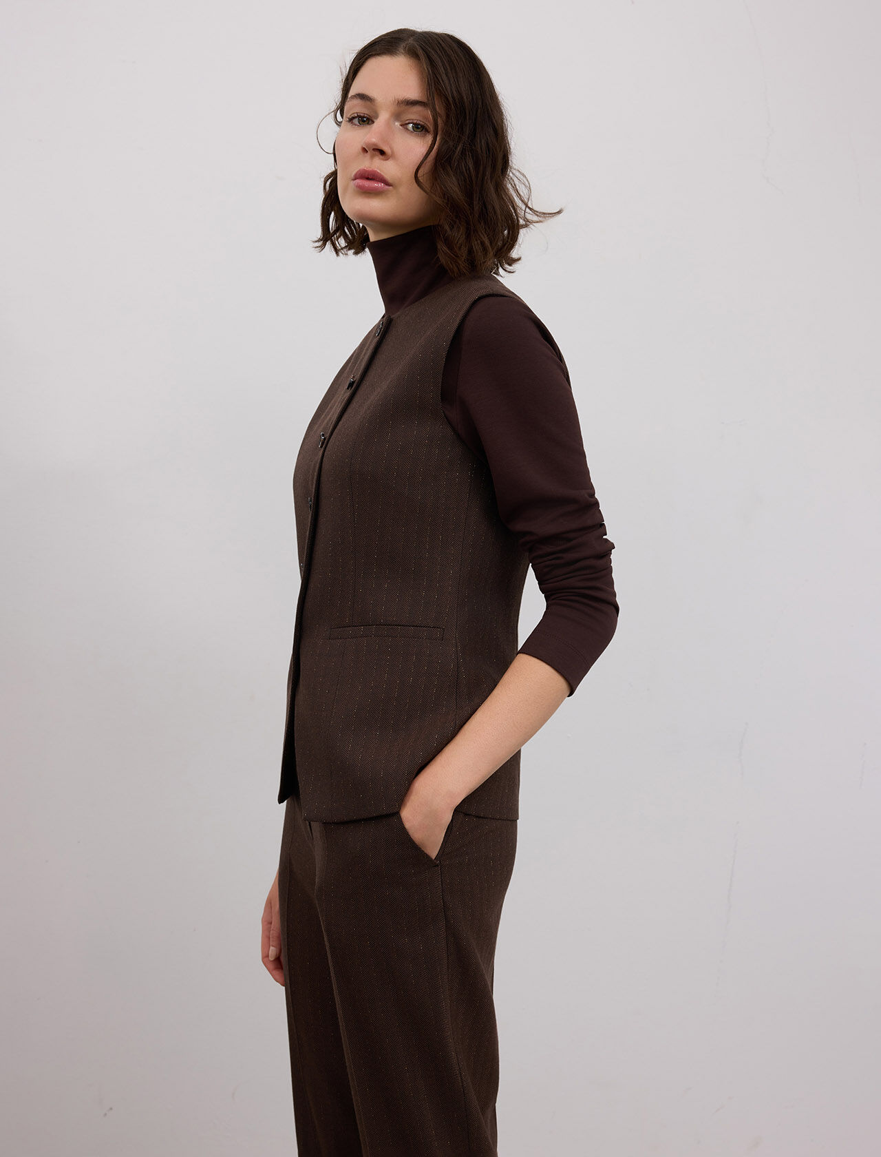 Sırtı Çizgili Kumaş Detaylı Viskon Karışımlı Yelek
