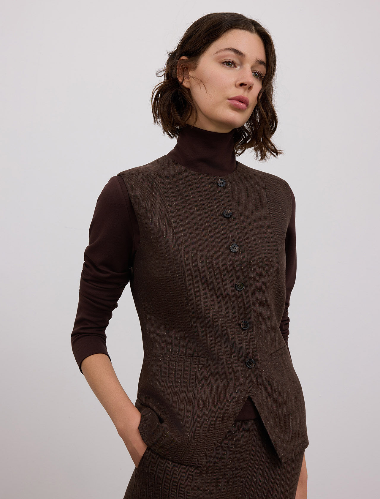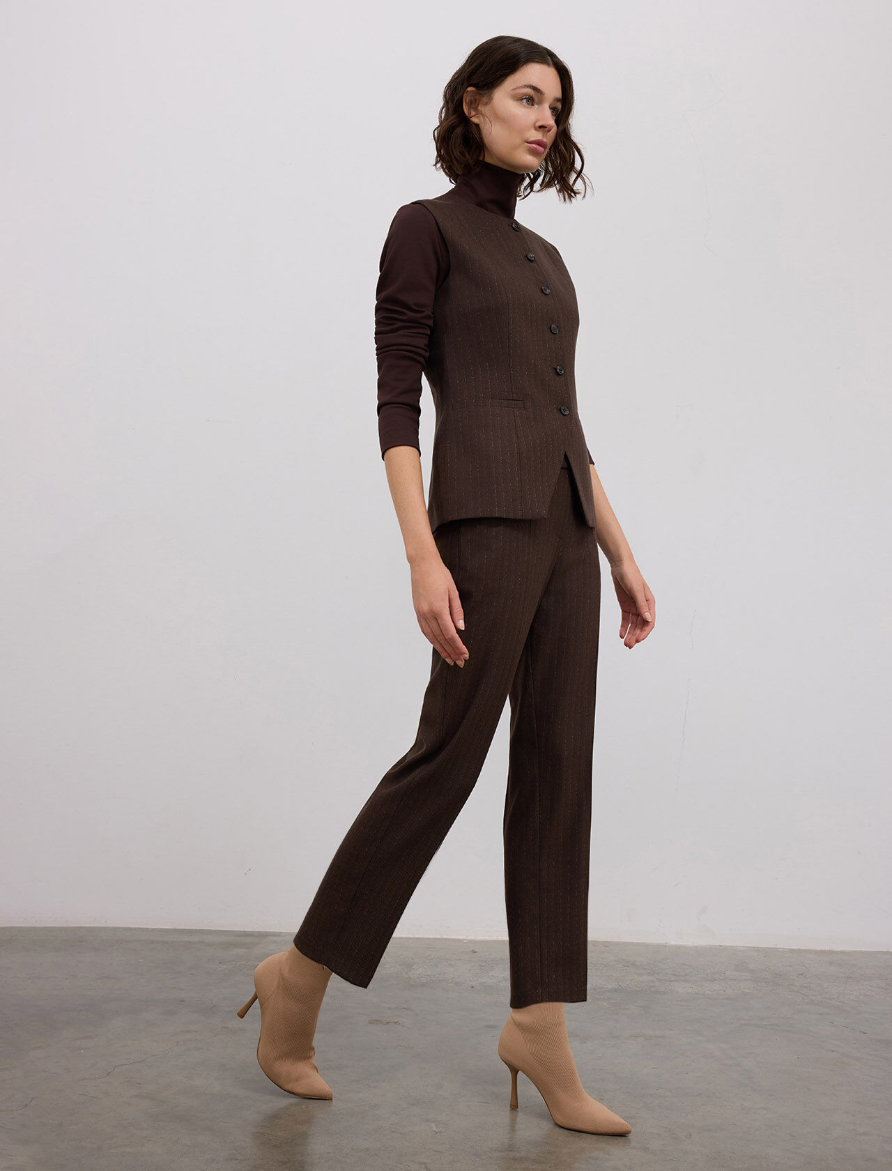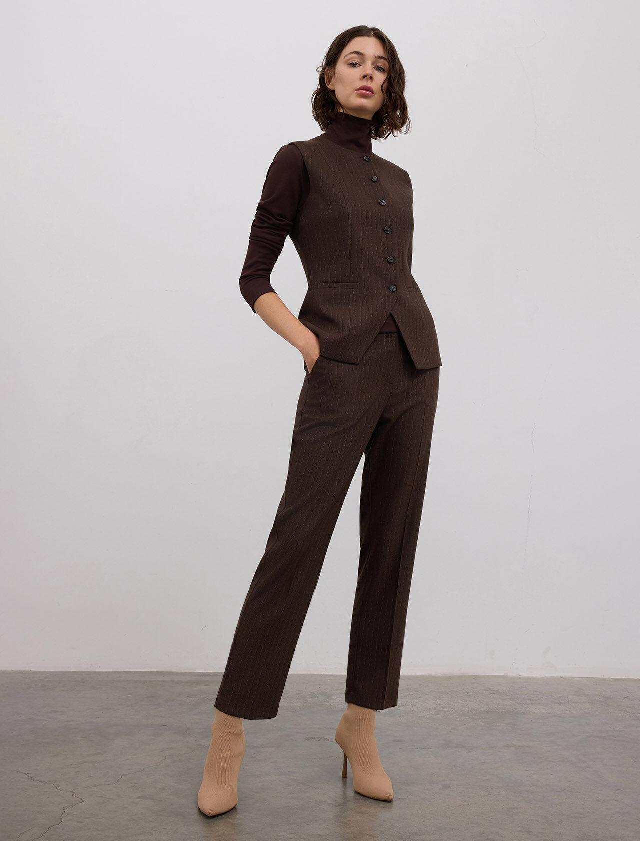 Sırtı Çizgili Kumaş Detaylı Viskon Karışımlı Yelek