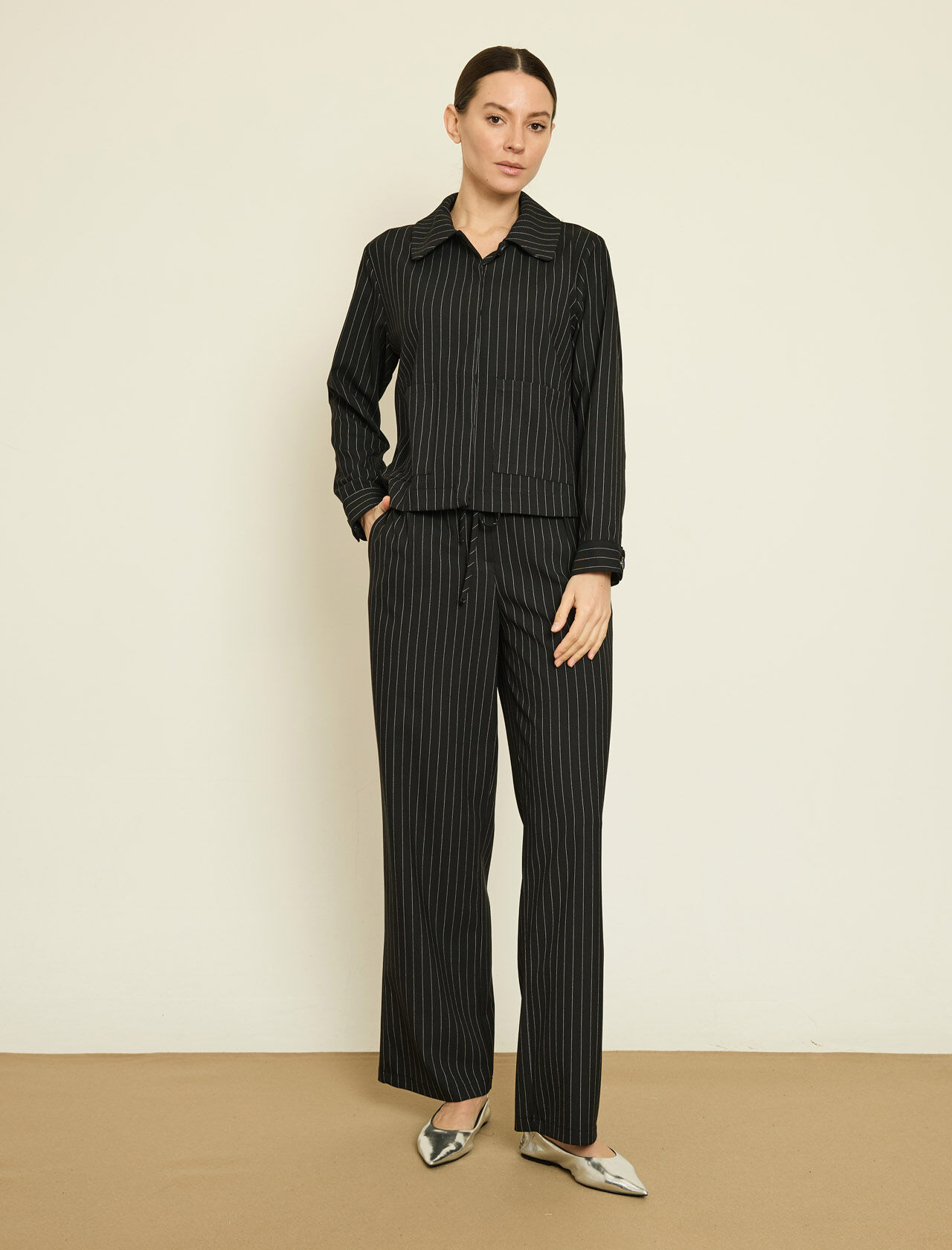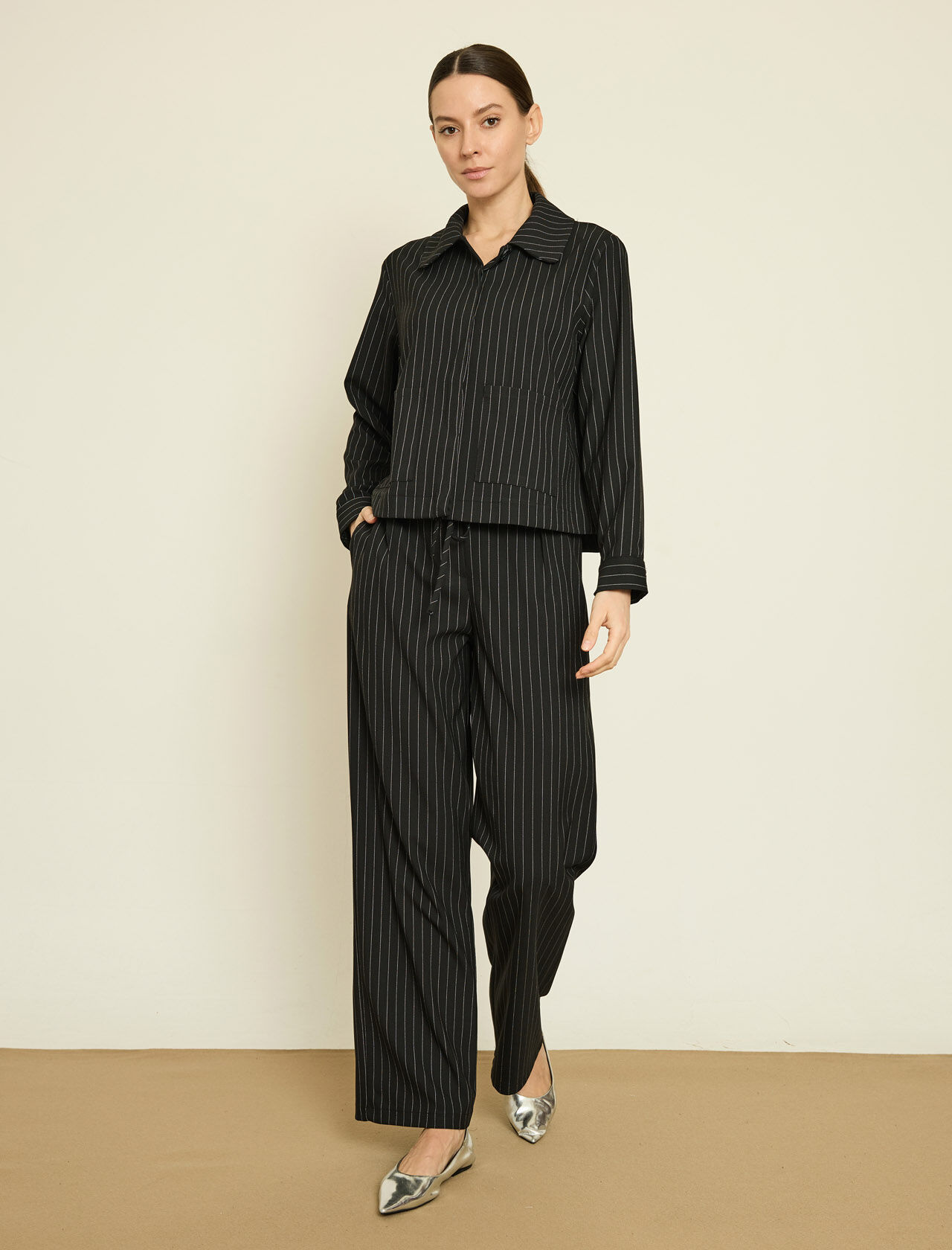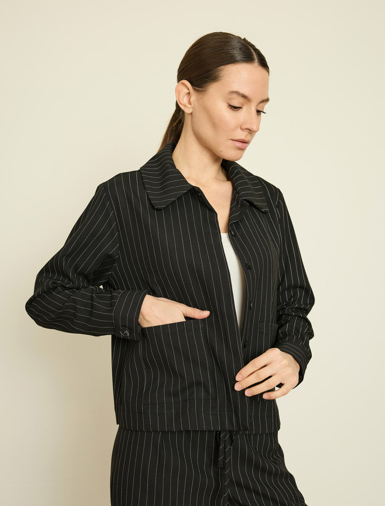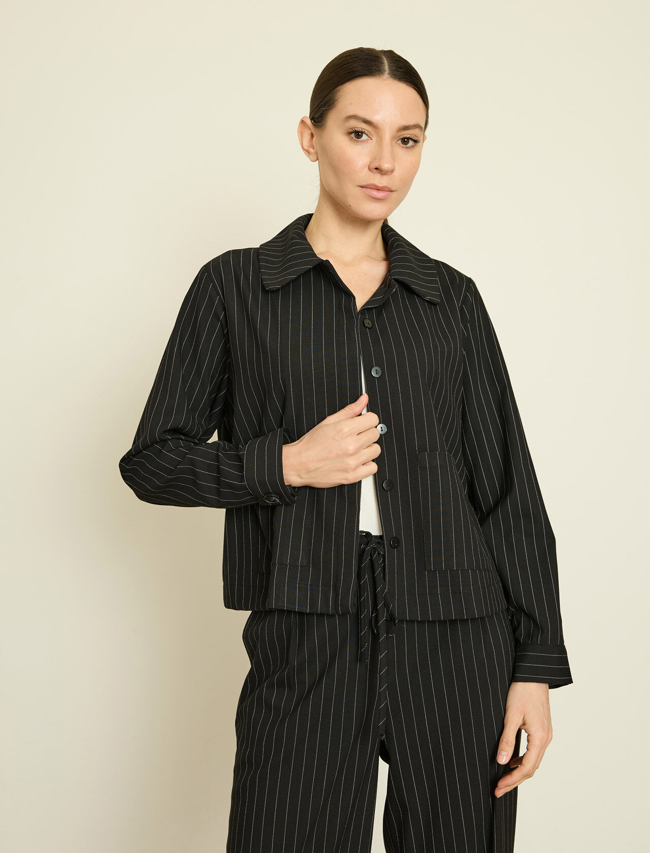 VISKON KARISIM CIZGILI GOMLEK JEKET
