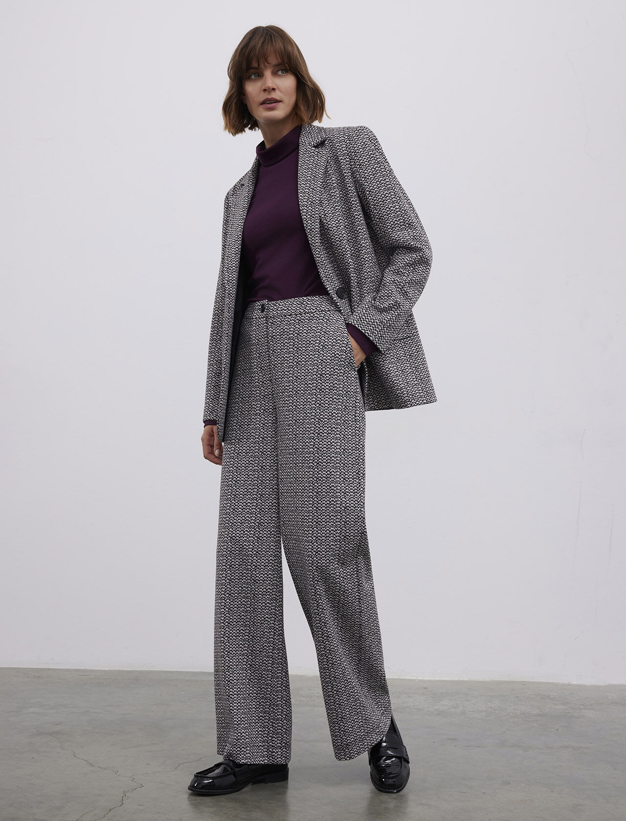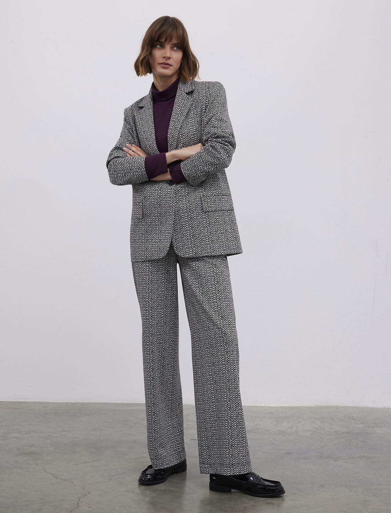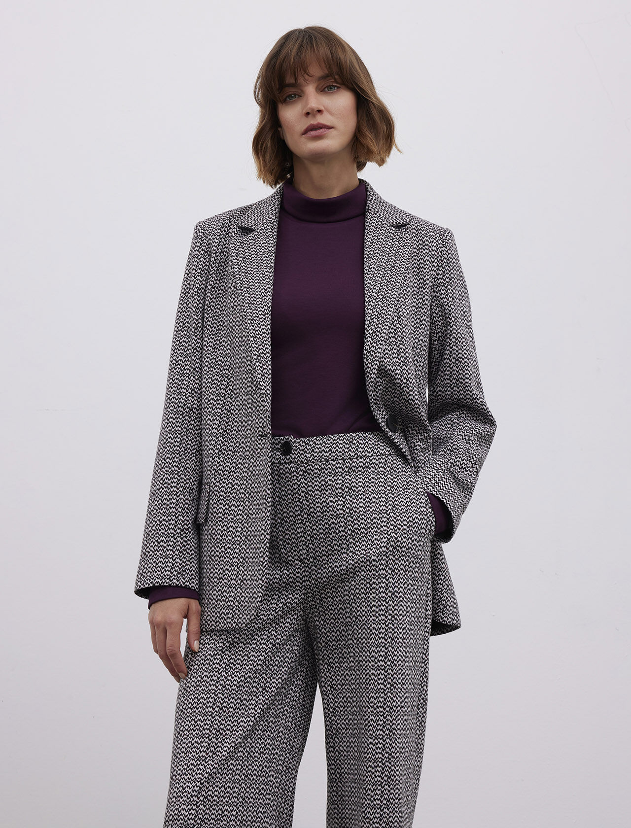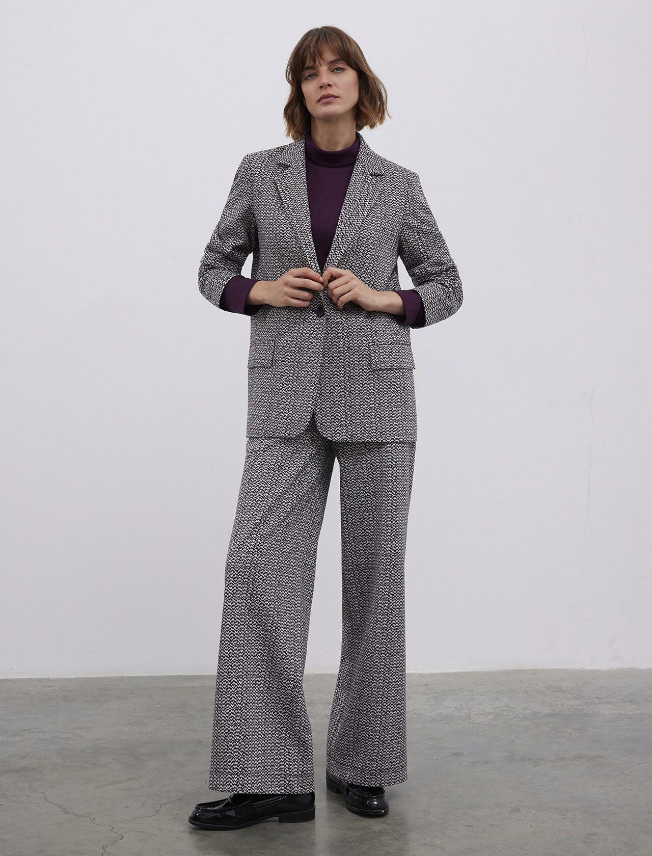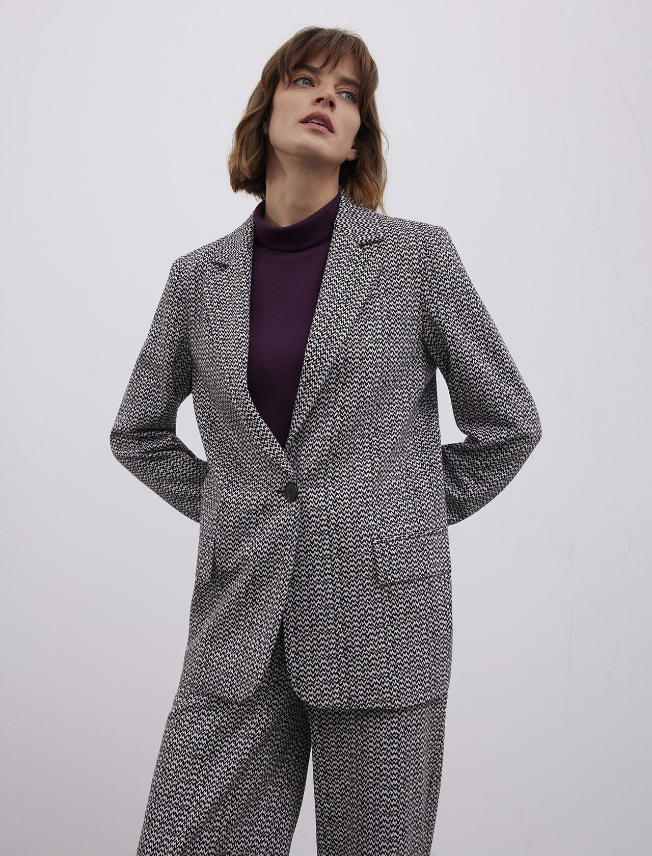 Desen Garnili Düğmeli Pamuk Karışımlı Ceket