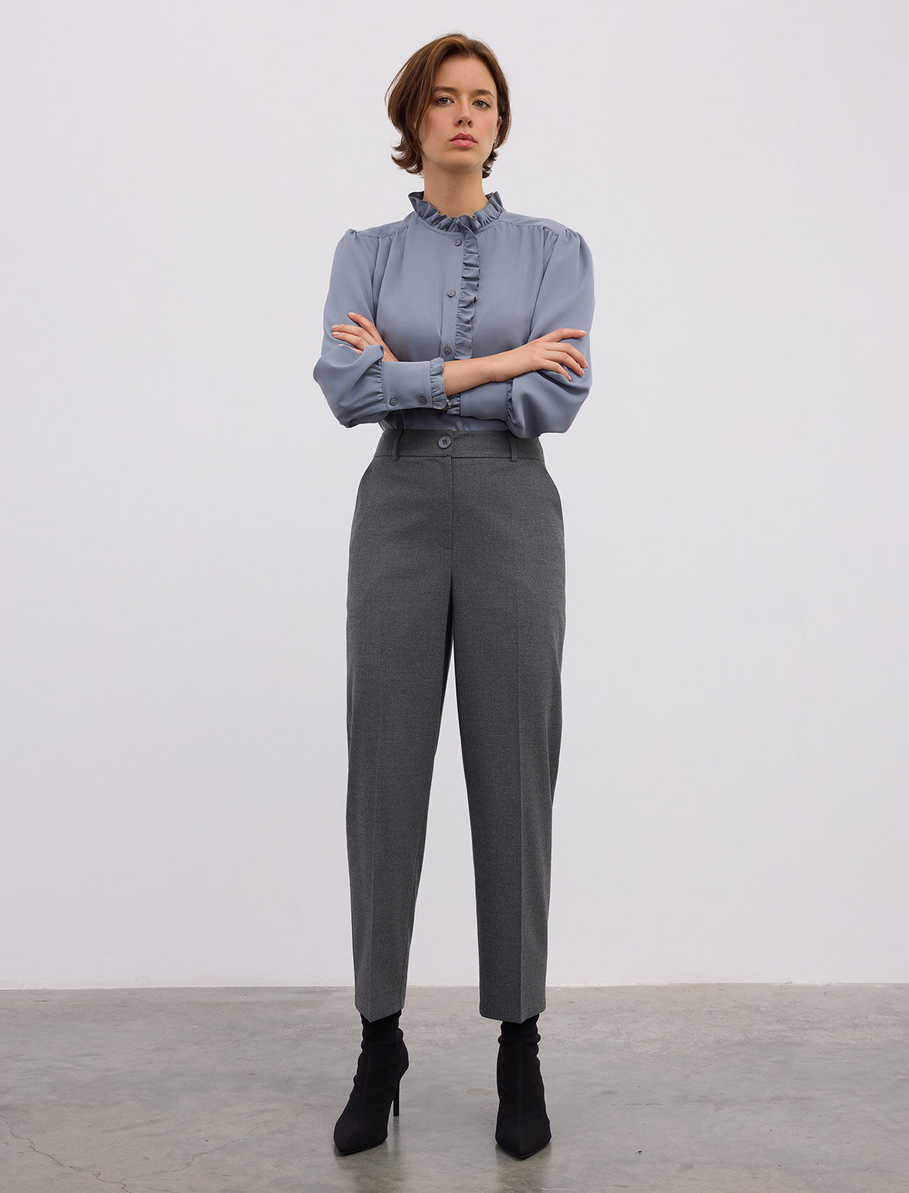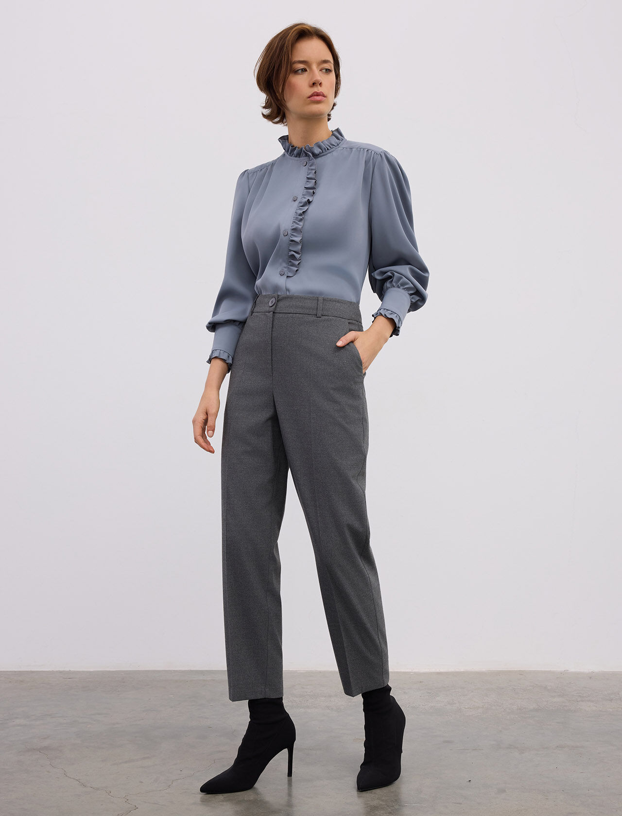 Pileli Bol Paça Viskon Karışımlı Pantolon