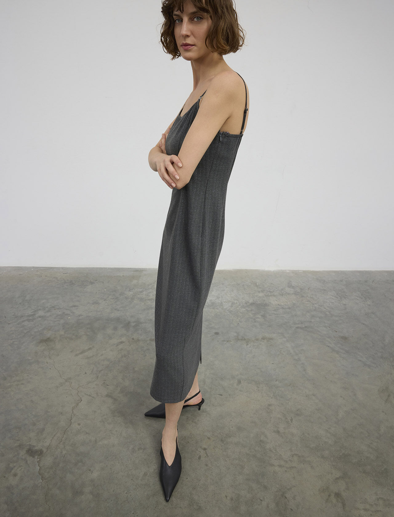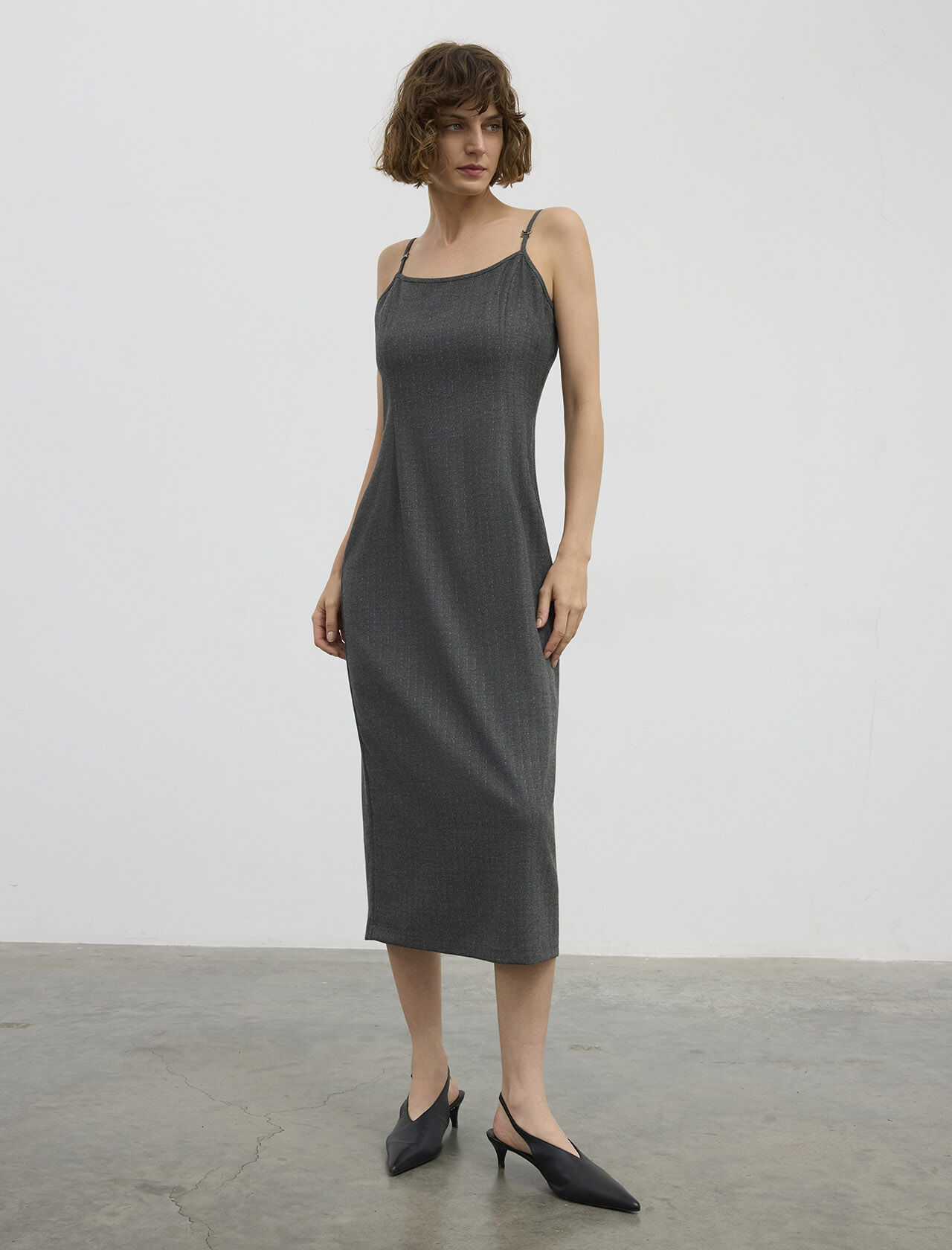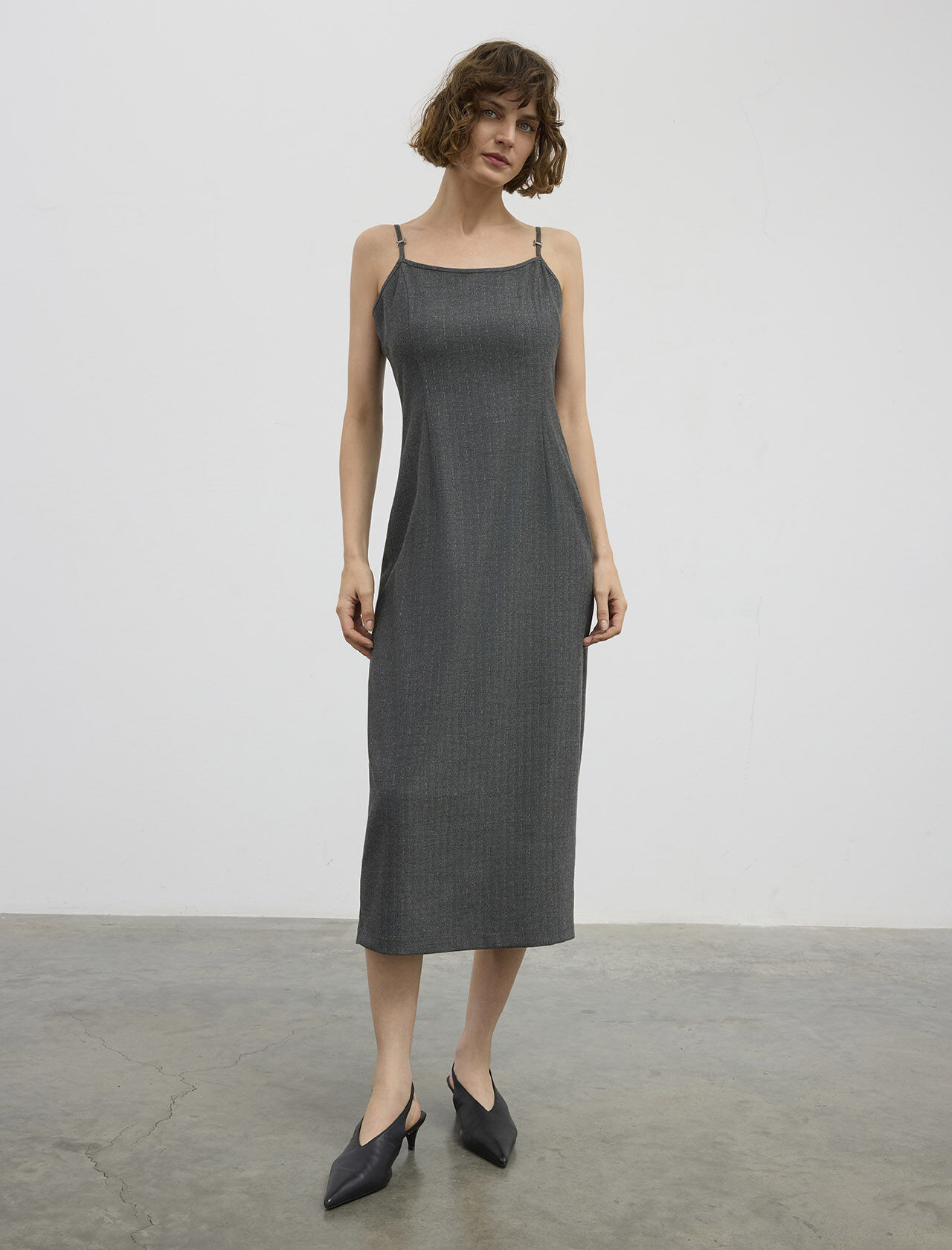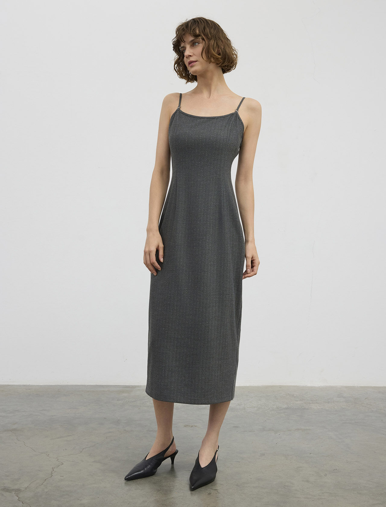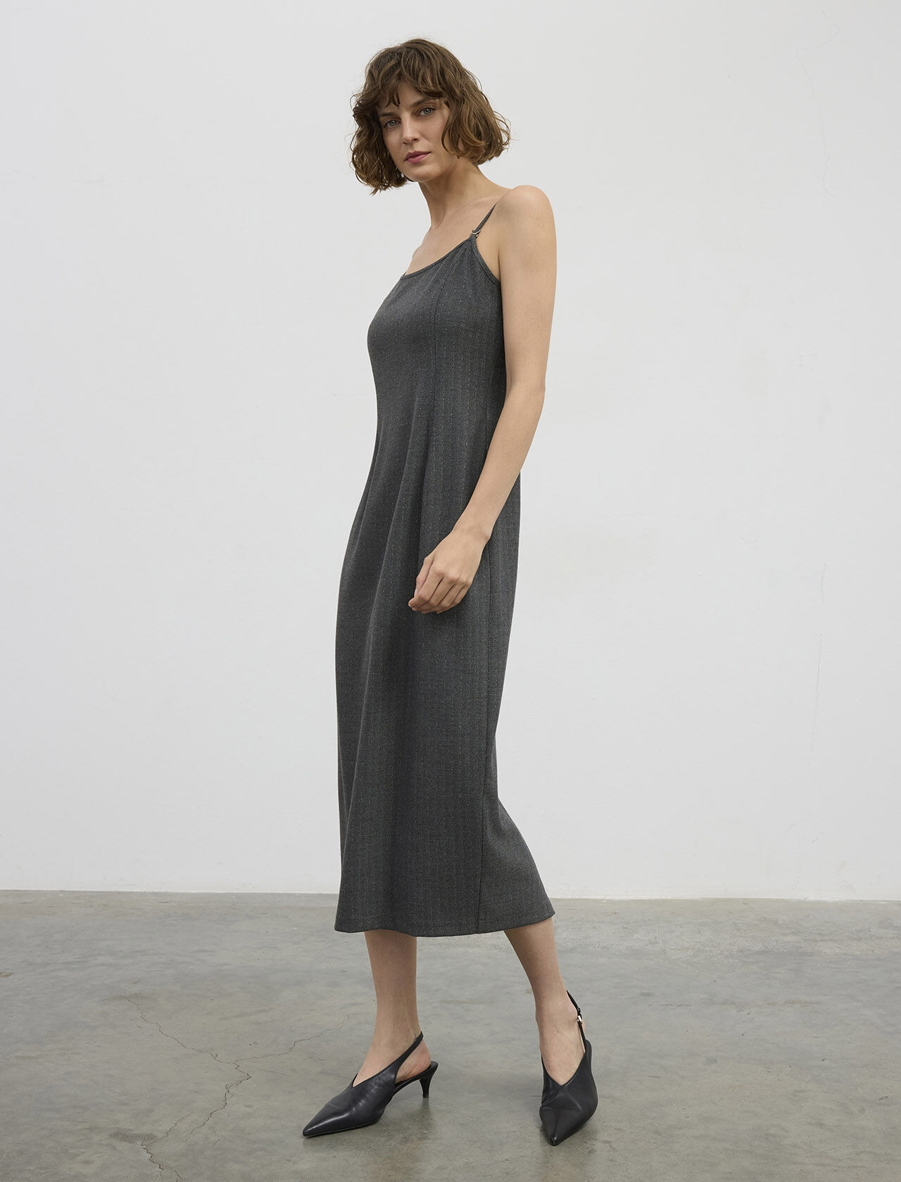 VISKON KARISIM IP ASKILI BEDENE OTURAN MIDI ELBISE