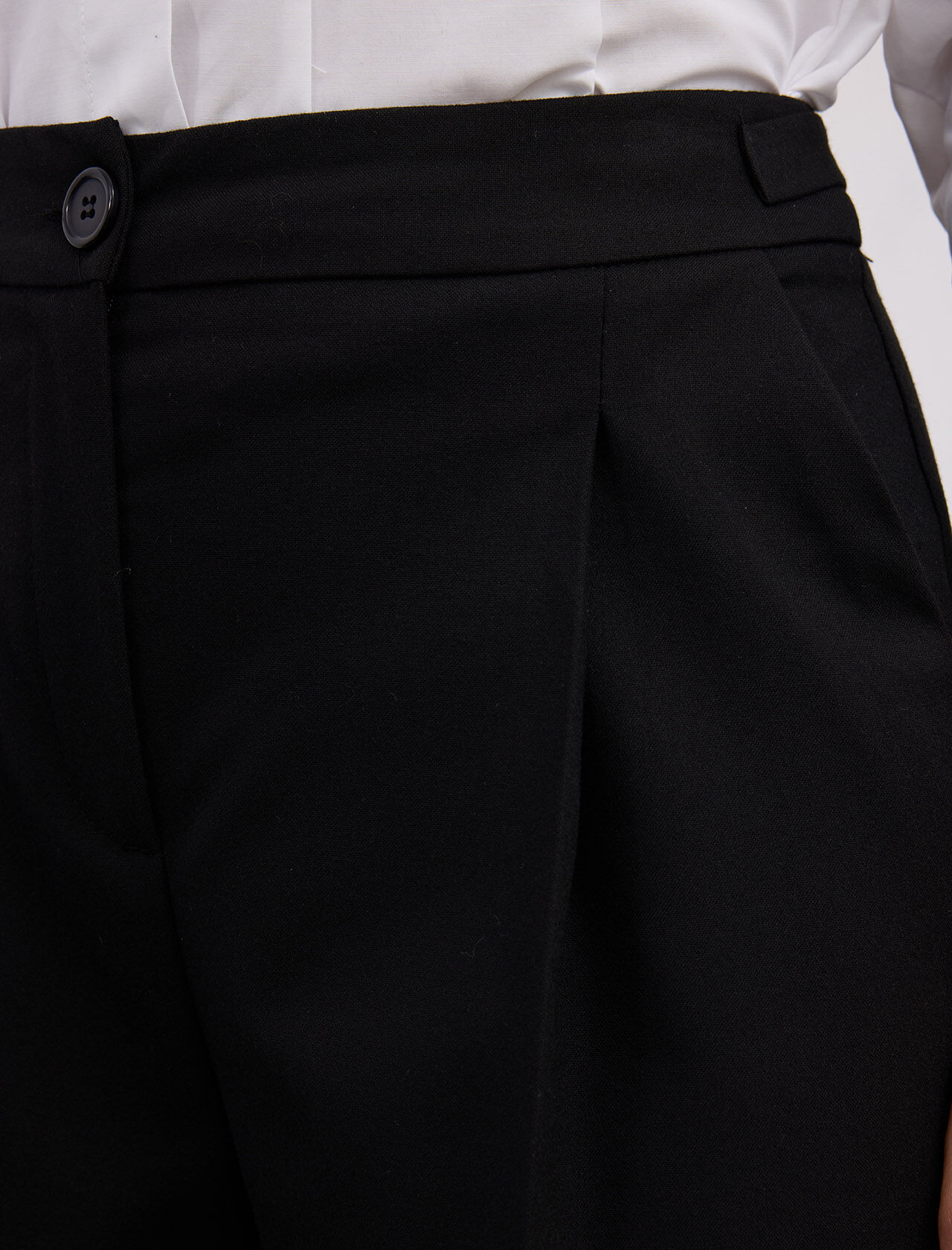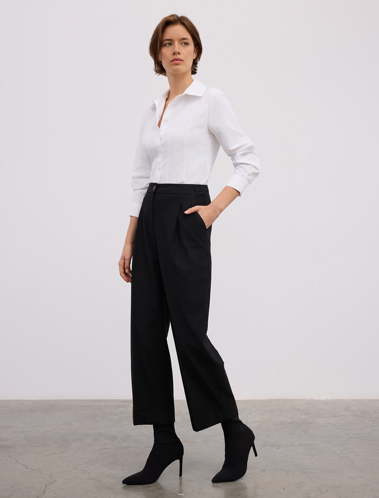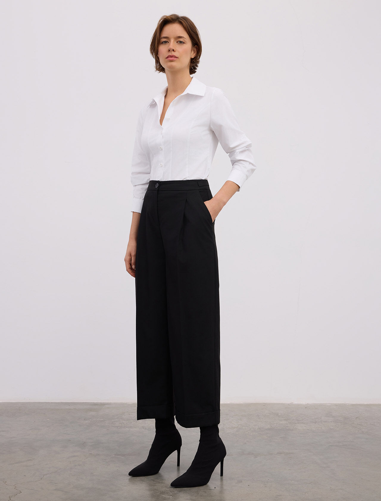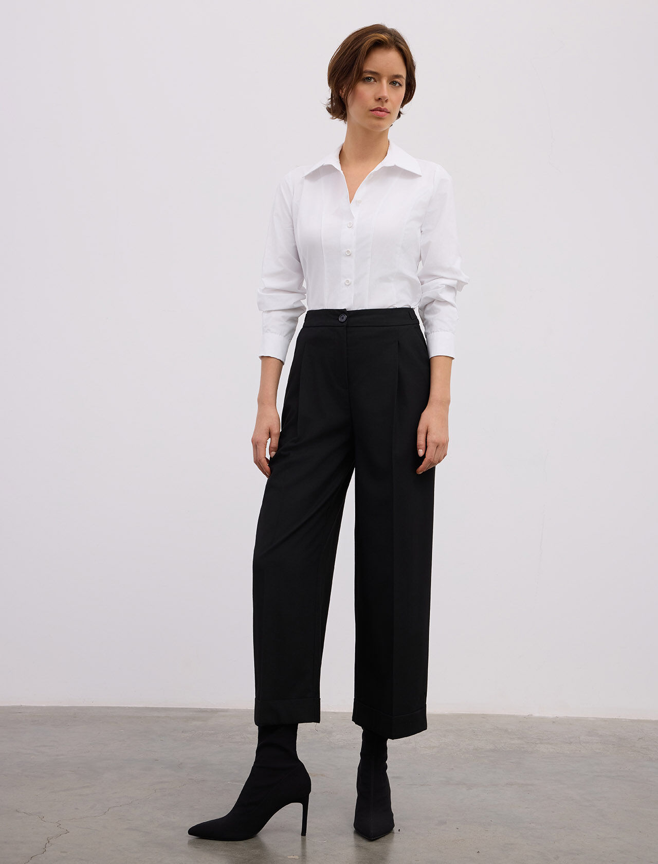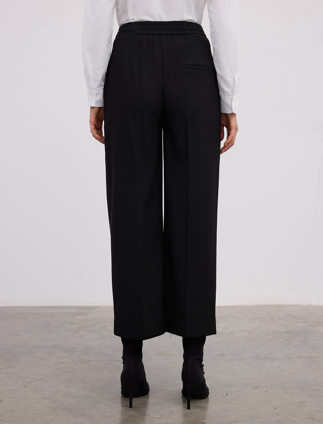 Arkası Lastikli Pileli Geniş Paça Pantolon