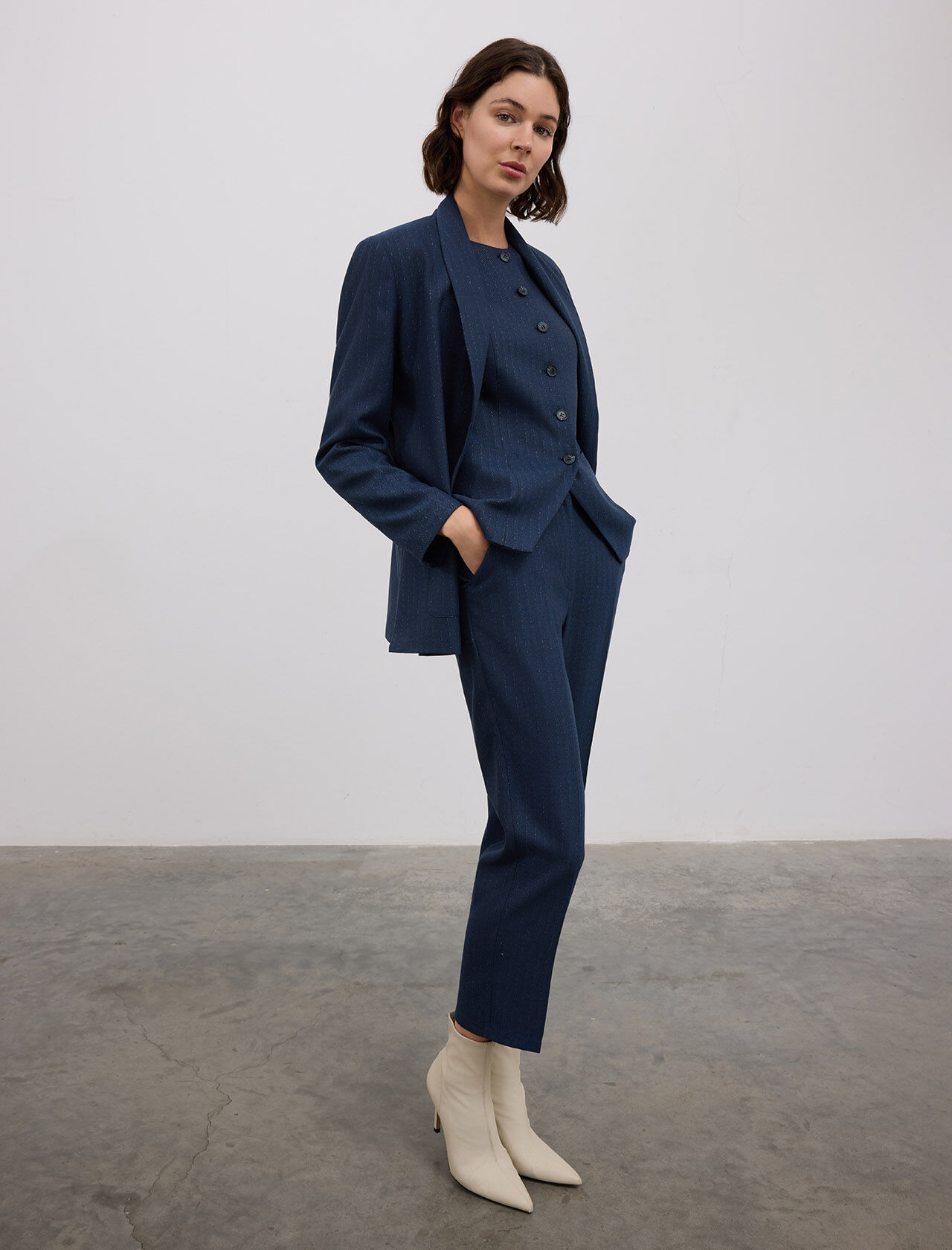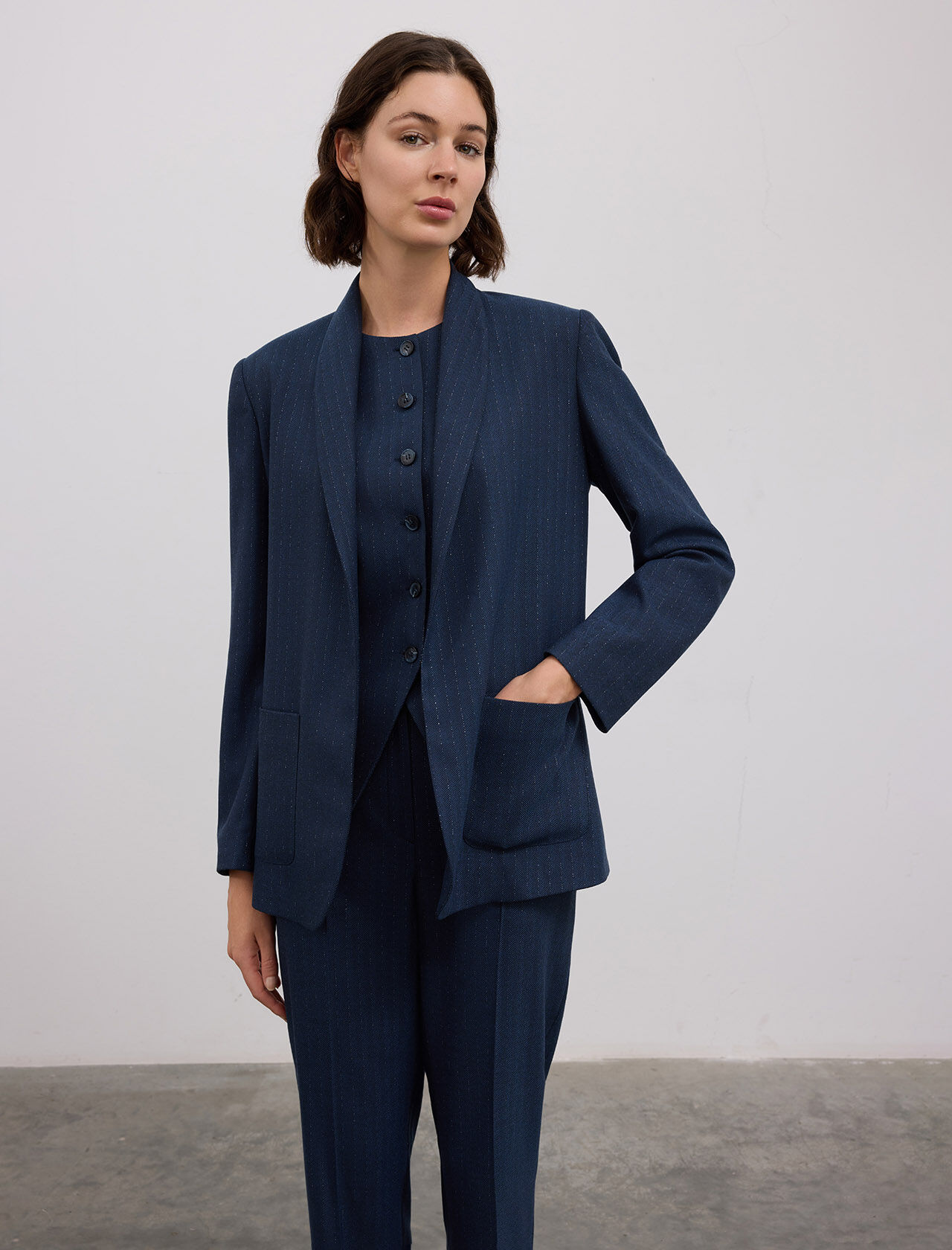 Kruvaze Kapama Yakasız Viskon Karışımlı Ceket