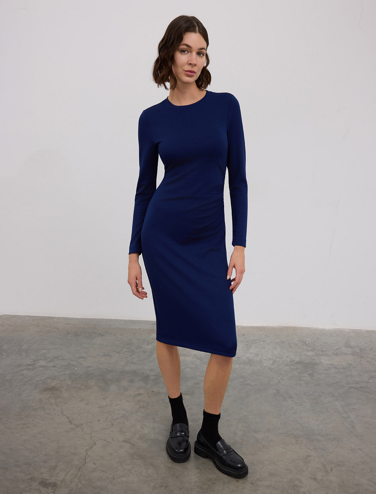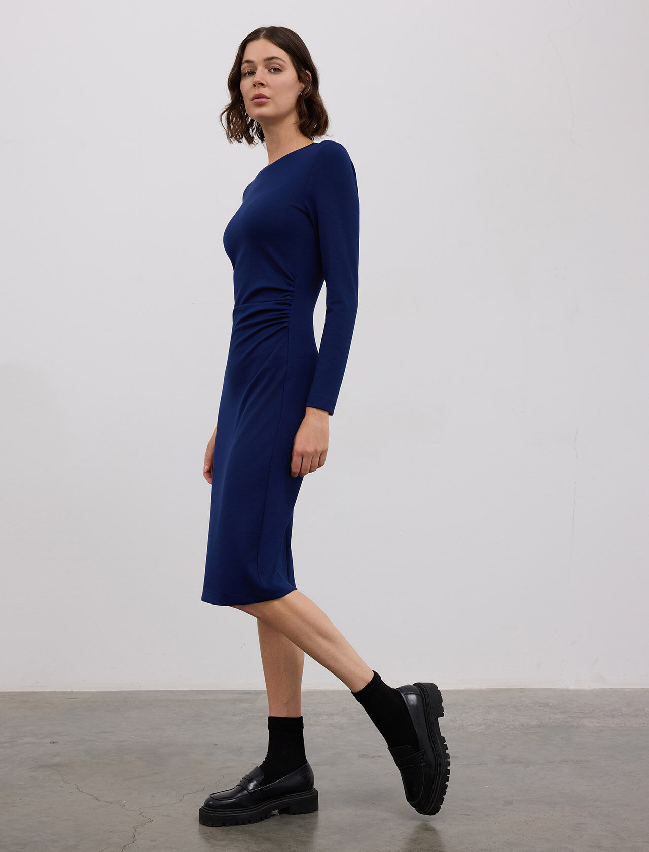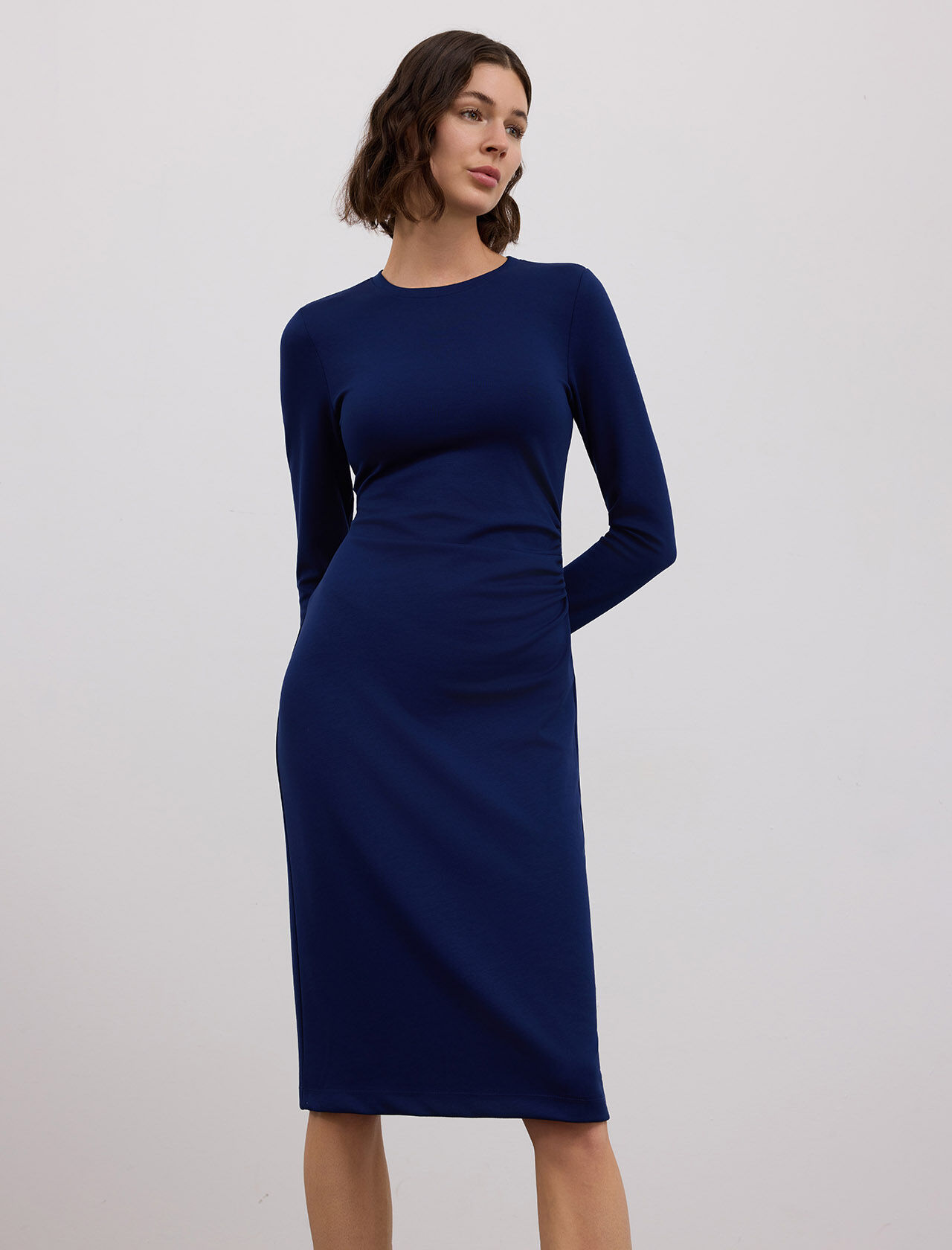 VISKON KARISIM YANI BUZGU DETAYLI MIDI ORME ELBISE